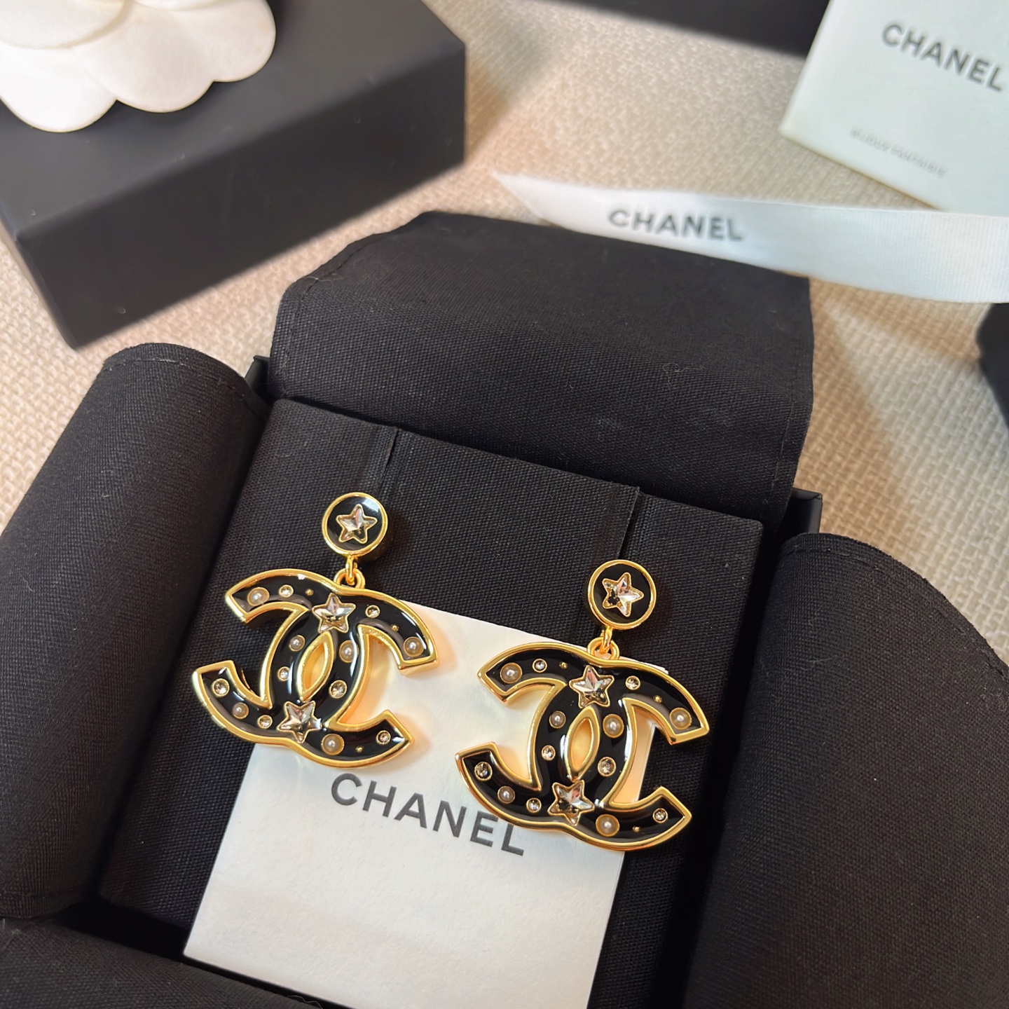 黑金配色低調卻充滿氣場,帶點復古港風的味道,上耳立刻有「富家千金」的質感氛圍,既時髦又精緻,完全是那種越看越耐看的精品級飾品。