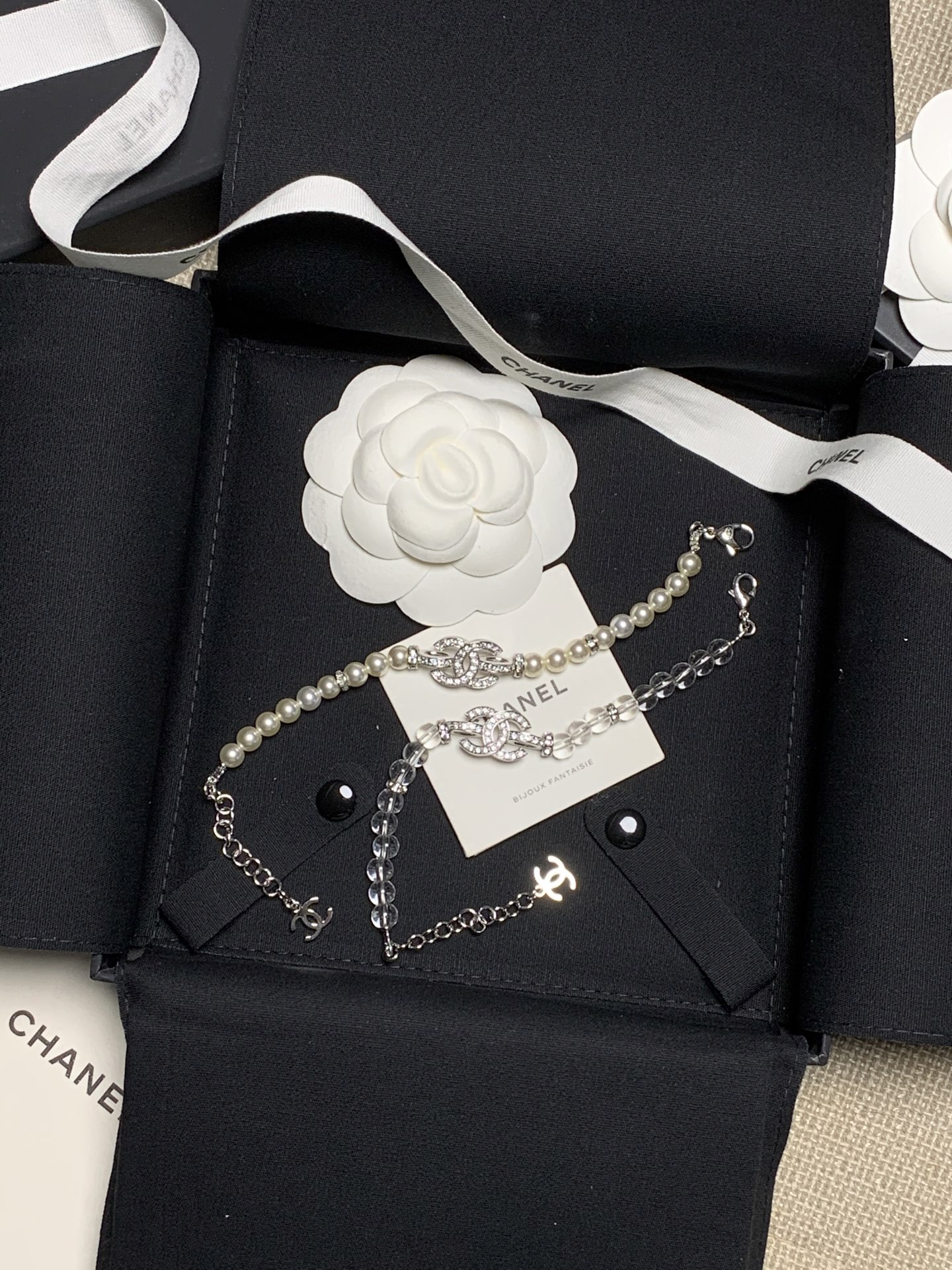 經典雙C搭配滿鑽設計,細緻到顆顆閃耀的施華洛世奇珍珠或透明珠,無論單戴還是疊戴都能展現極致的高級感與時髦氛圍。