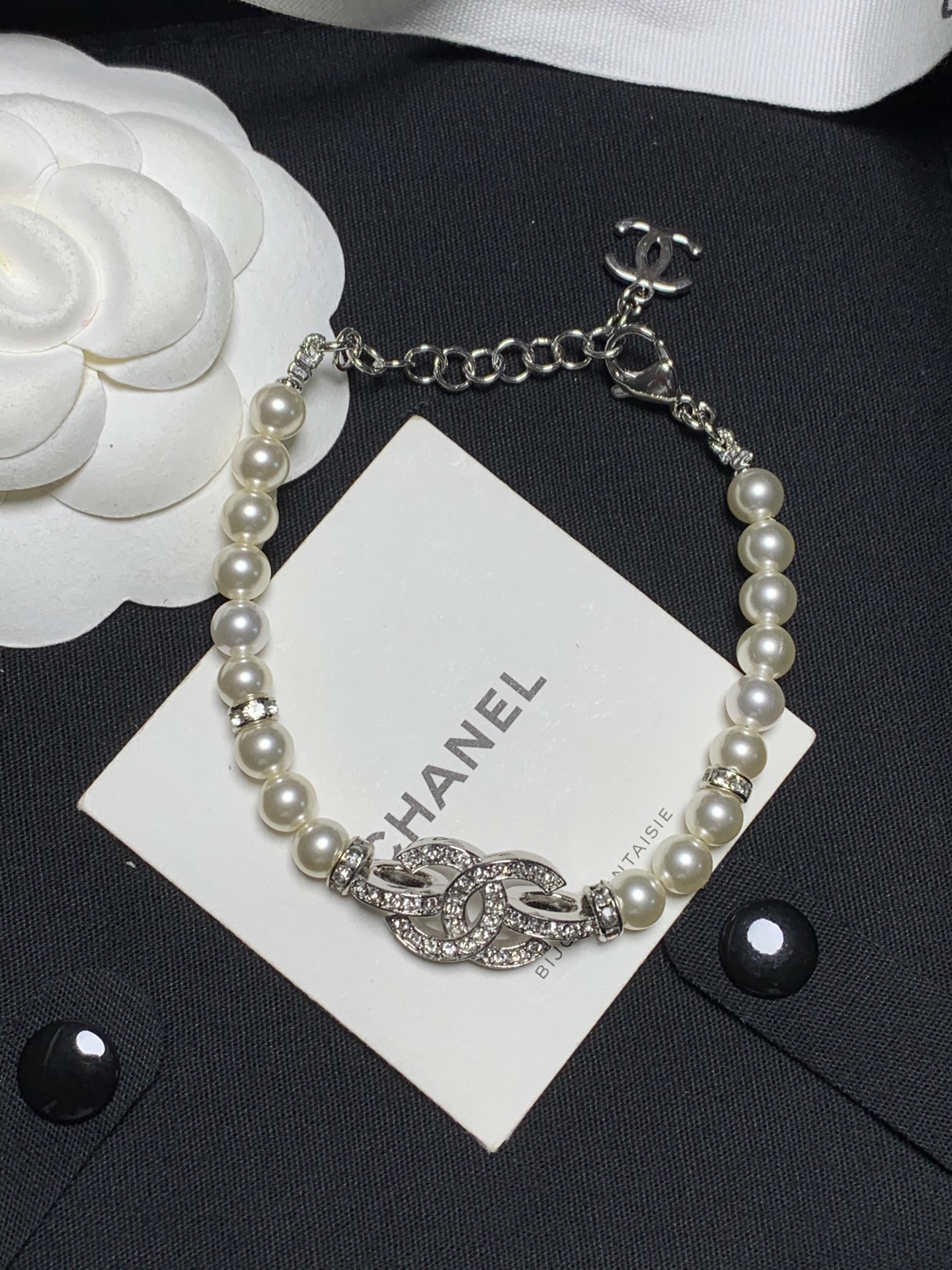 C家 滿鑽銀C珍珠/透明珠手鍊