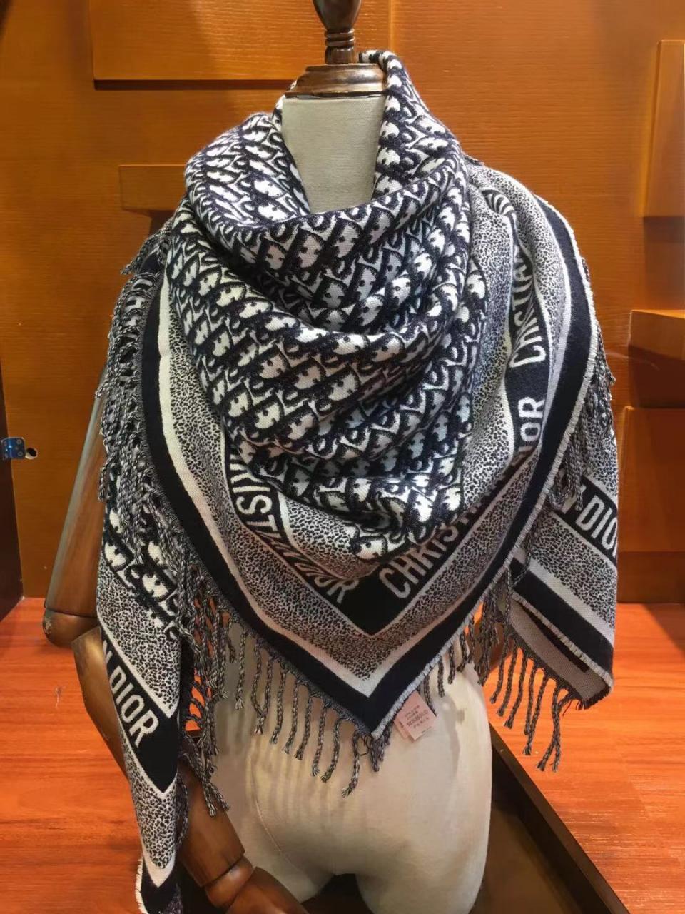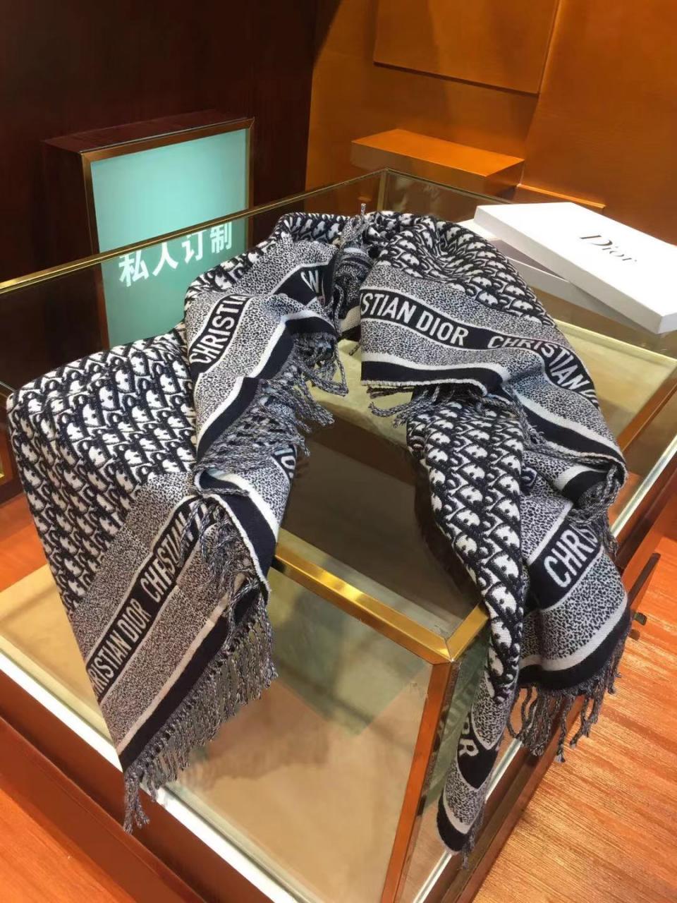 2021早秋 新款滿版提花披肩圍巾 四周邊緣採用品牌字樣