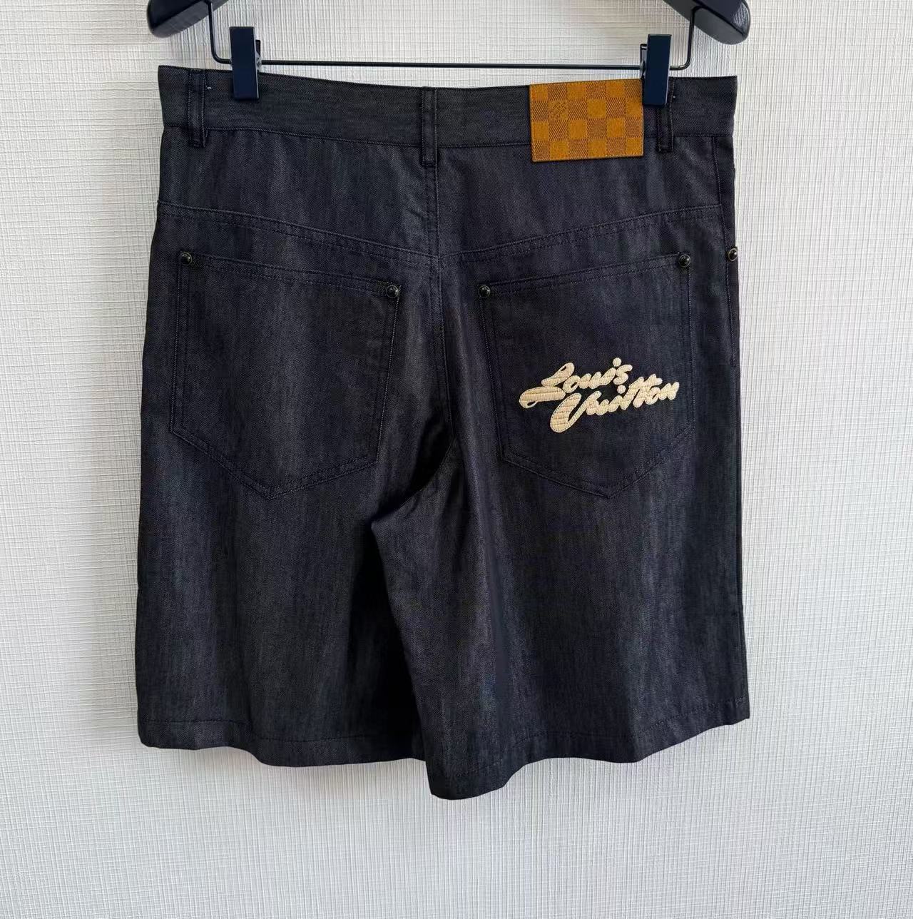 2025夏季新品 L家 拉菲草刺繡牛仔短褲