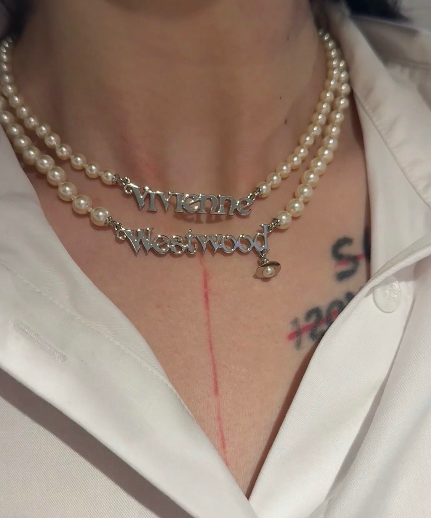 字母、土星與珍珠三種元素的結合,讓整體風格在冷豔與甜美之間取得完美平衡,既有一點叛逆的龐克感,又保留少女的精緻與俏皮。