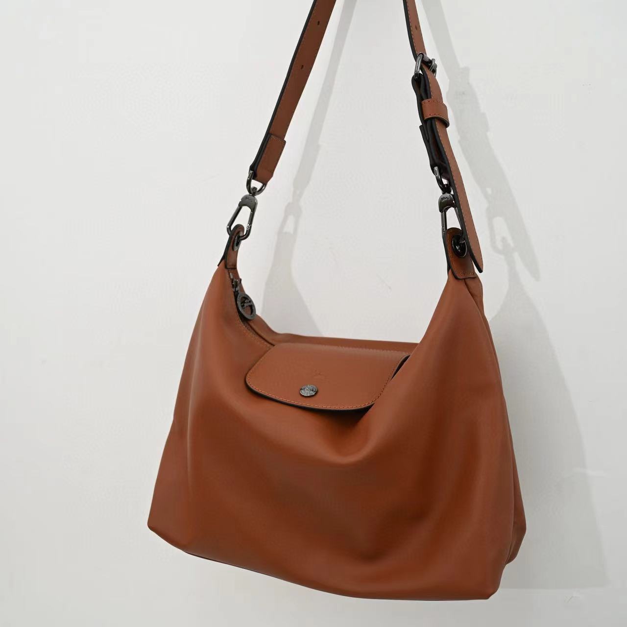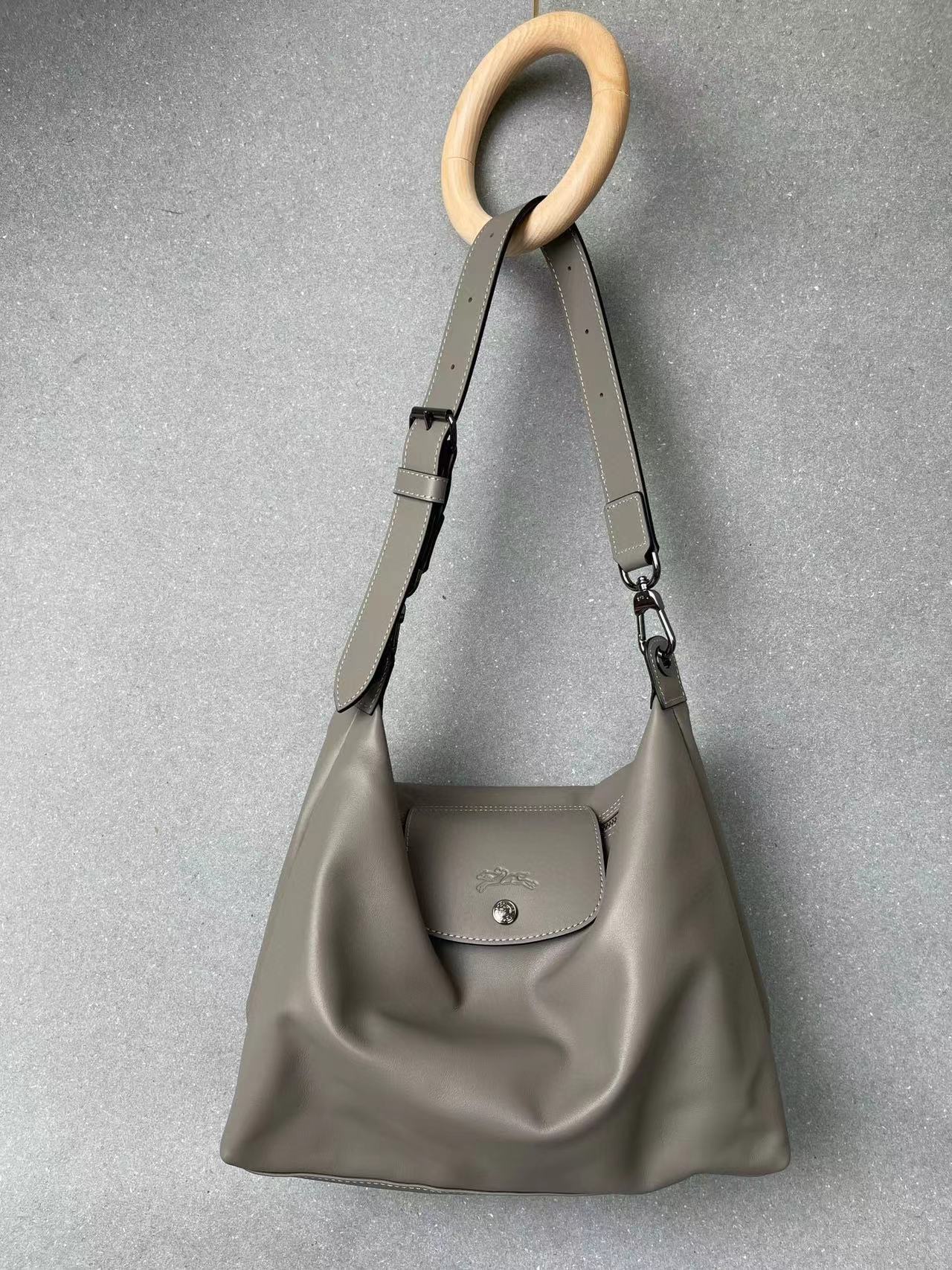牛皮材質 表面光滑 容量很夠裝 寬肩帶設計