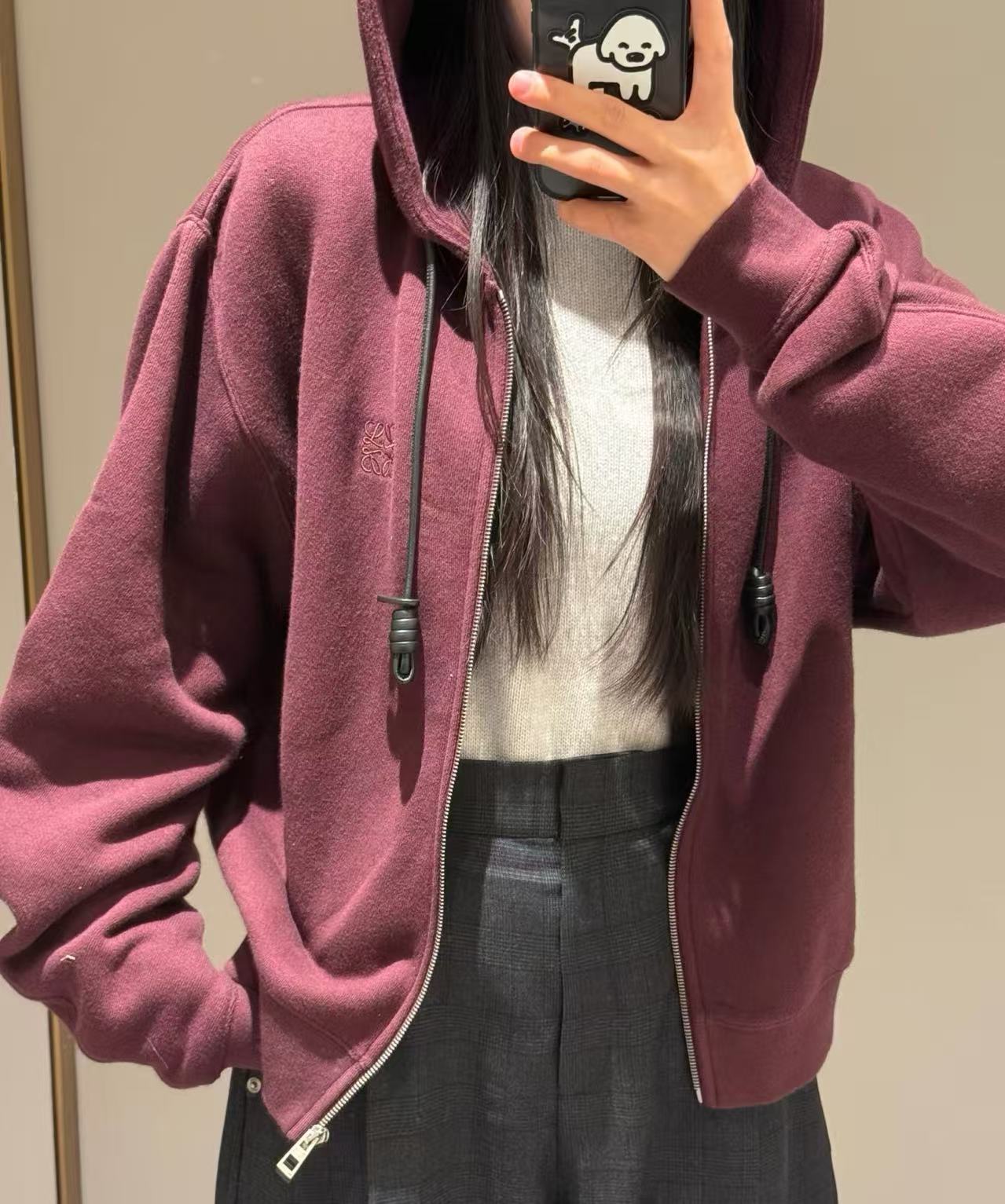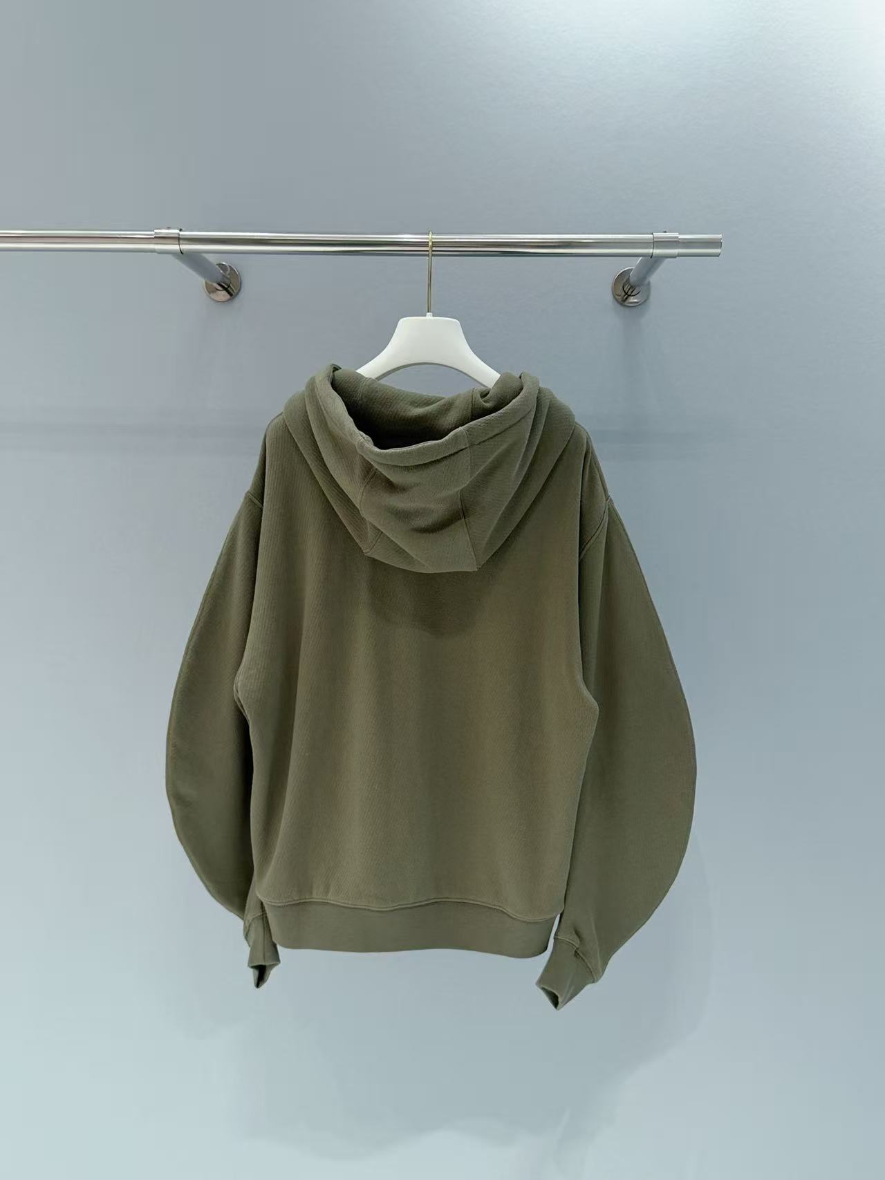 胸前品牌 Anagram 標識用精緻繡花工藝,低調融入材質,暗藏細膩質感。袖身採用立體彎刀剪裁,保留衛衣的舒適鬆弛,同時修飾肩臂線條,比例超好看!