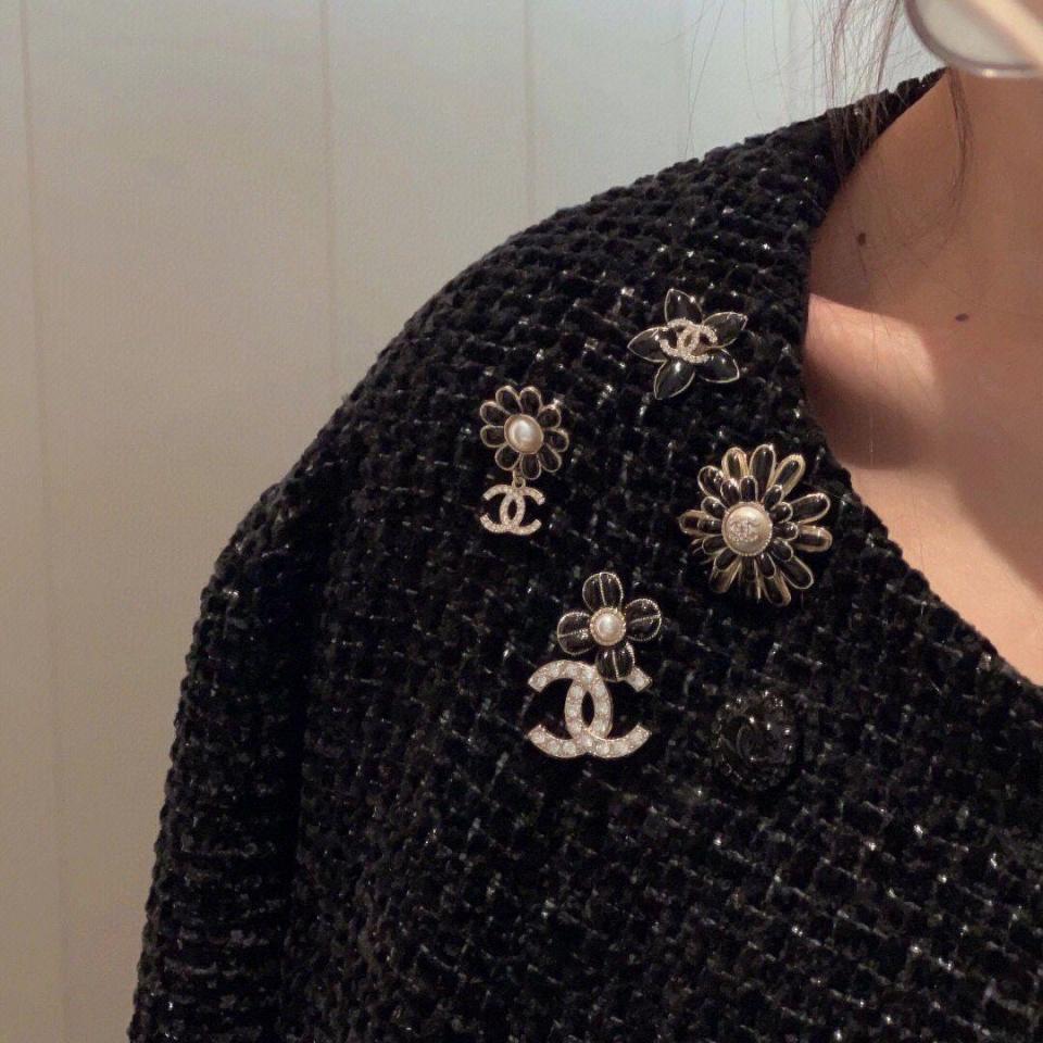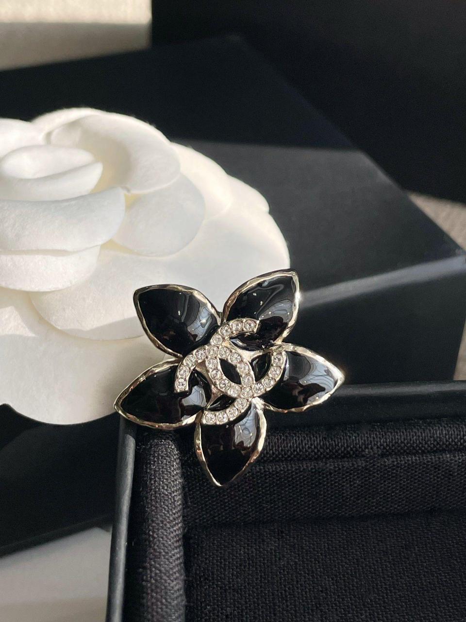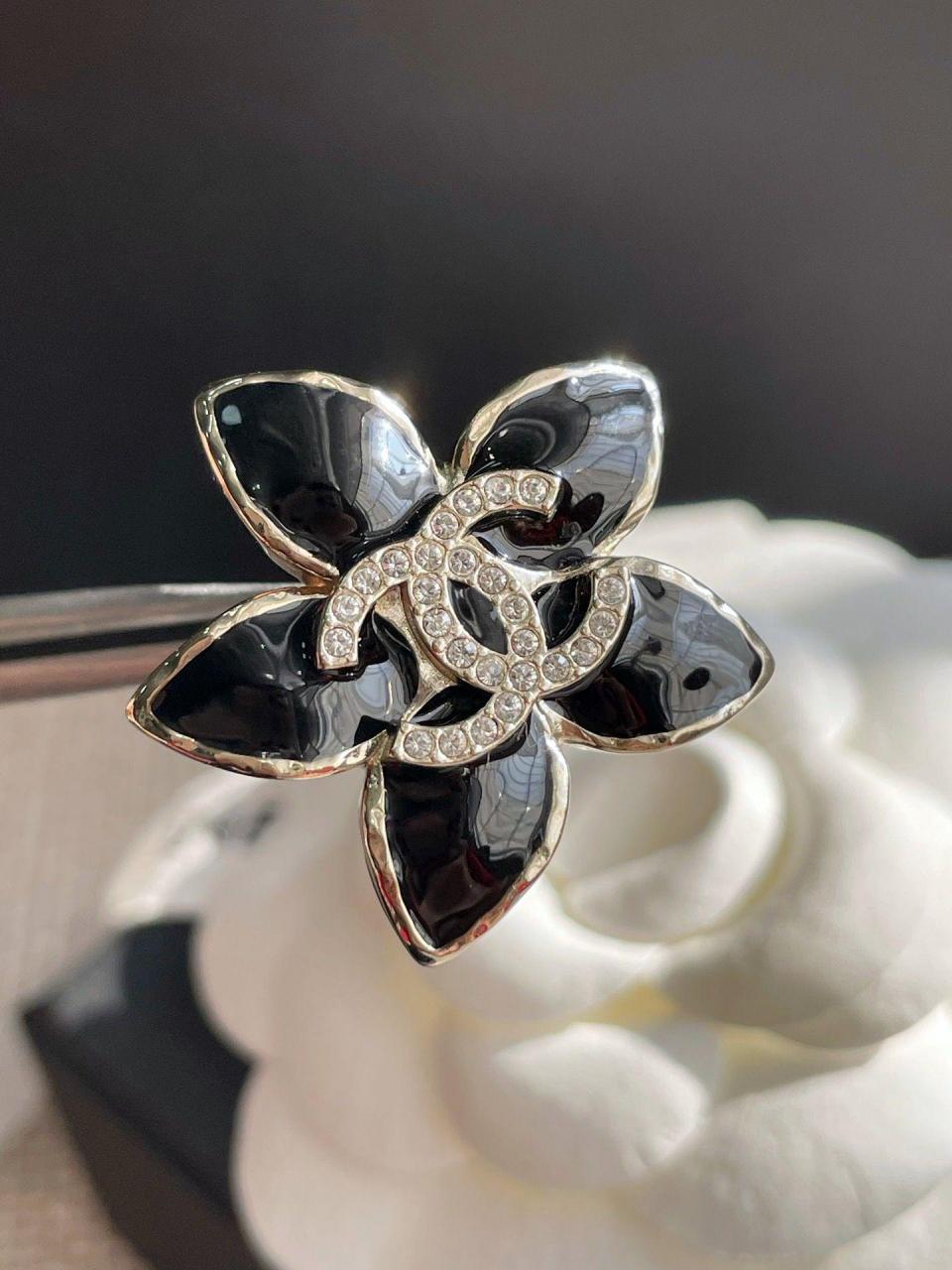 百搭經典!小巧的尺寸疊搭最佳選擇,黑色滴油的花瓣搭配淺金色不規則邊緣,低調而精緻,加上雙c上顆顆施華洛鑽超bling,小巧又不失存在感,背面純手工拉絲工藝,完美的弧度,簡約而不簡單!