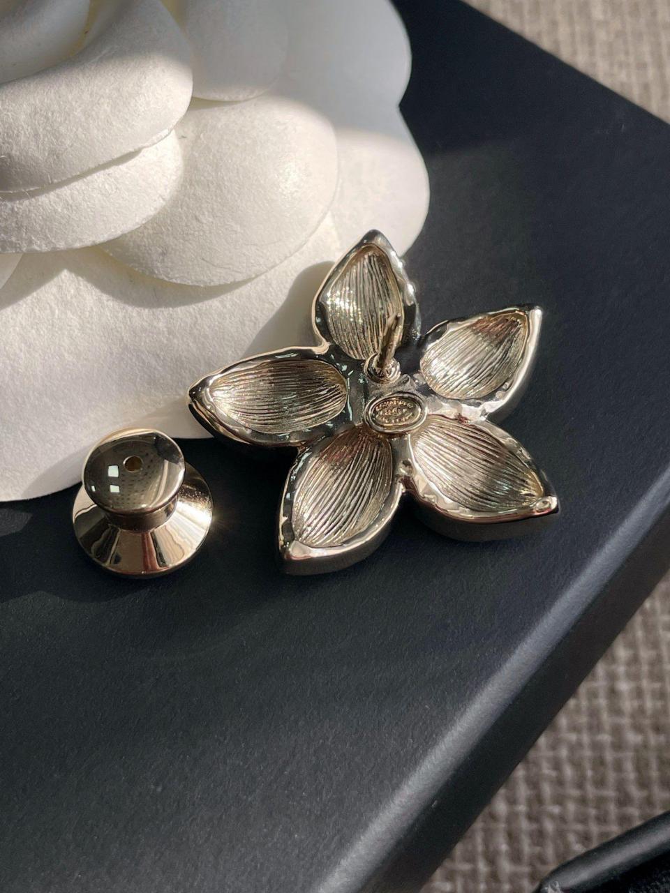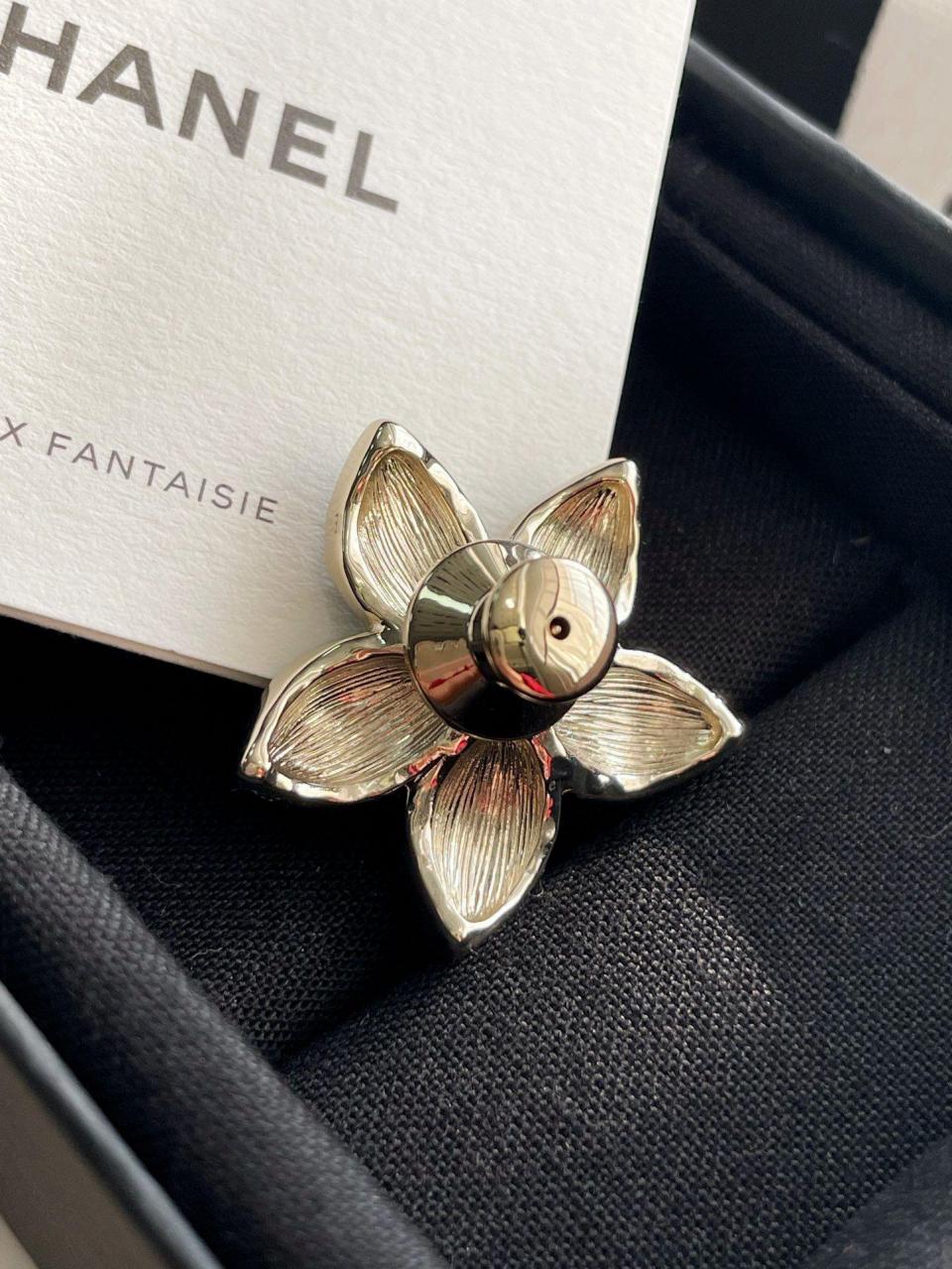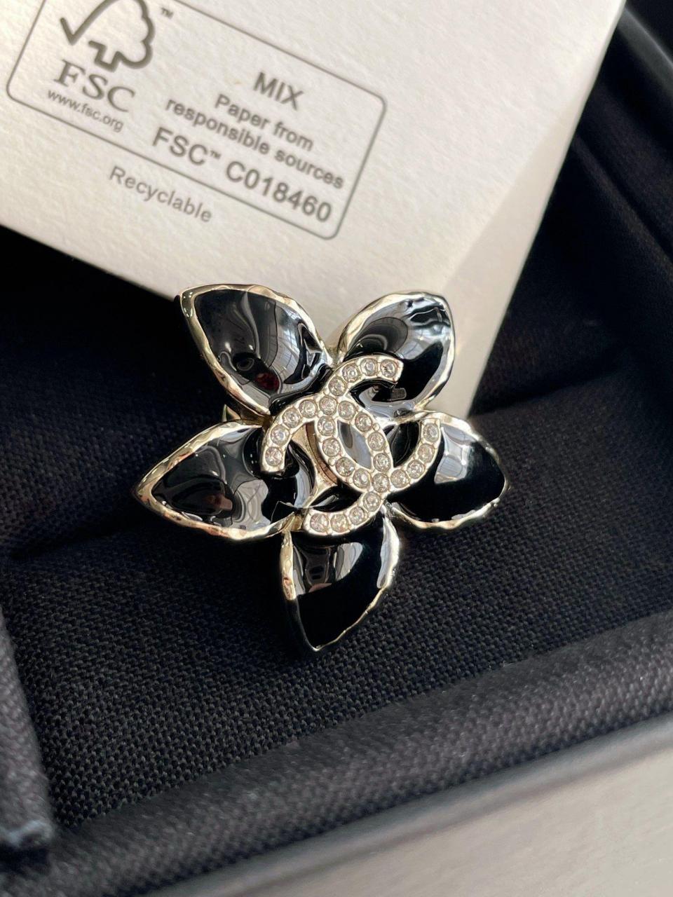 百搭經典!小巧的尺寸疊搭最佳選擇,黑色滴油的花瓣搭配淺金色不規則邊緣,低調而精緻,加上雙c上顆顆施華洛鑽超bling,小巧又不失存在感,背面純手工拉絲工藝,完美的弧度,簡約而不簡單!