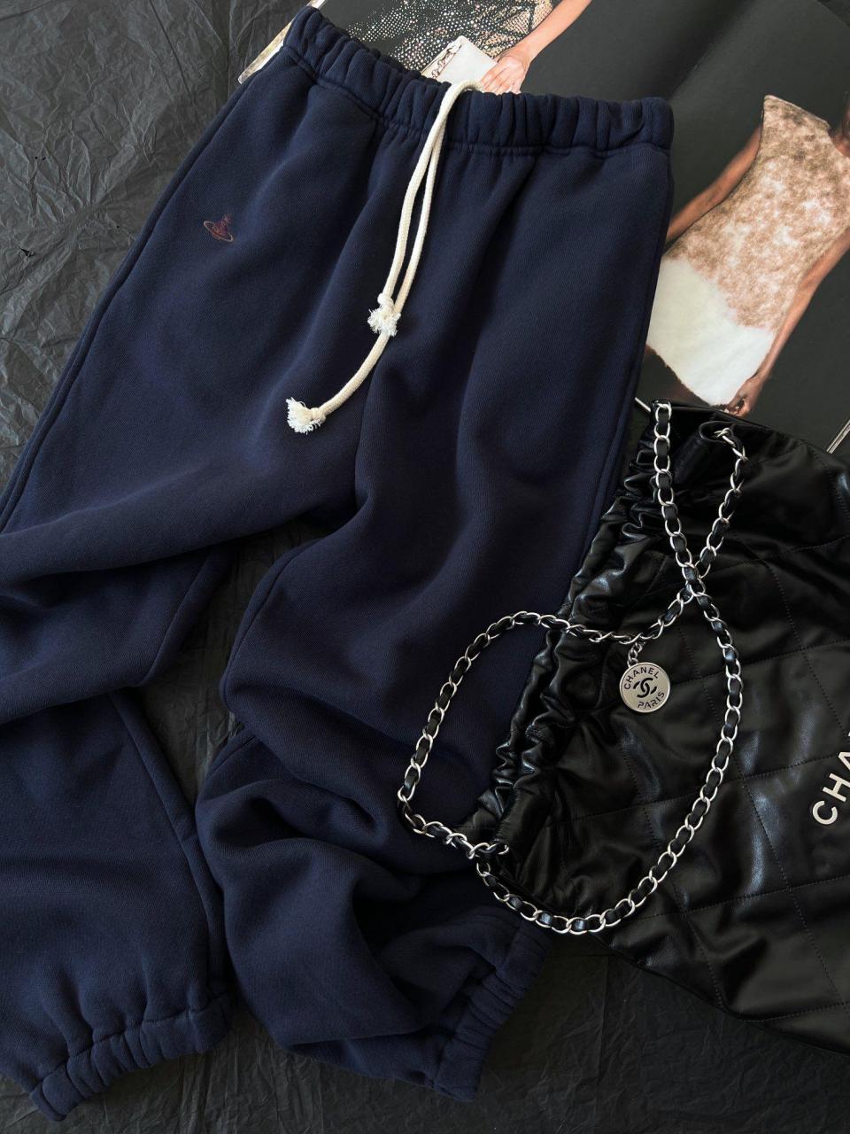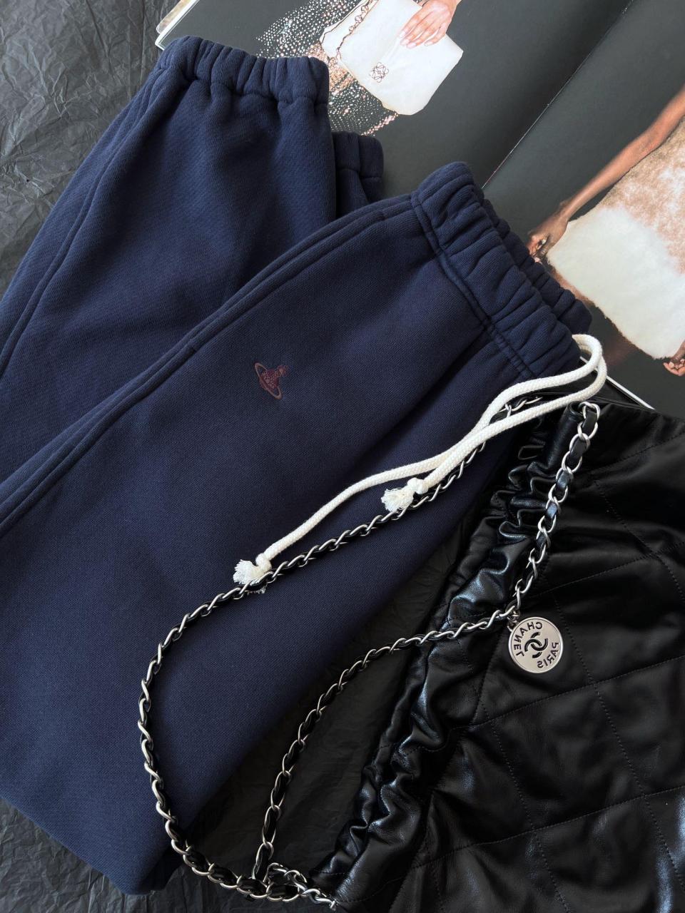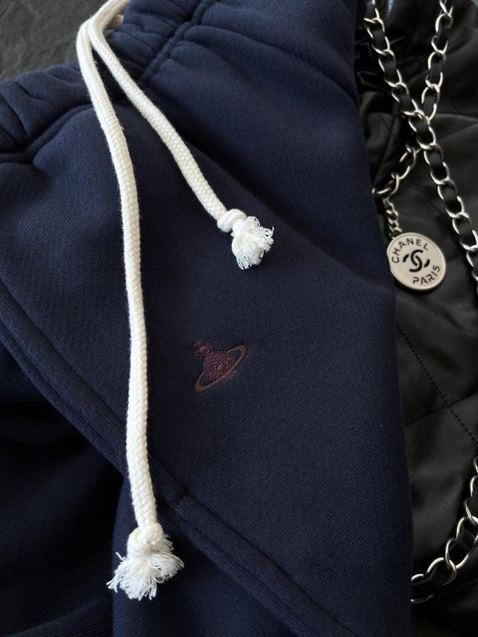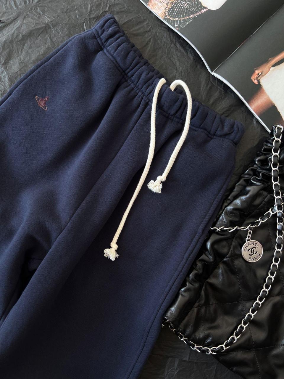 2023春夏 VW家小土星刺繡LOGO加絨休閒長褲【深藍】