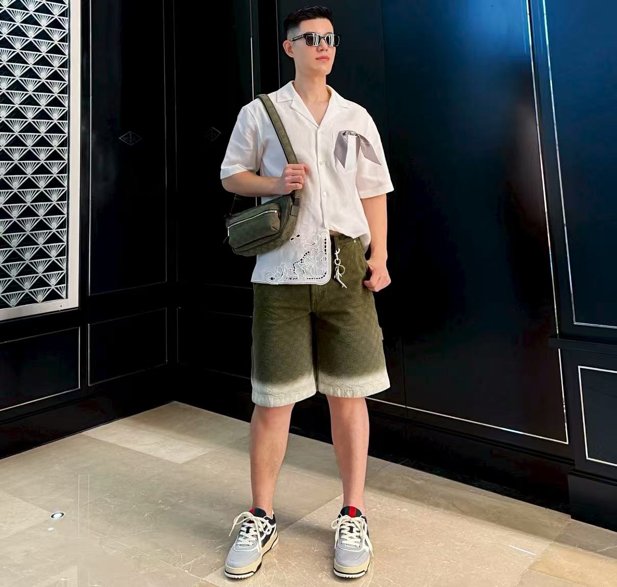 2025早秋新品 G家 雙G提花漸變森林綠短褲