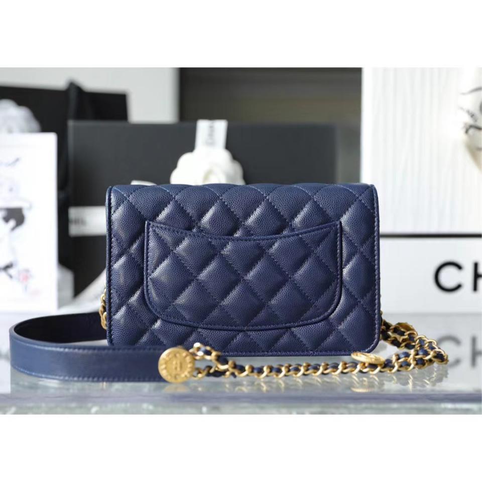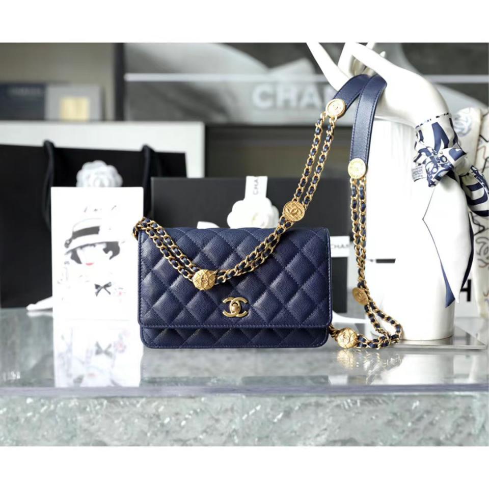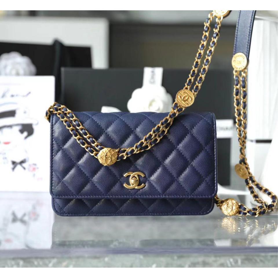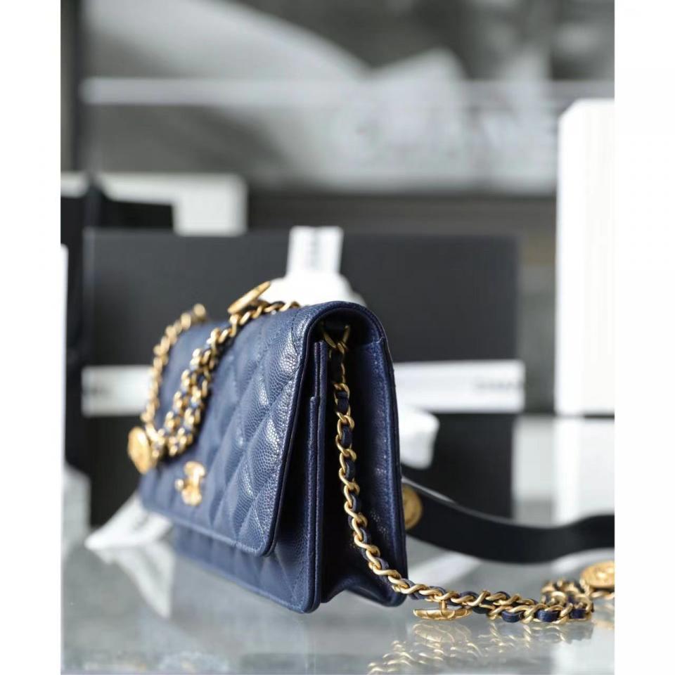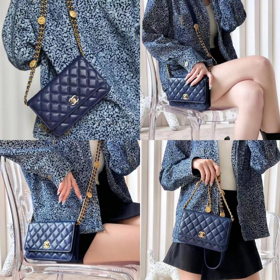 2022春夏新品 高級手工坊 徽章金幣鏈條woc包(海軍藍) 金幣鏈條非常重工精緻