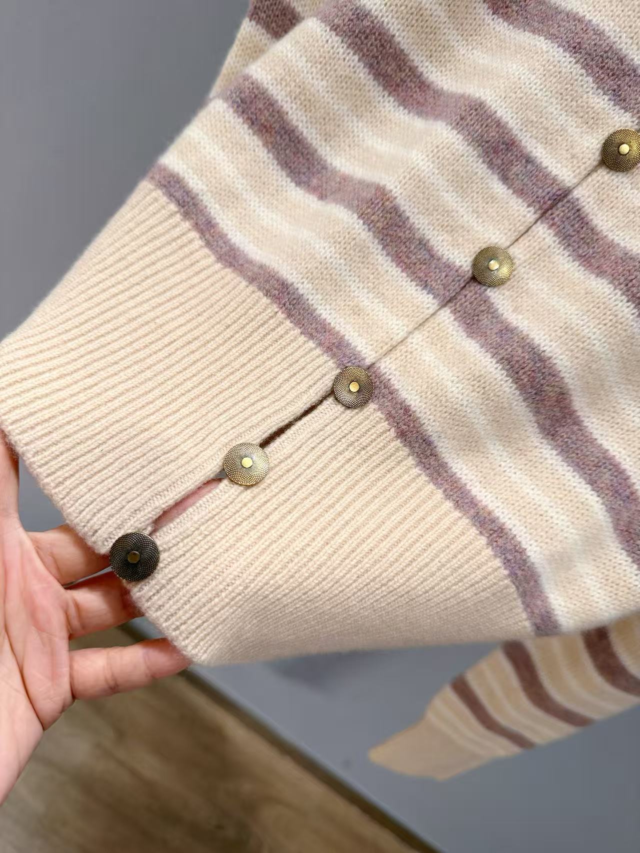 2025早秋 LP家 老錢風羊絨條紋開衫