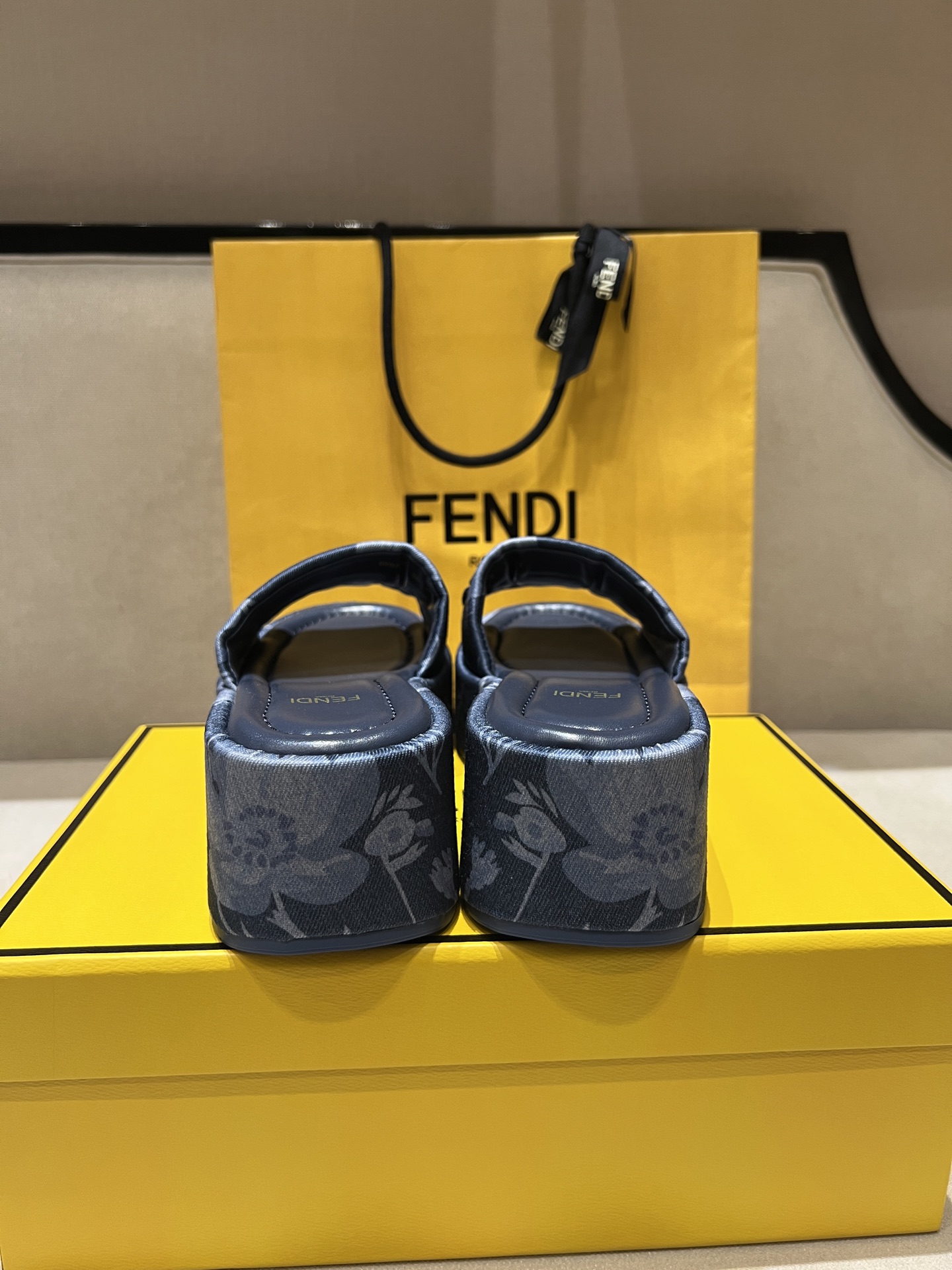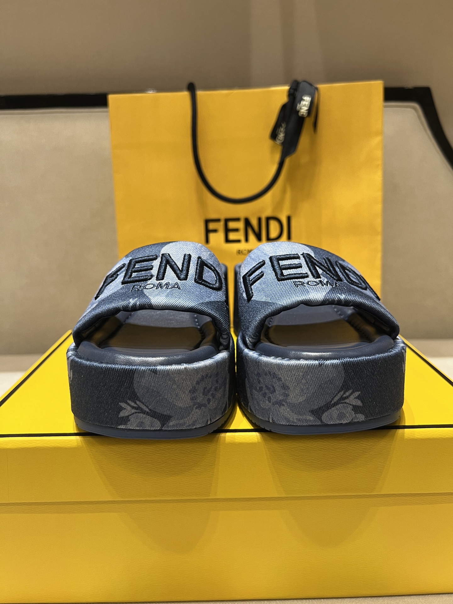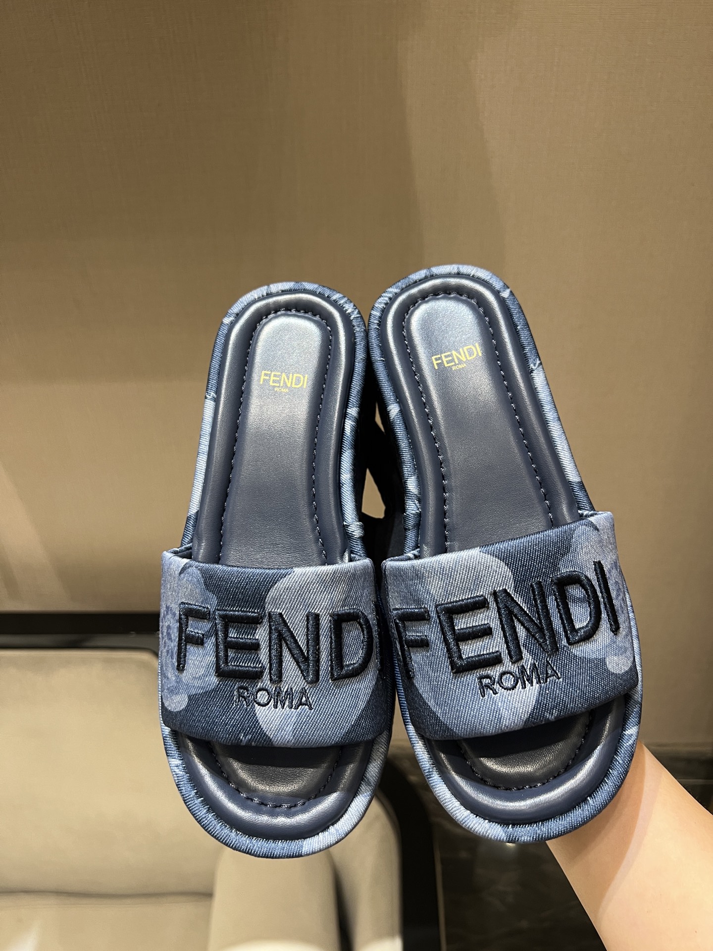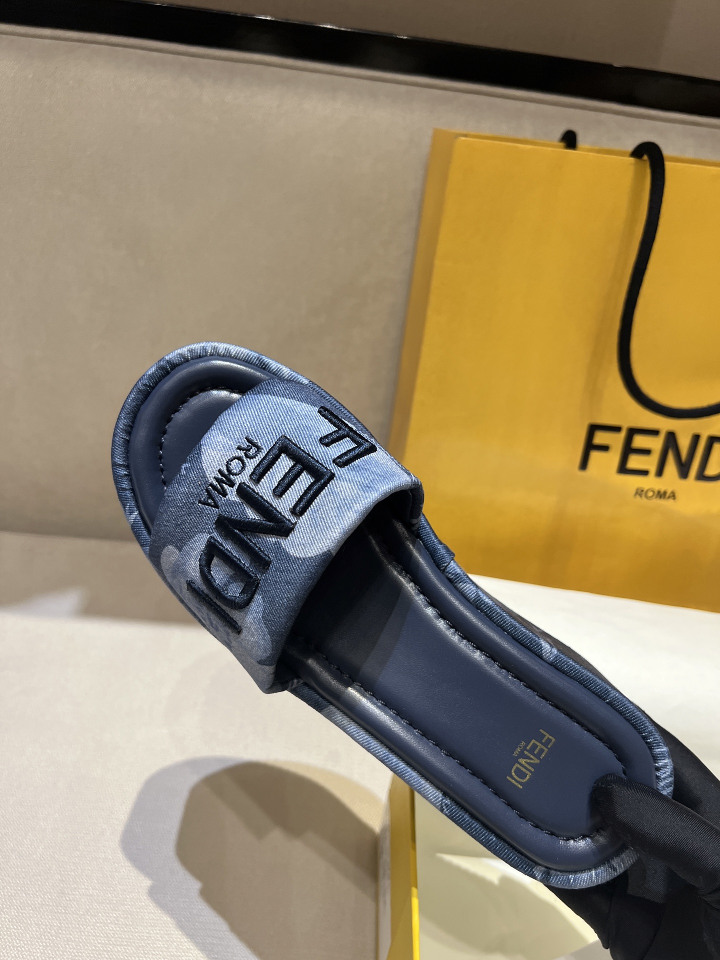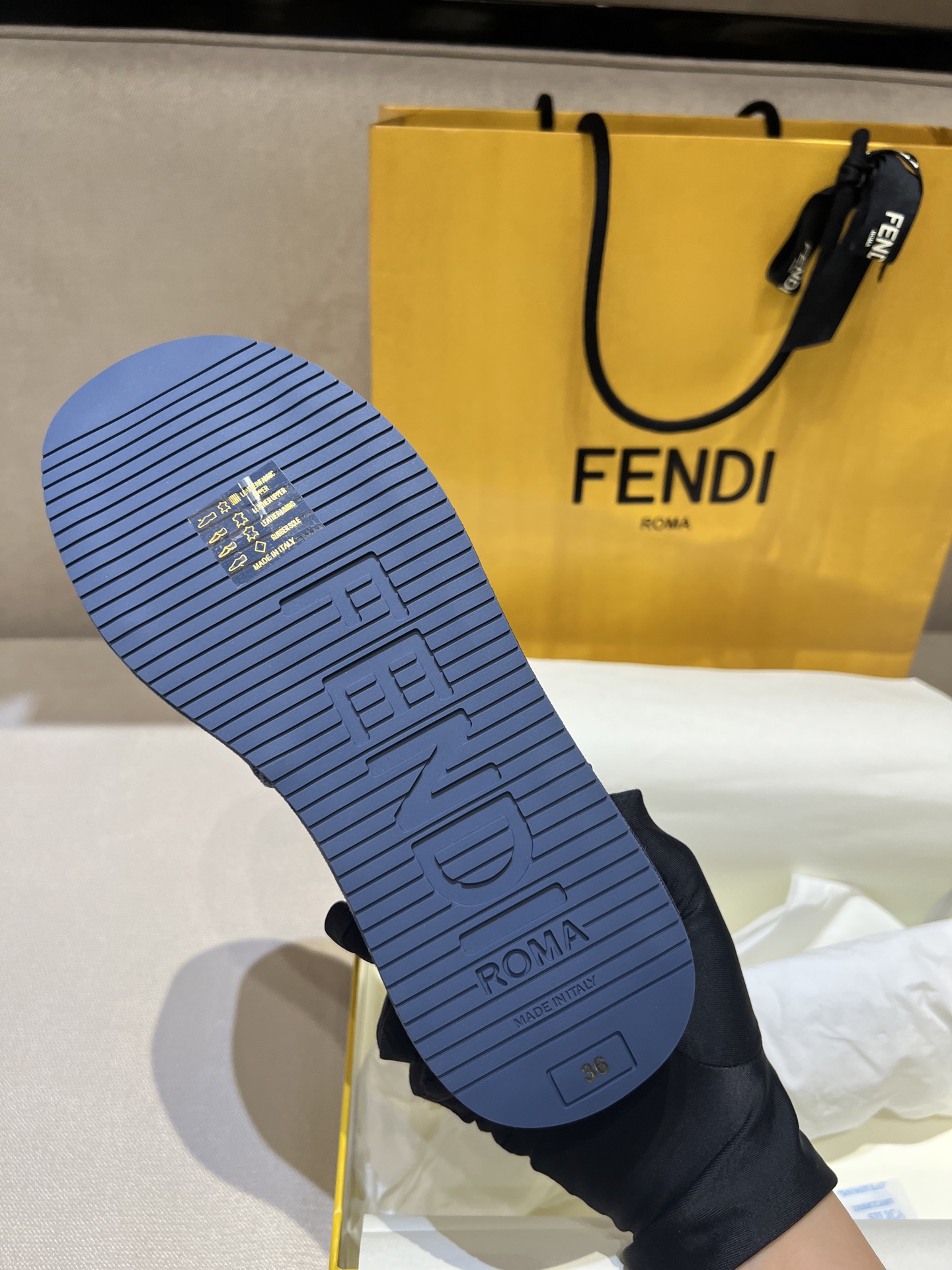 鞋面以藍色紗線繡上 FENDI Roma 字樣,細節處理精緻講究。