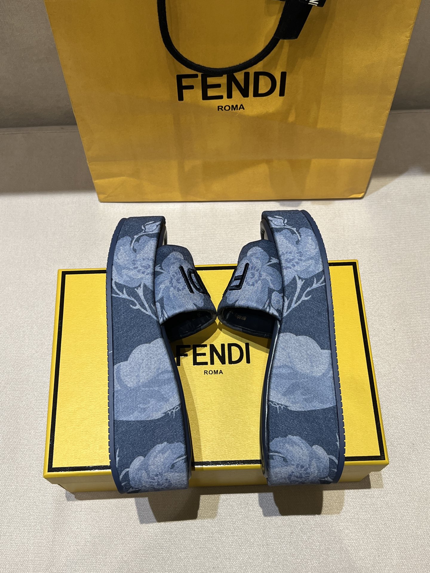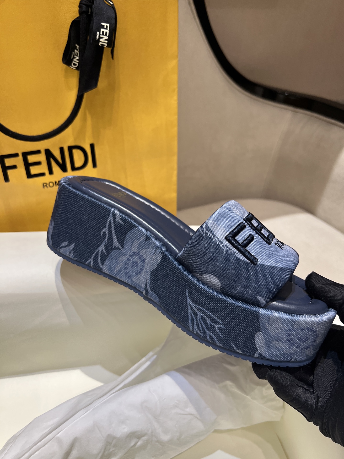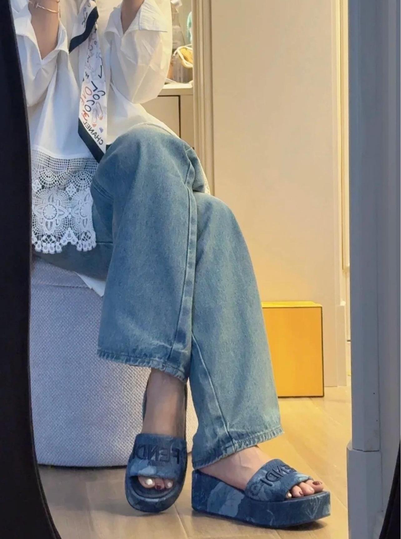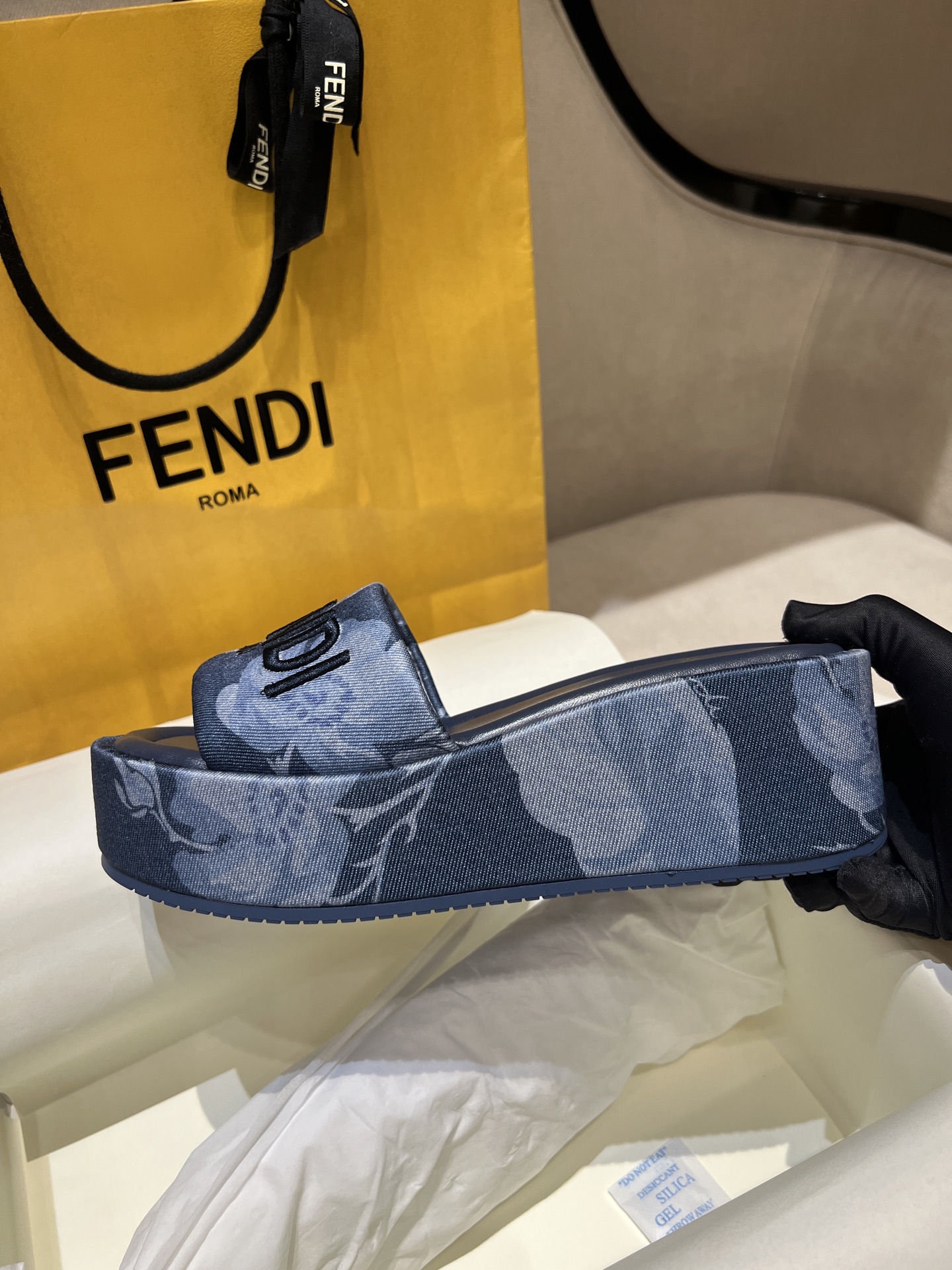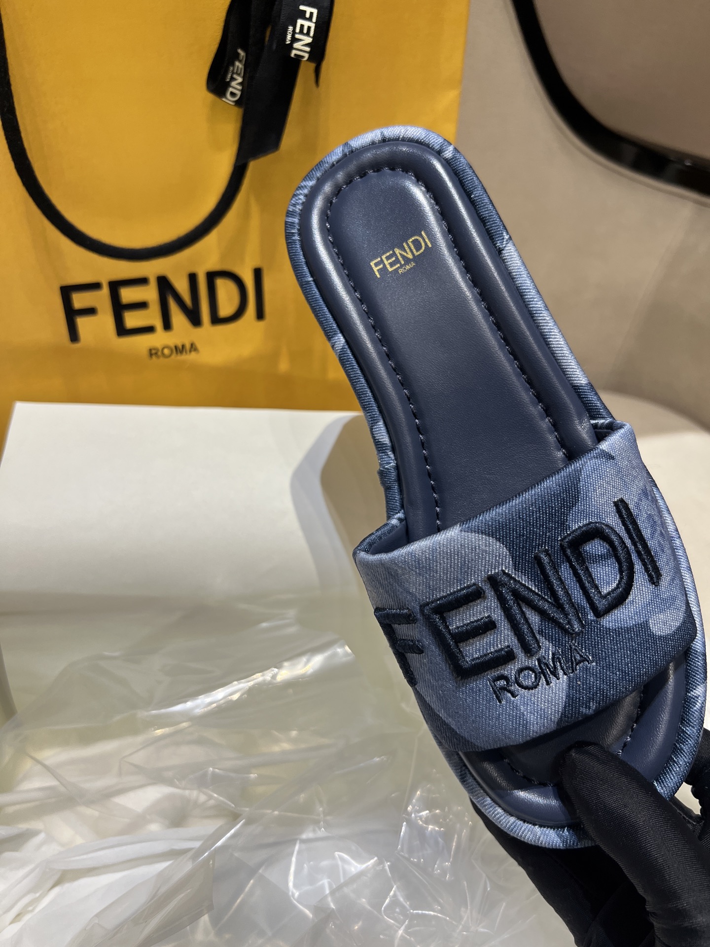 鞋面以藍色紗線繡上 FENDI Roma 字樣,細節處理精緻講究。