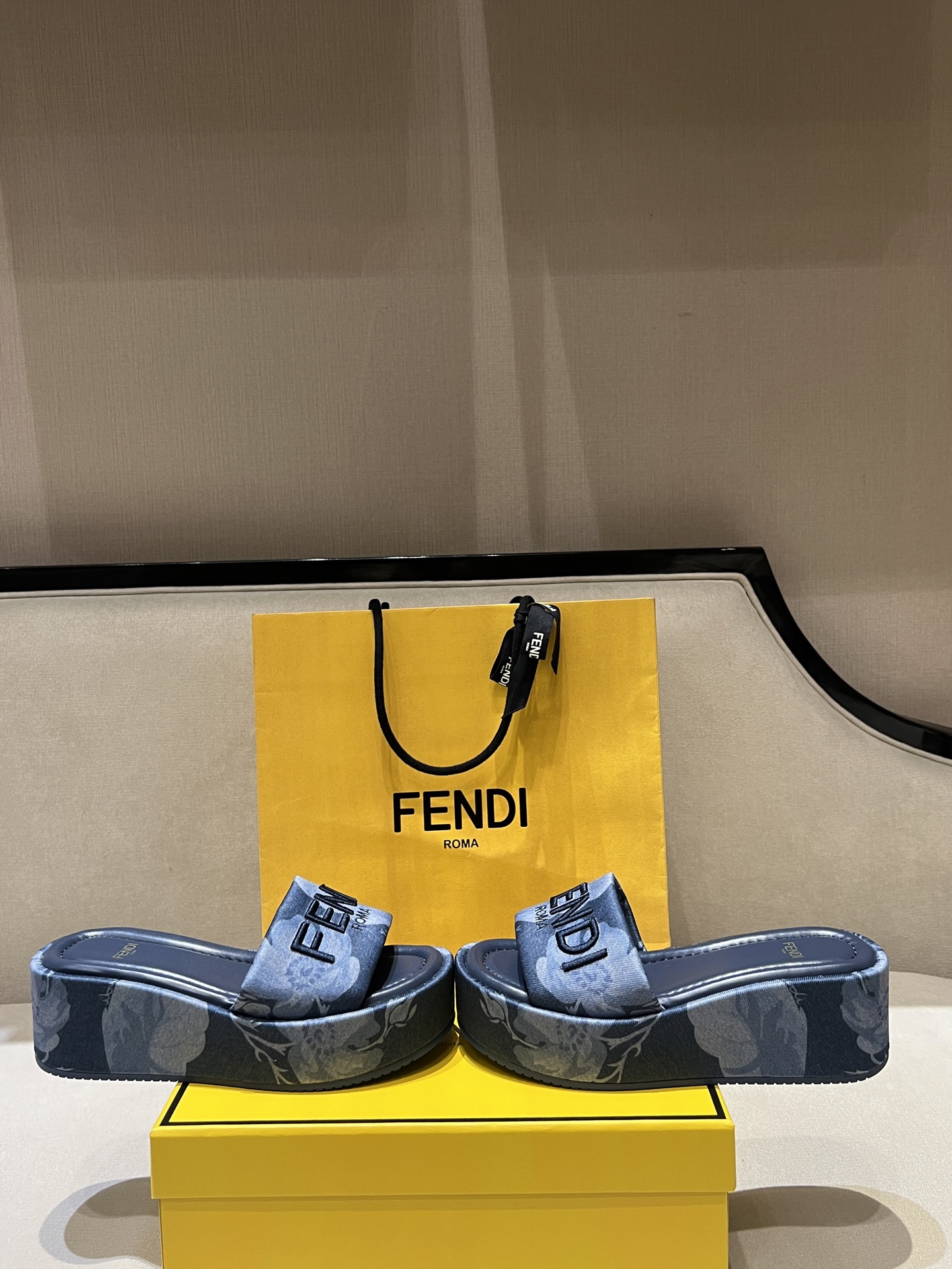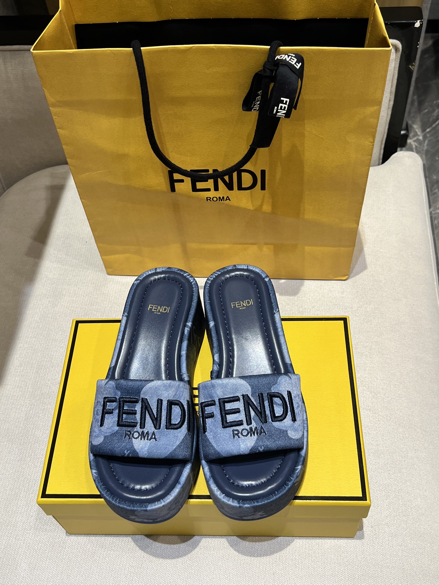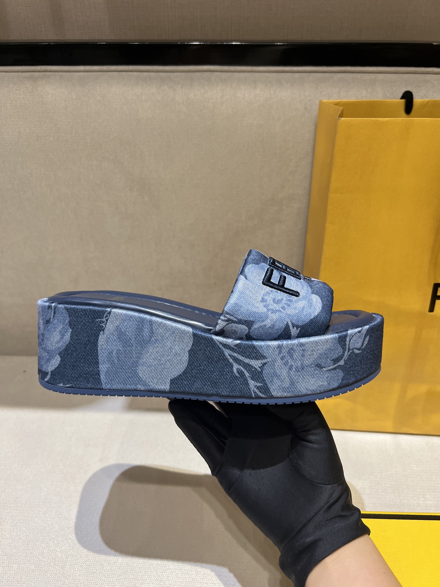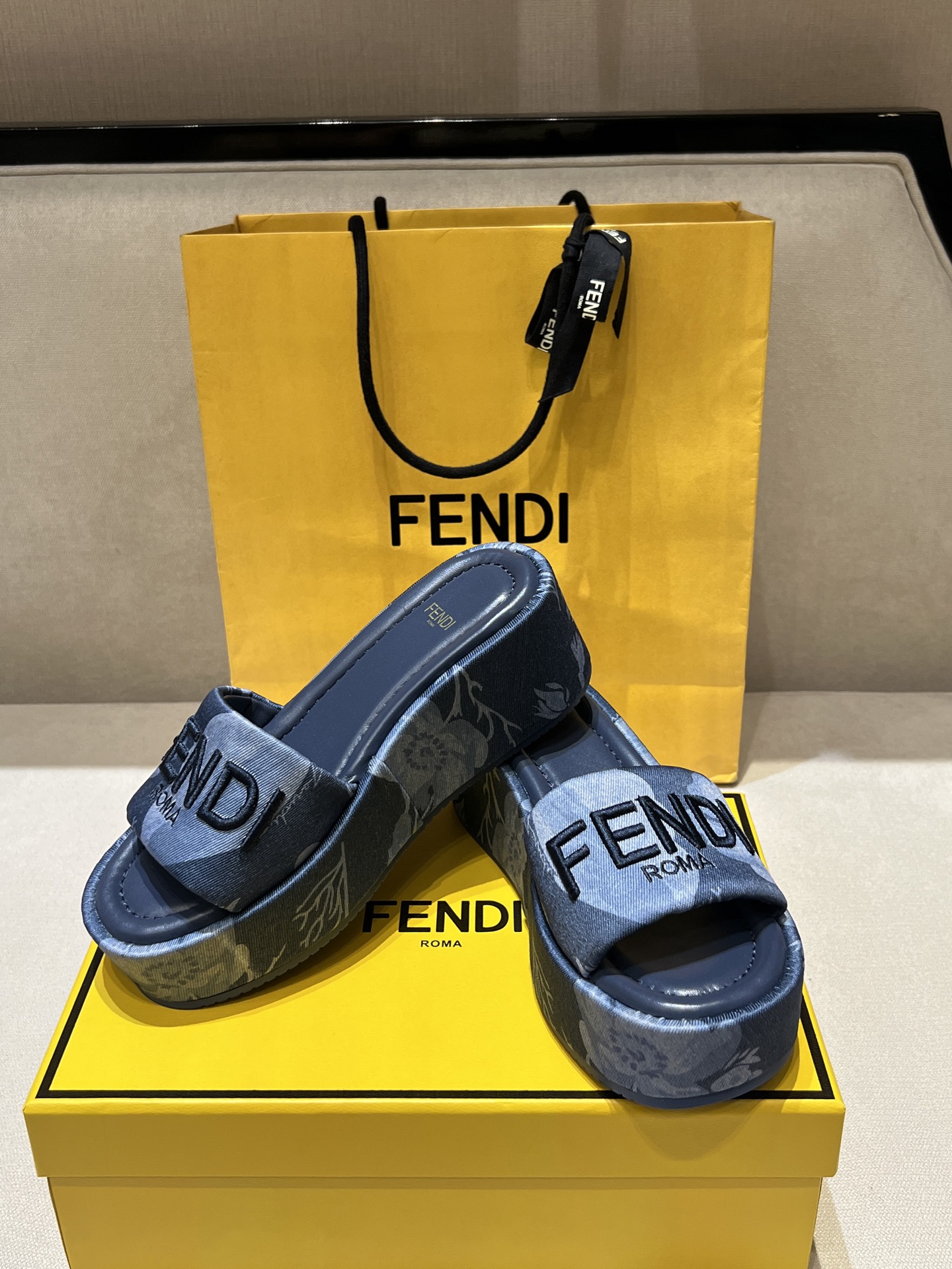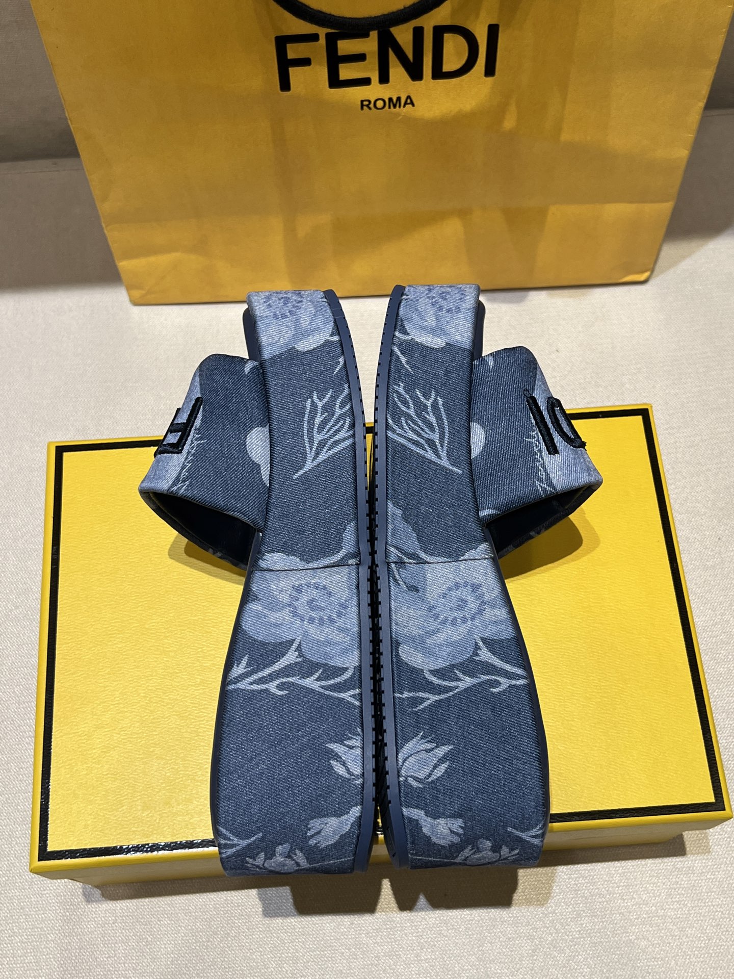 鞋面以藍色紗線繡上 FENDI Roma 字樣,細節處理精緻講究。