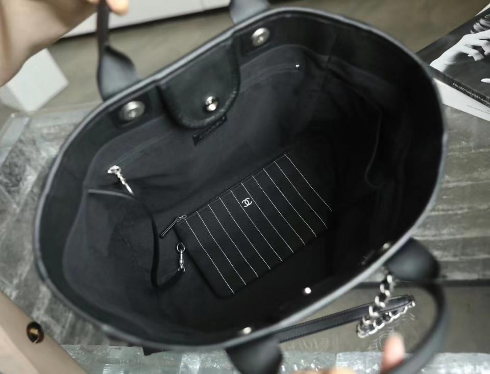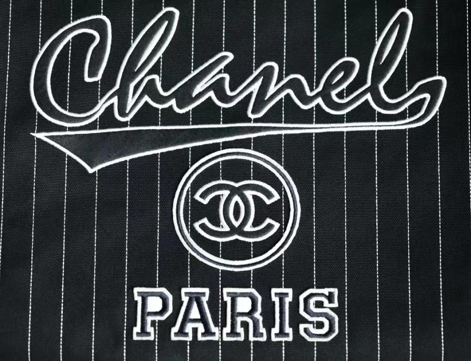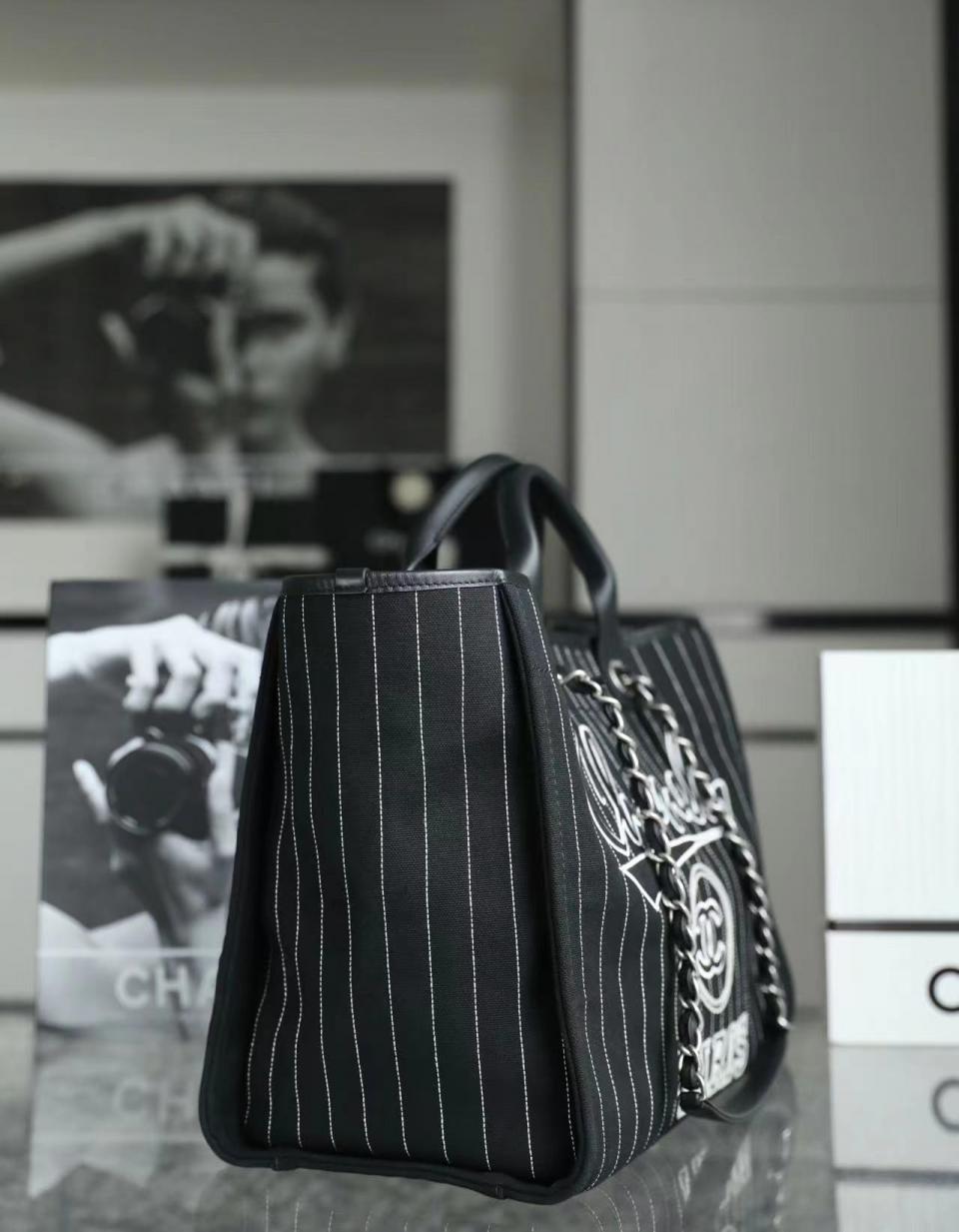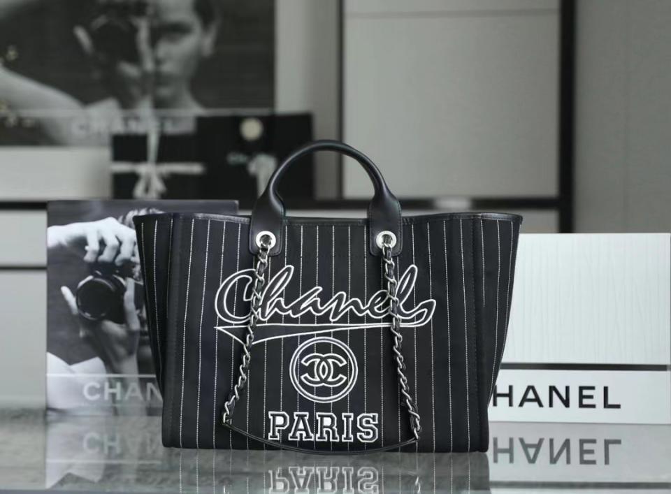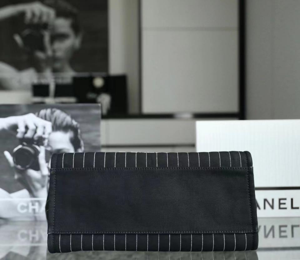 2023夏季新品 C家23p刺繡字母沙灘包(黑色大號) 條紋設計 容量超大