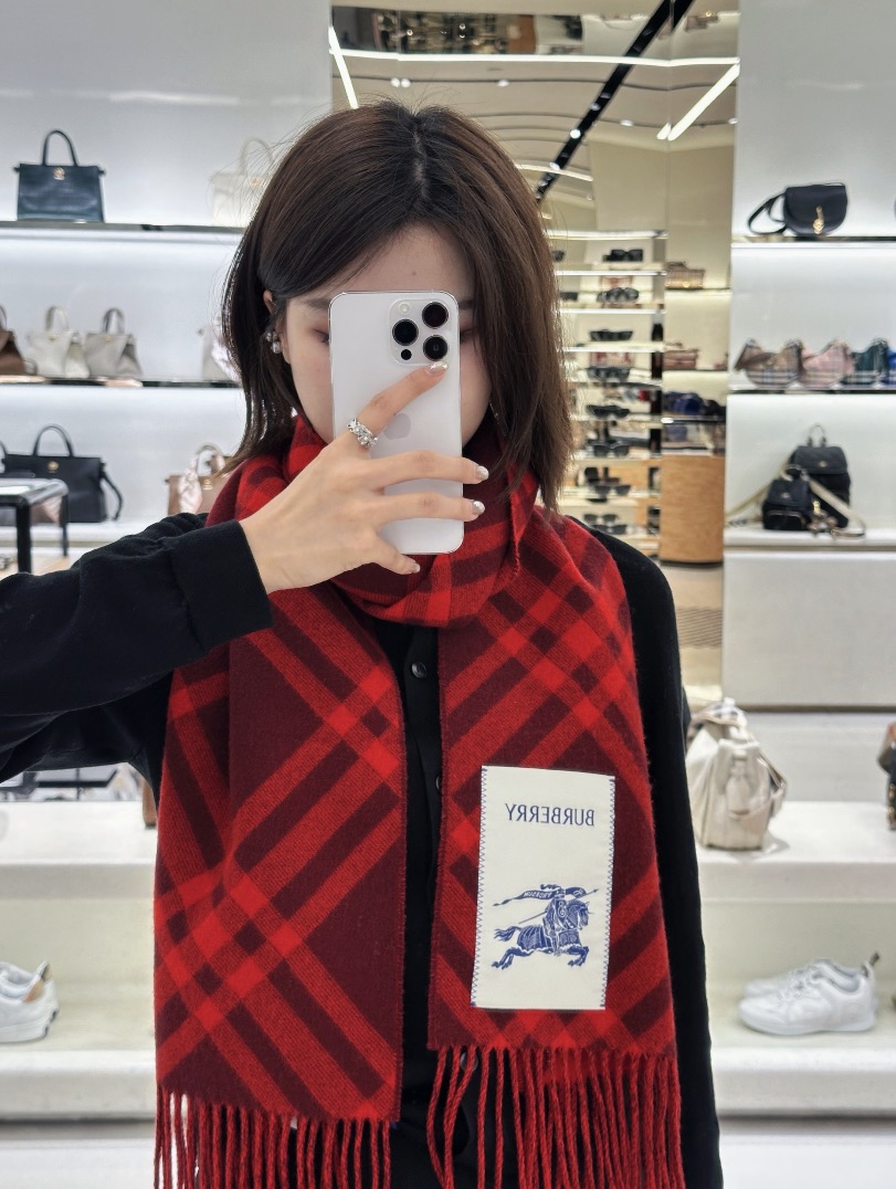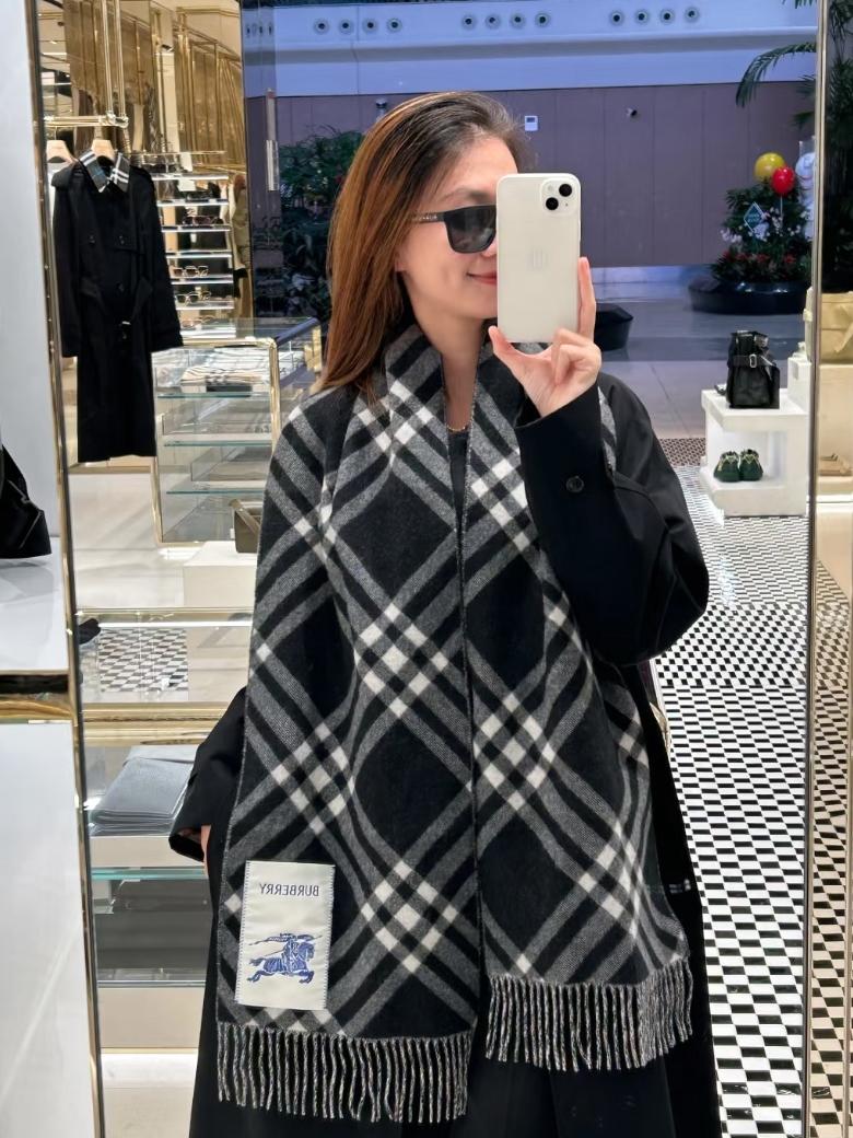 2025秋冬新品 Bur家 羊絨格紋流蘇圍巾
