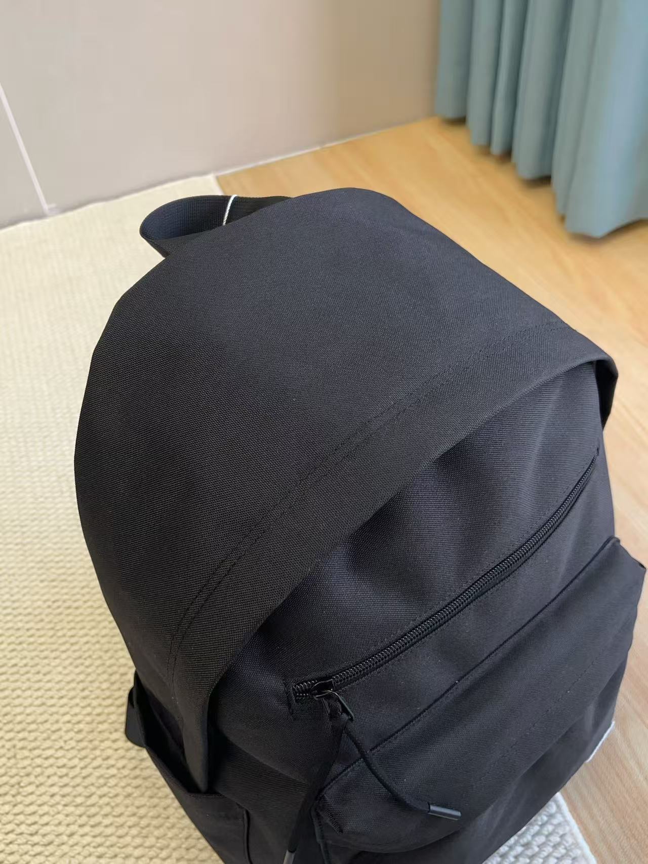 純黑色的俐落廓形 搭配特殊的質地光澤,散發出一種低調卻高級的高街氣息。