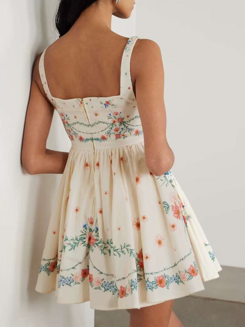 Agua家 復古繁花高收腰吊帶裙