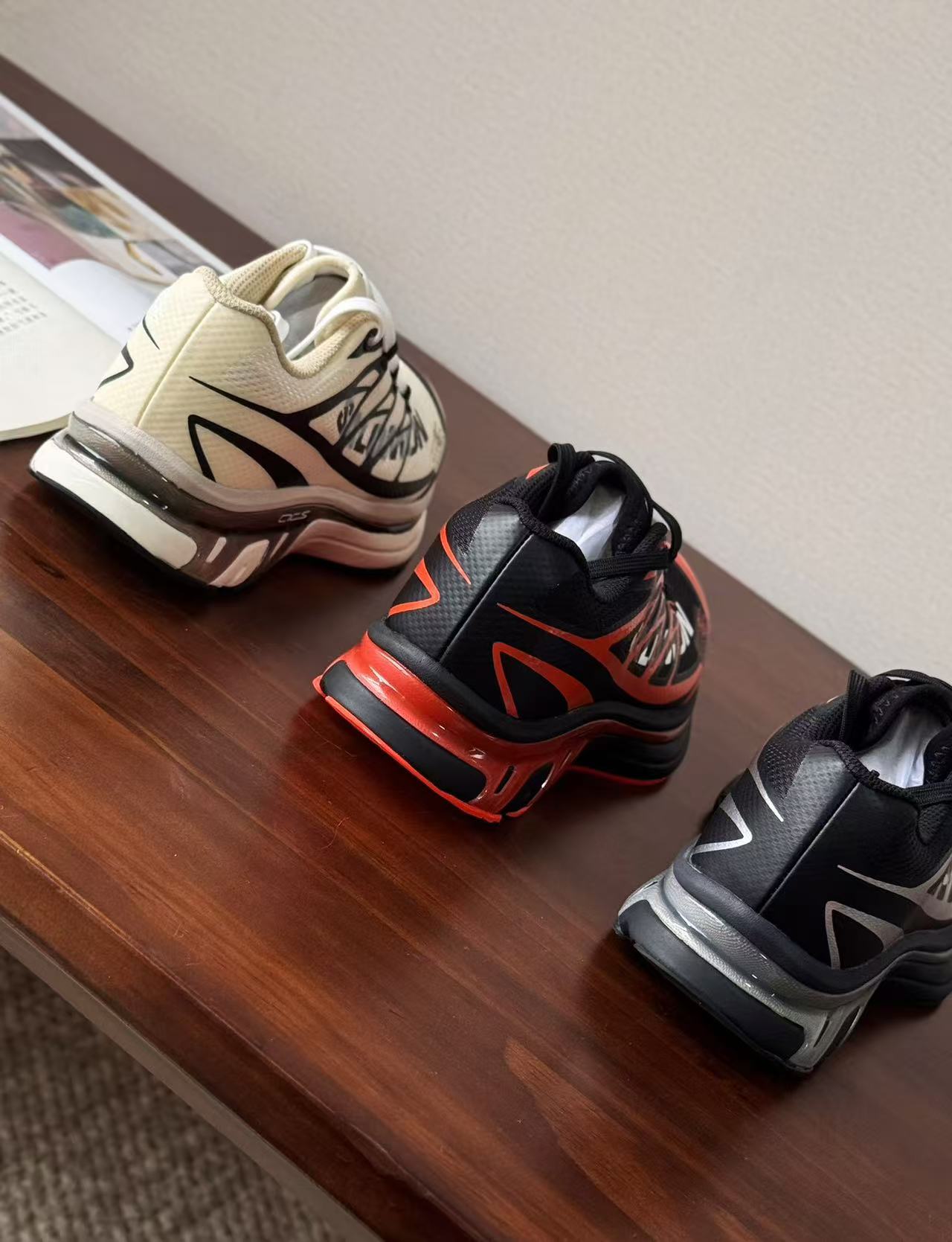 這雙根本是2025機能風的「街頭核彈」,遠看就是一雙超有態度的黑白紅老爹鞋,近看才發現鞋面滿滿MM6細節+SLM專業越野基因,隨便一踩整個人從台北信義區變阿尔卑斯山專業選手,帥到讓路人自動幫你讓路,情侶直接穿爆~