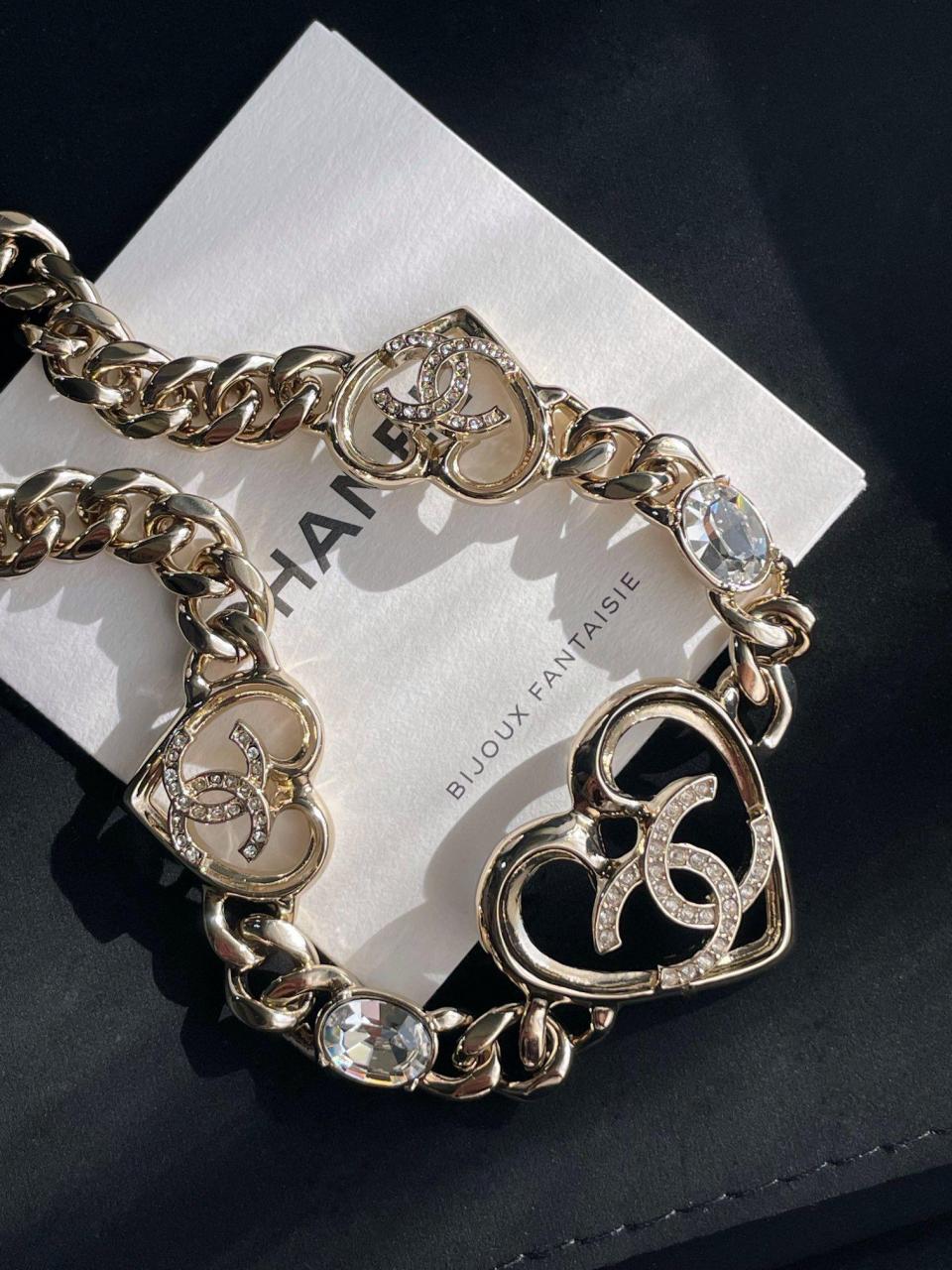 長度可調節,可當choker,可當短項鍊,繞兩圈還可當手鍊,很有氣質的簡約設計,鏤空的愛心形狀雙c,上邊顆顆施華洛水晶點綴,恰到好處的淺金低調又高級,質感超nice!現代時髦感充斥著每一件飾品,不高調,但出眾!