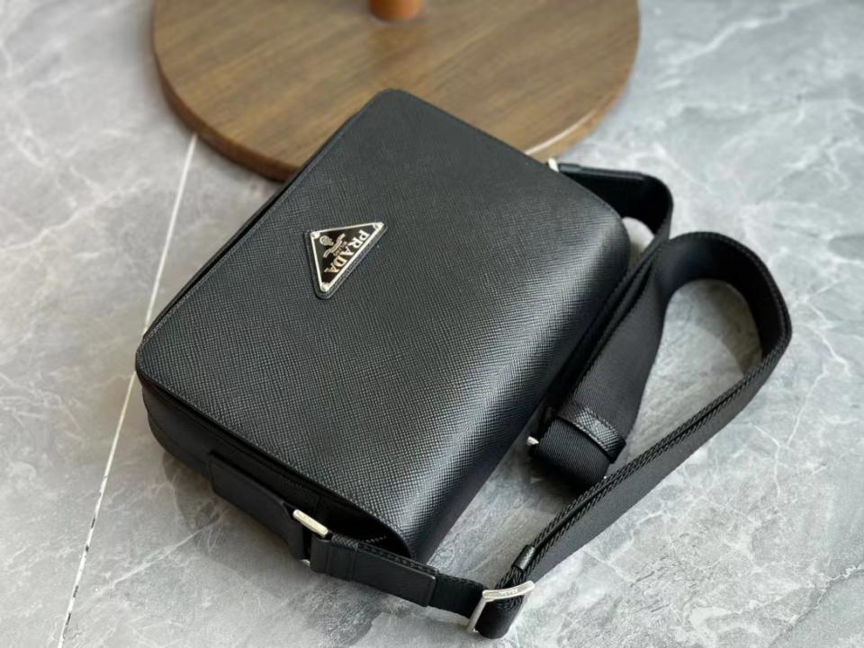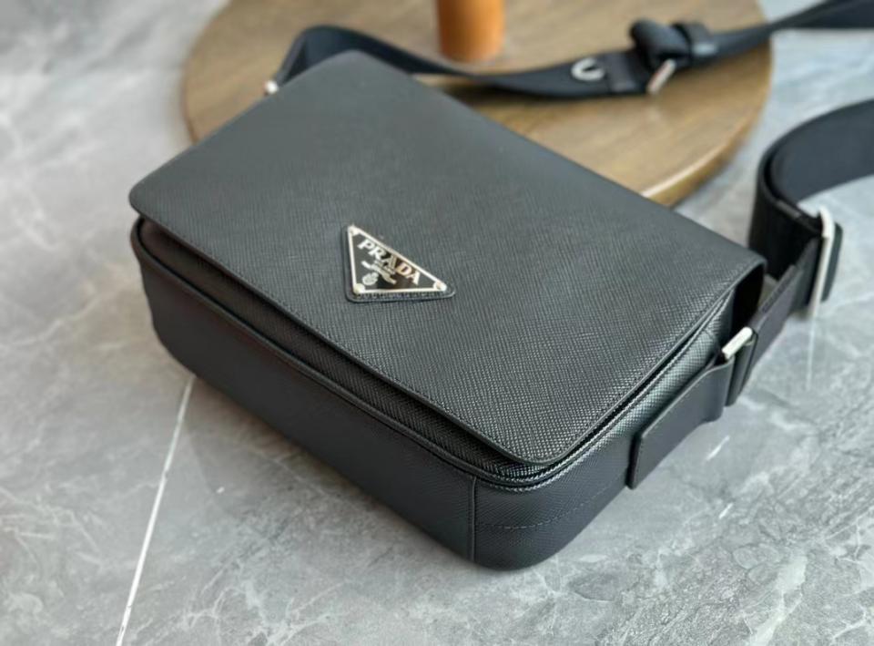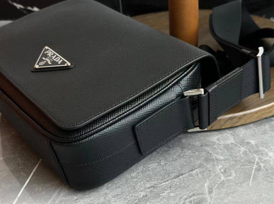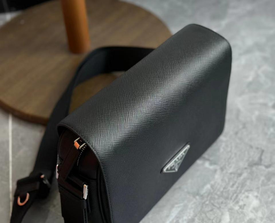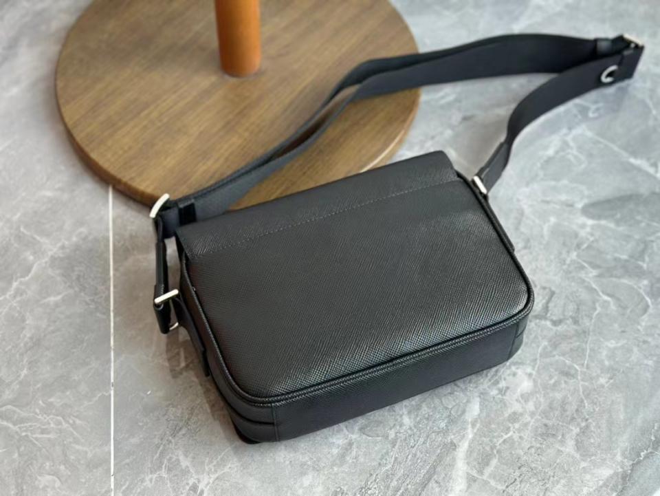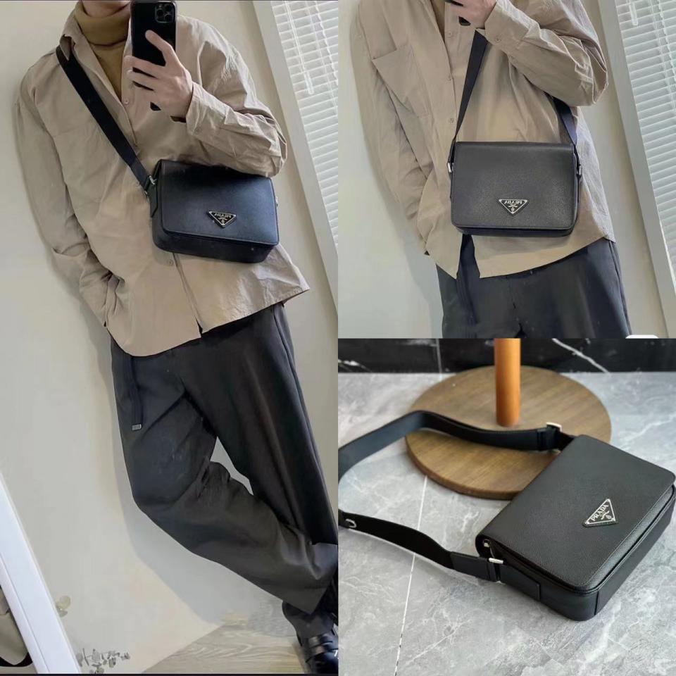 2023早秋經典款 渠道貨 P家男士翻蓋斜跨包 十字紋牛皮