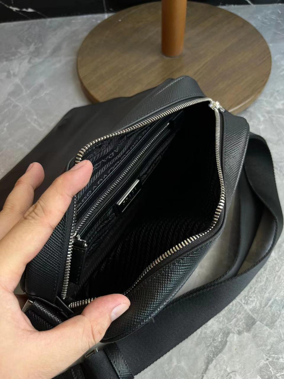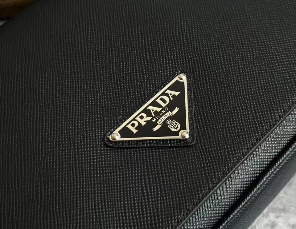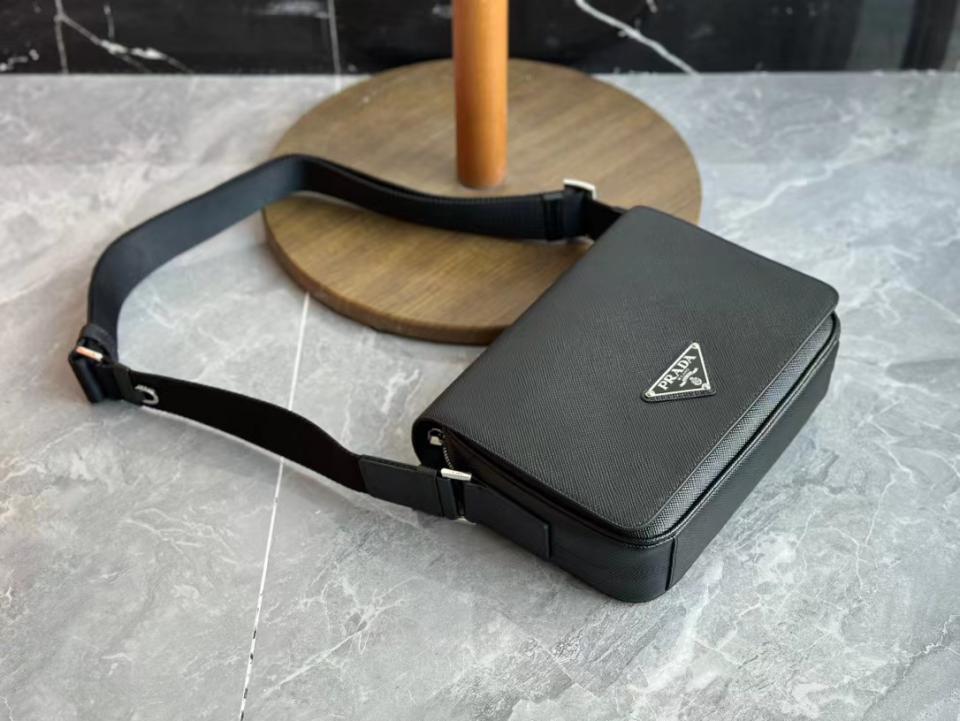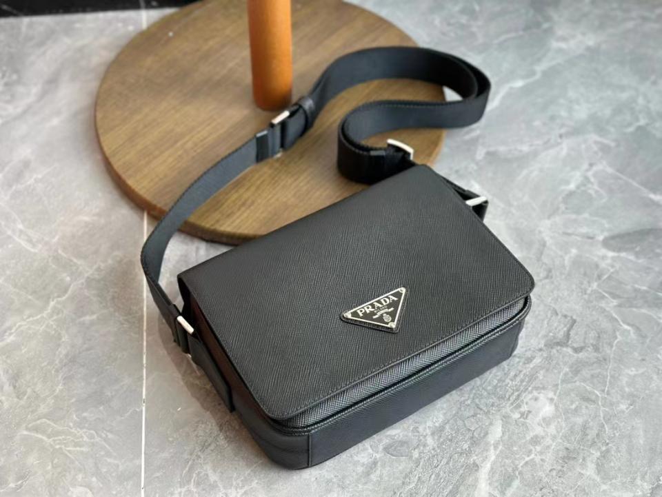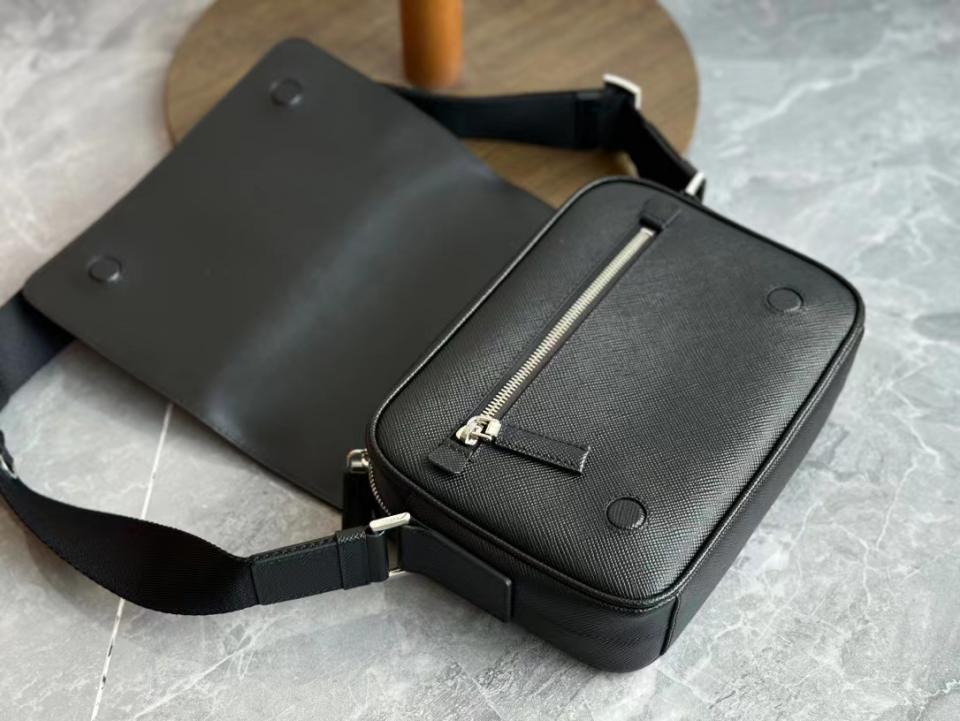 2023早秋經典款 渠道貨 P家男士翻蓋斜跨包 十字紋牛皮