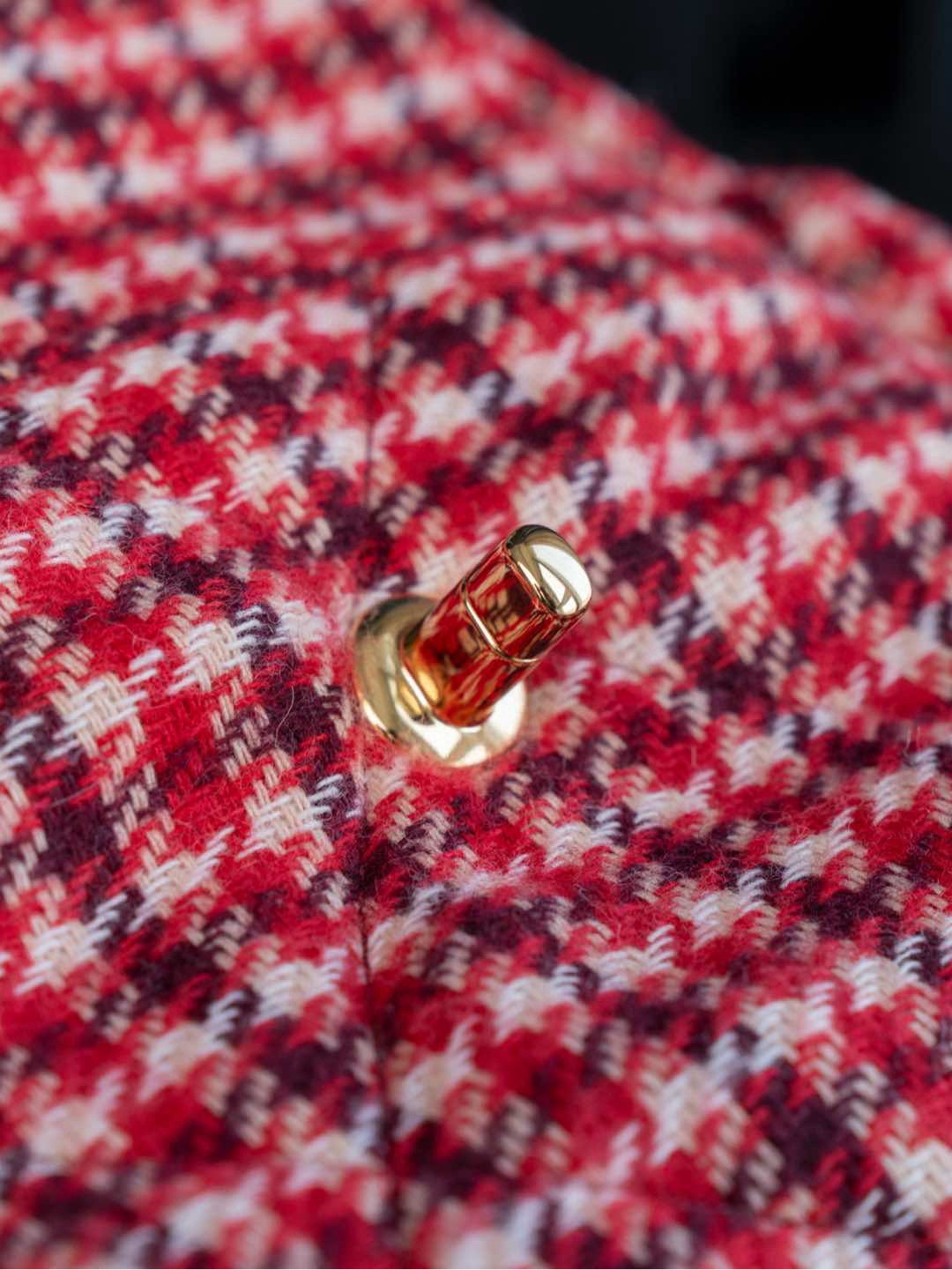 • 色彩與圖案:紅色千鳥格紋鮮明亮眼,帶來冬日的溫暖感受,同時不失時尚品味。