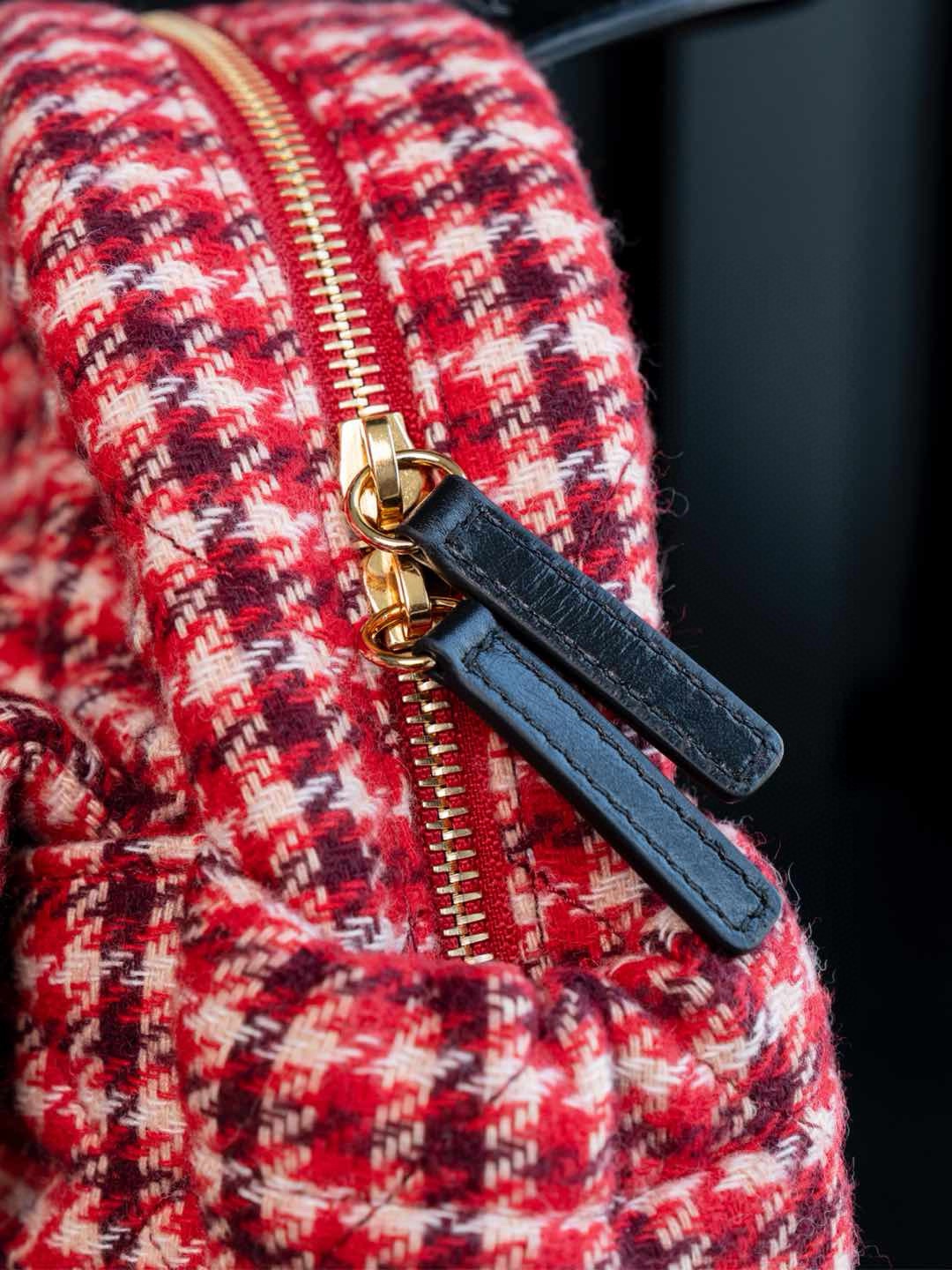 這款來自 Coco Neige 系列的紅格紋雙肩包,為迎接滑雪季專門設計,以紅色千鳥格圖案帶來亮眼且溫暖的冬季氛圍。