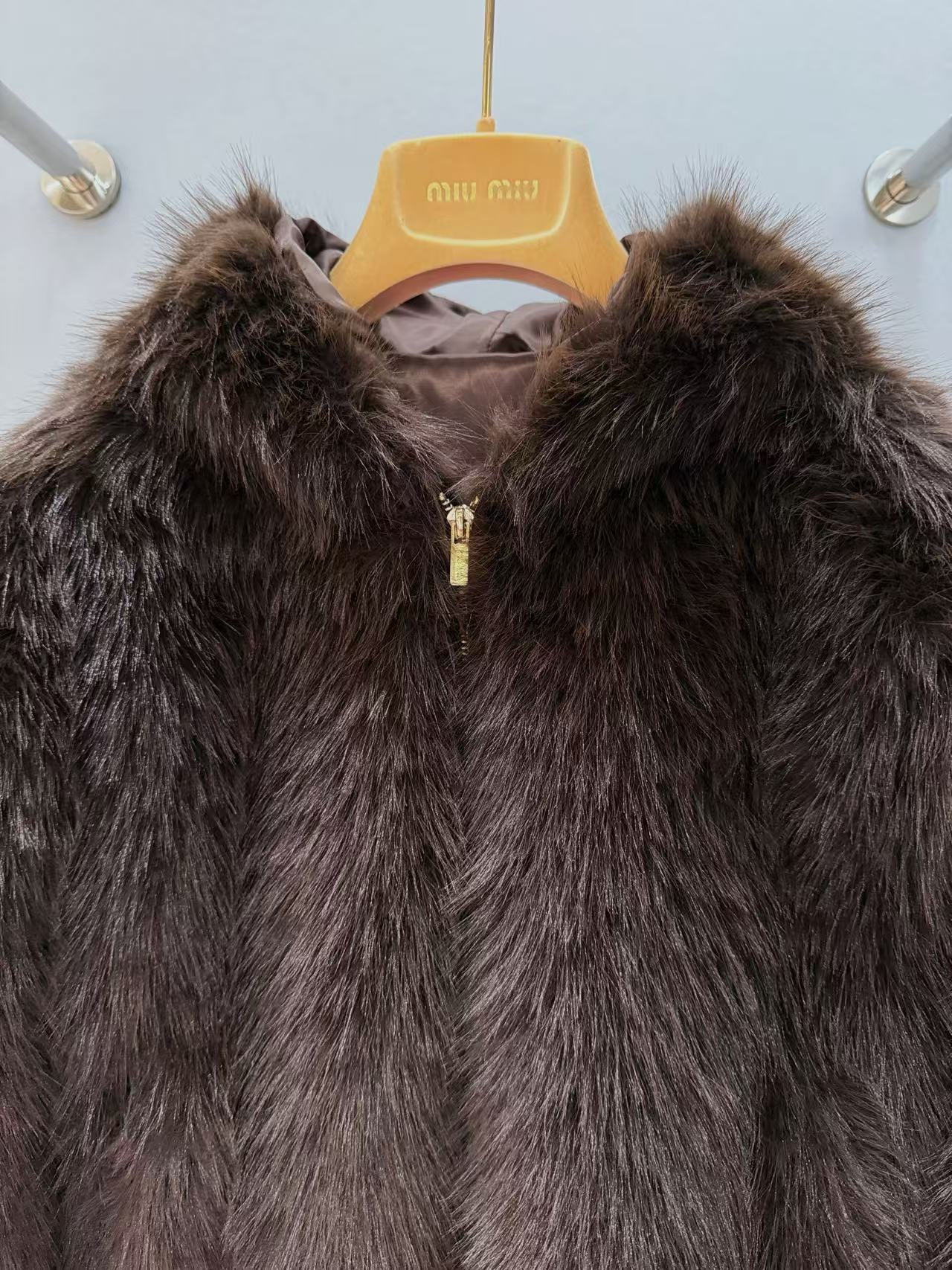 超級濃密又蓬鬆的焦糖棕色毛毛,連帽子、門襟、袖口全部都是毛茸茸設計,