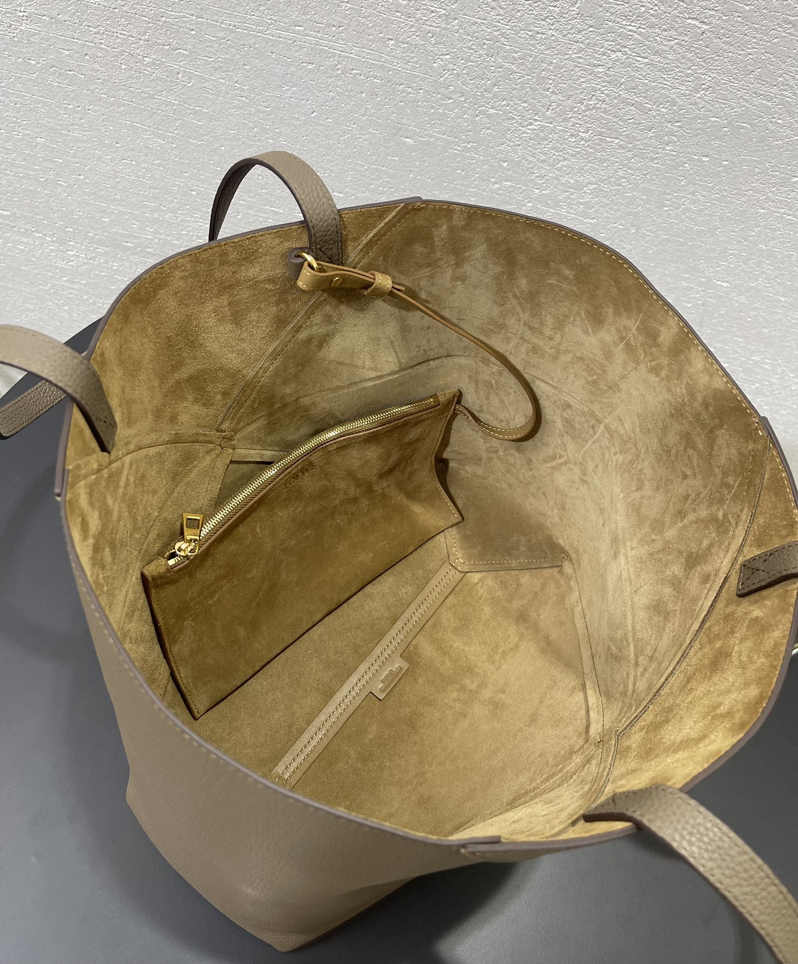 相較一般光滑皮革,更不容易留下刮痕,日常使用也更好打理。內裡搭配麂皮材質,提升整體細膩度與高級感。