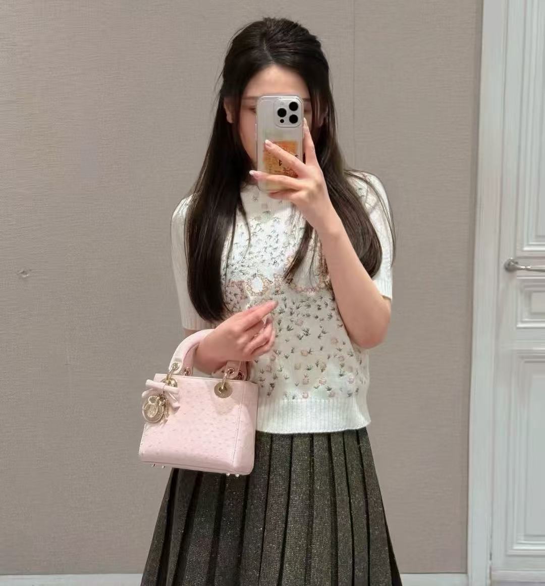 純淨的米白基底,不僅顯白,更能中和彩色刺繡的繁複感,讓整體穿搭顯得豐富卻不凌亂,散發出優雅的法式溫柔。