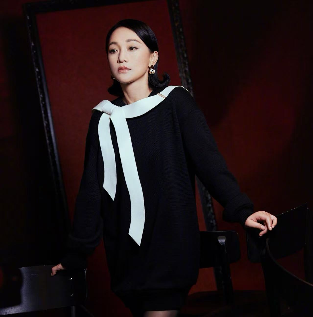 胸前那條白色緞帶蝴蝶結帶點硬度,可以隨意調整造型,隨手一綁就是雜誌感
