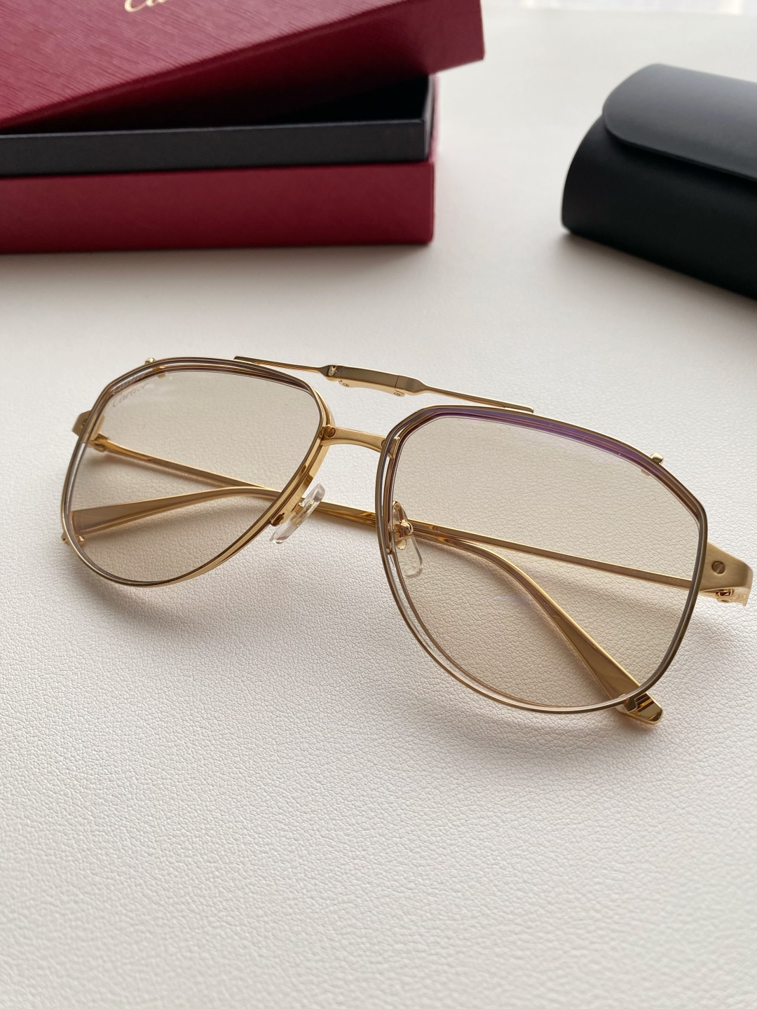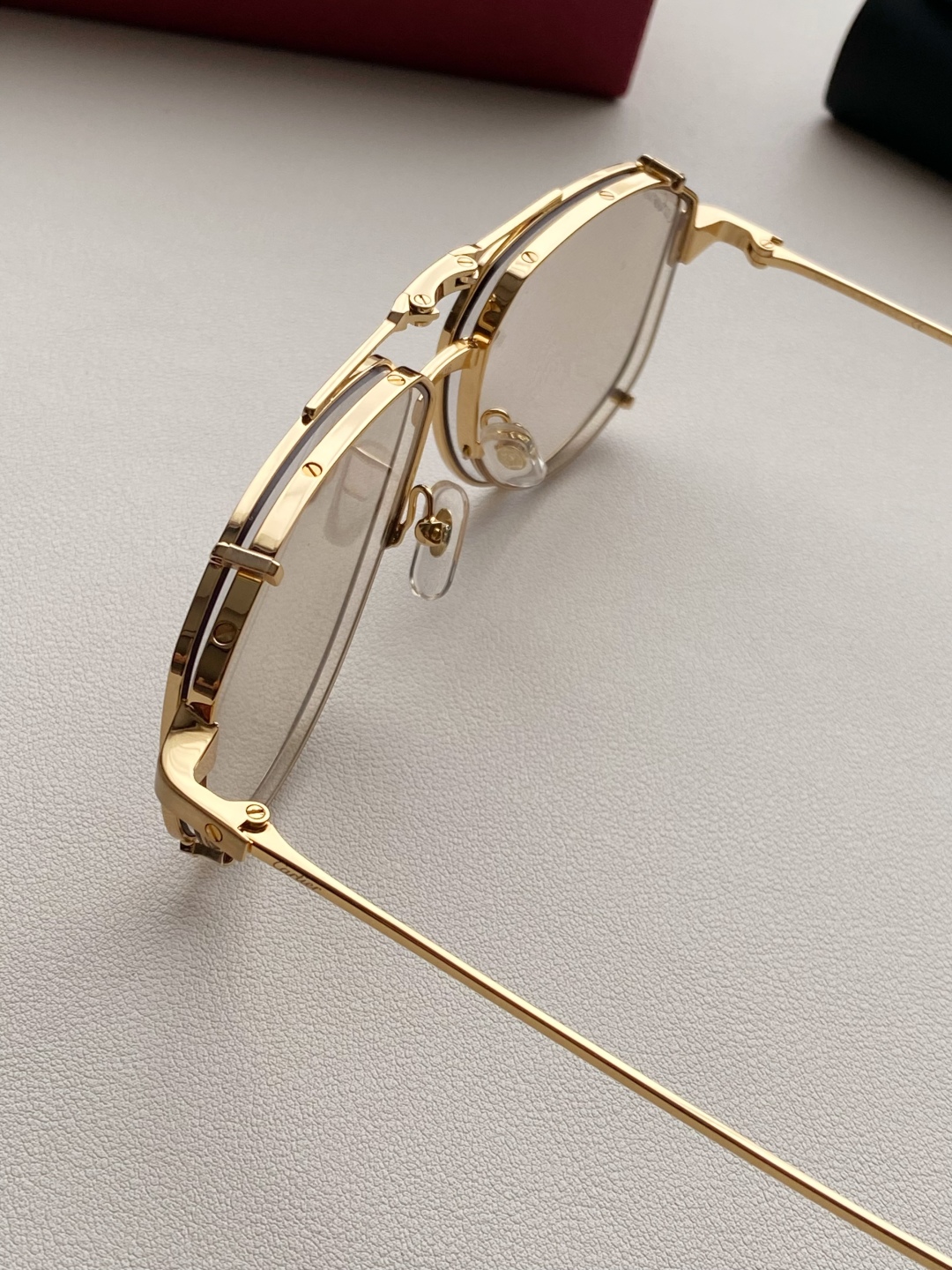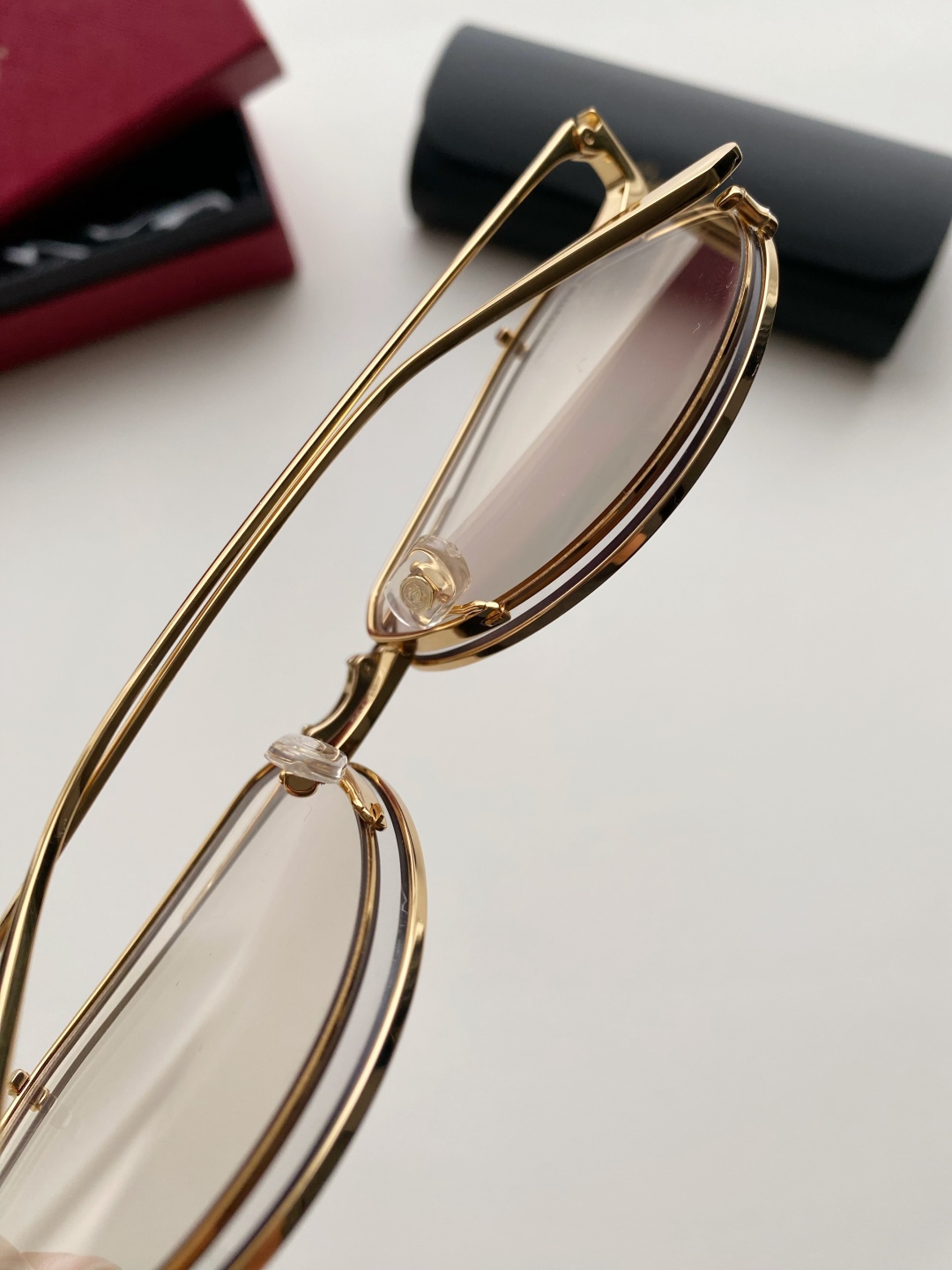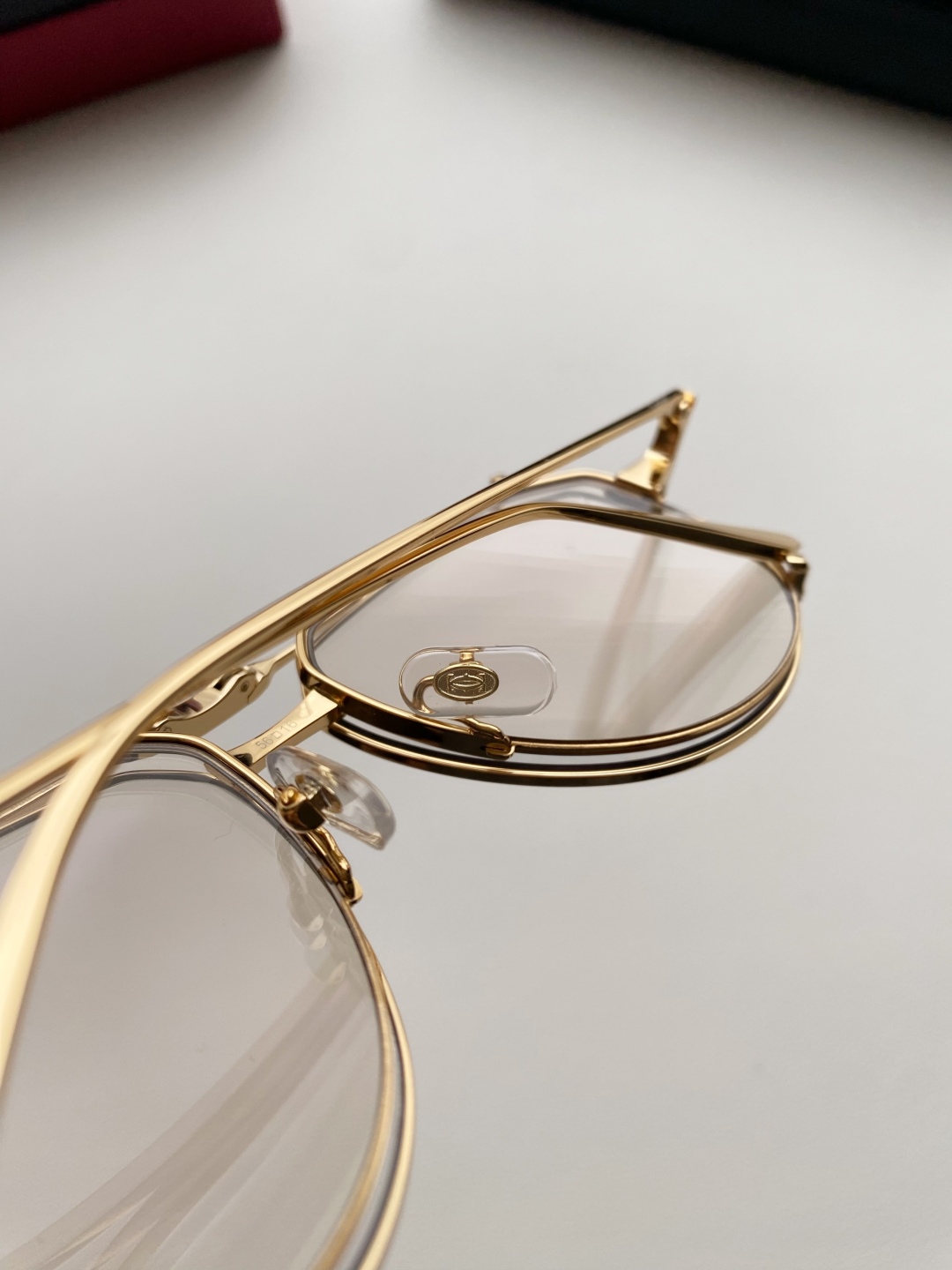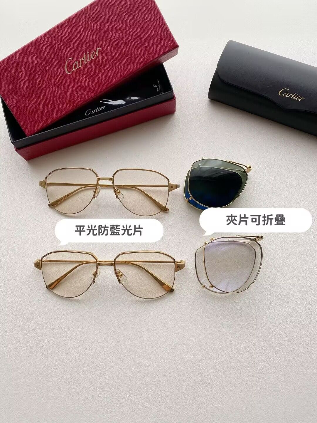 鏡框:採用高強度鍍金金屬框,質感細膩、抗氧化且輕盈耐用,配戴穩定不壓鼻樑。