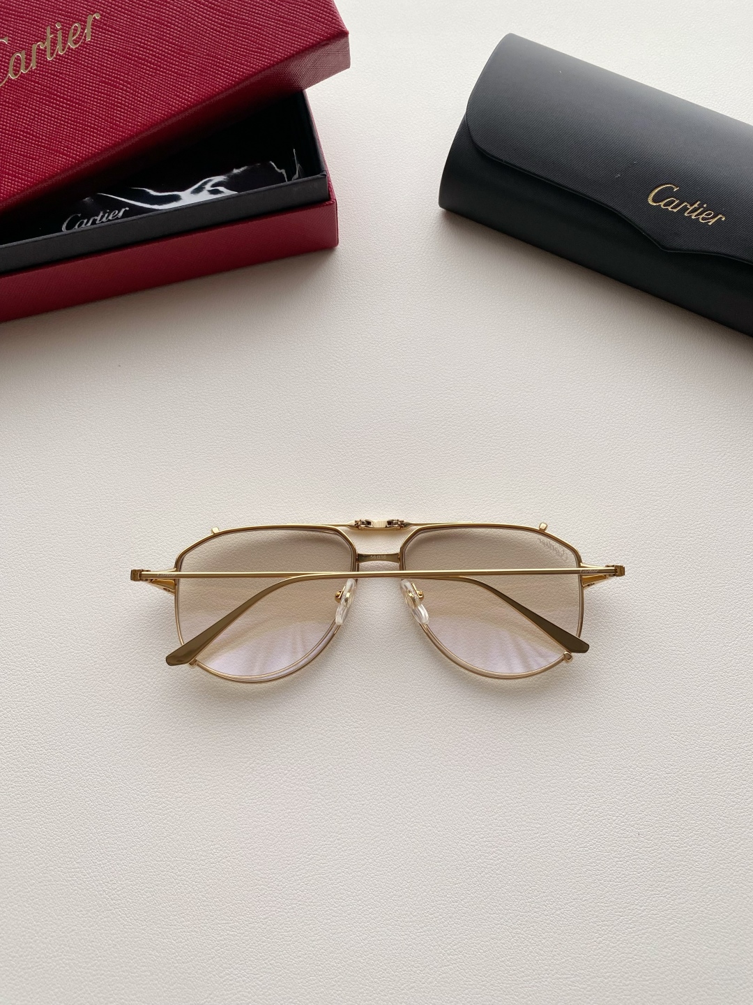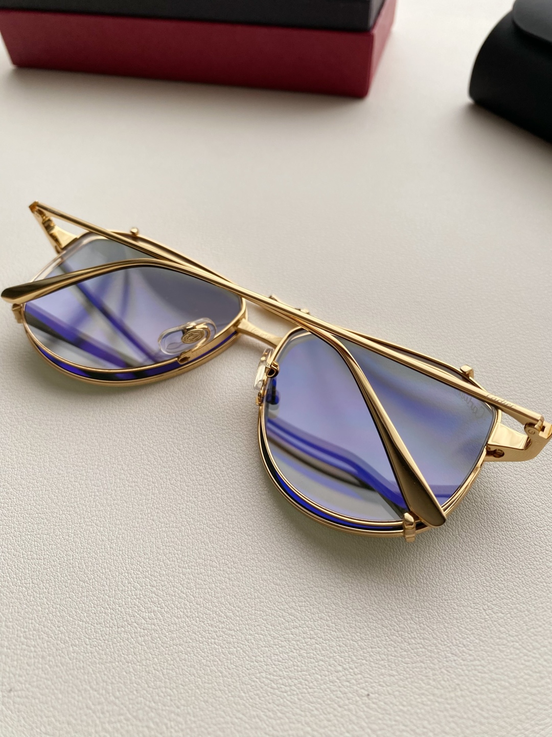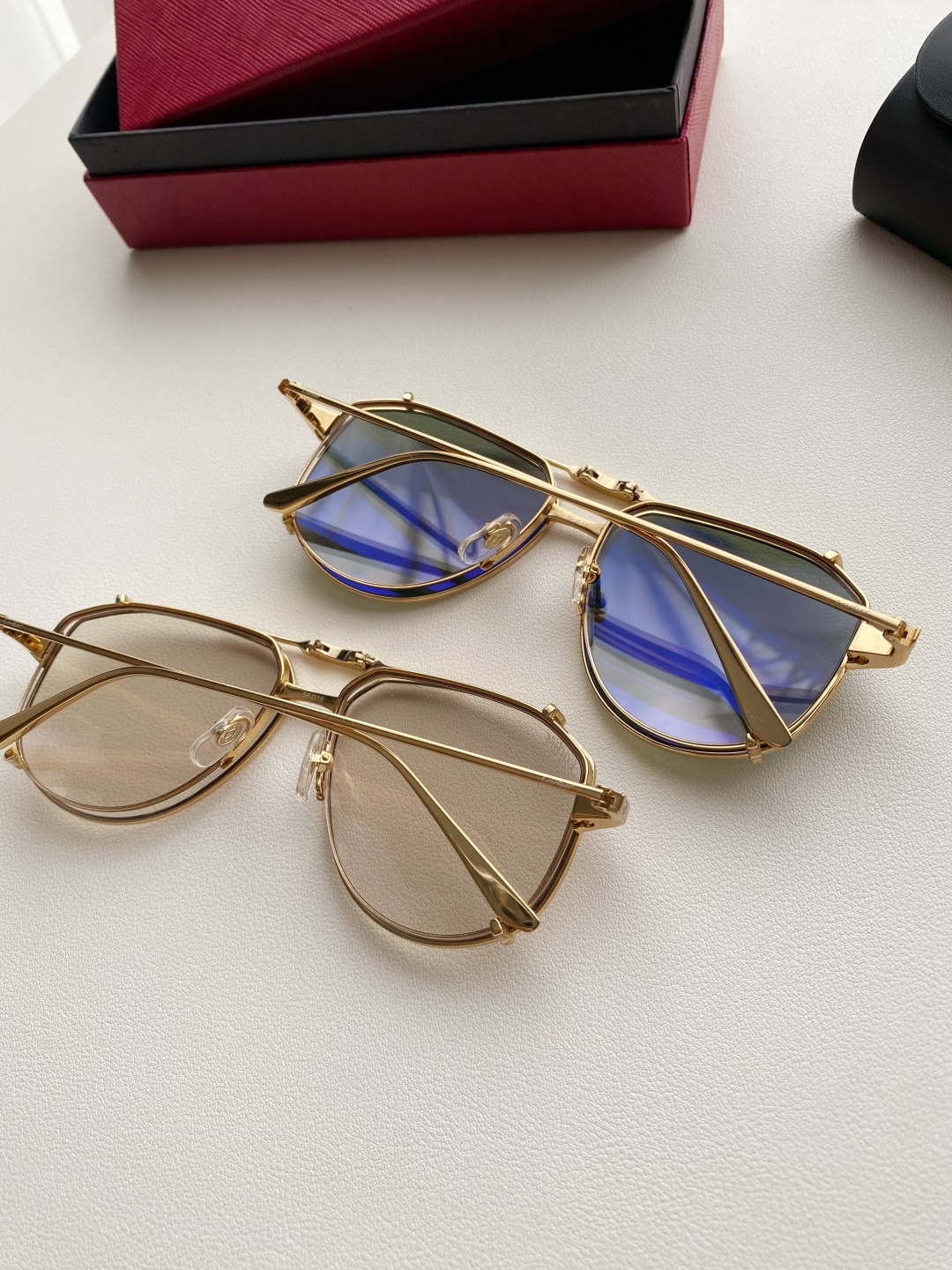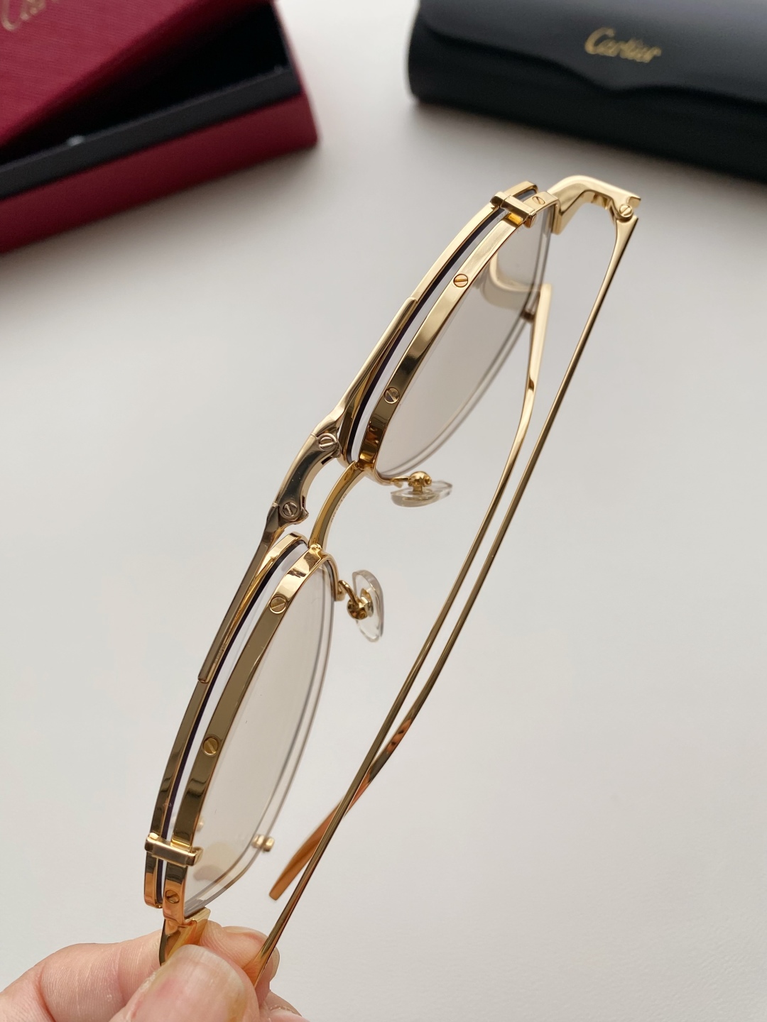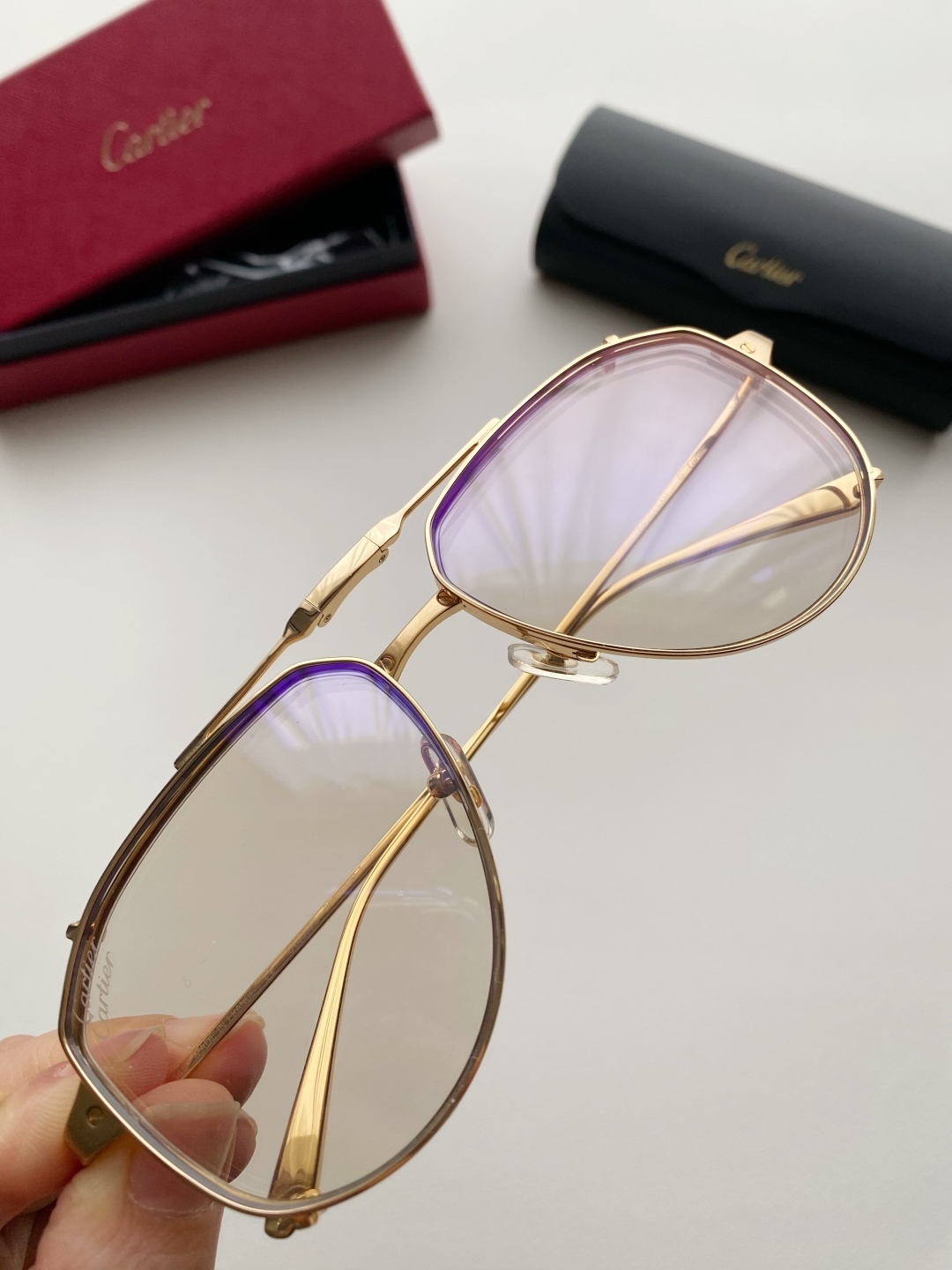 鏡框:採用高強度鍍金金屬框,質感細膩、抗氧化且輕盈耐用,配戴穩定不壓鼻樑。