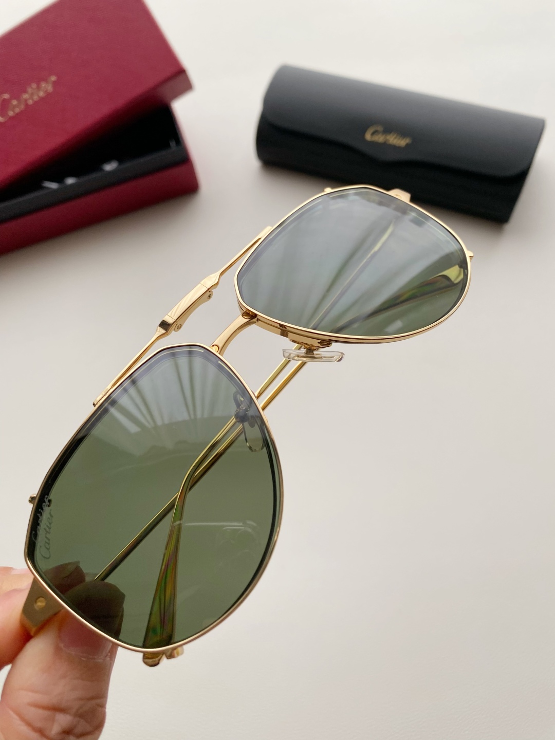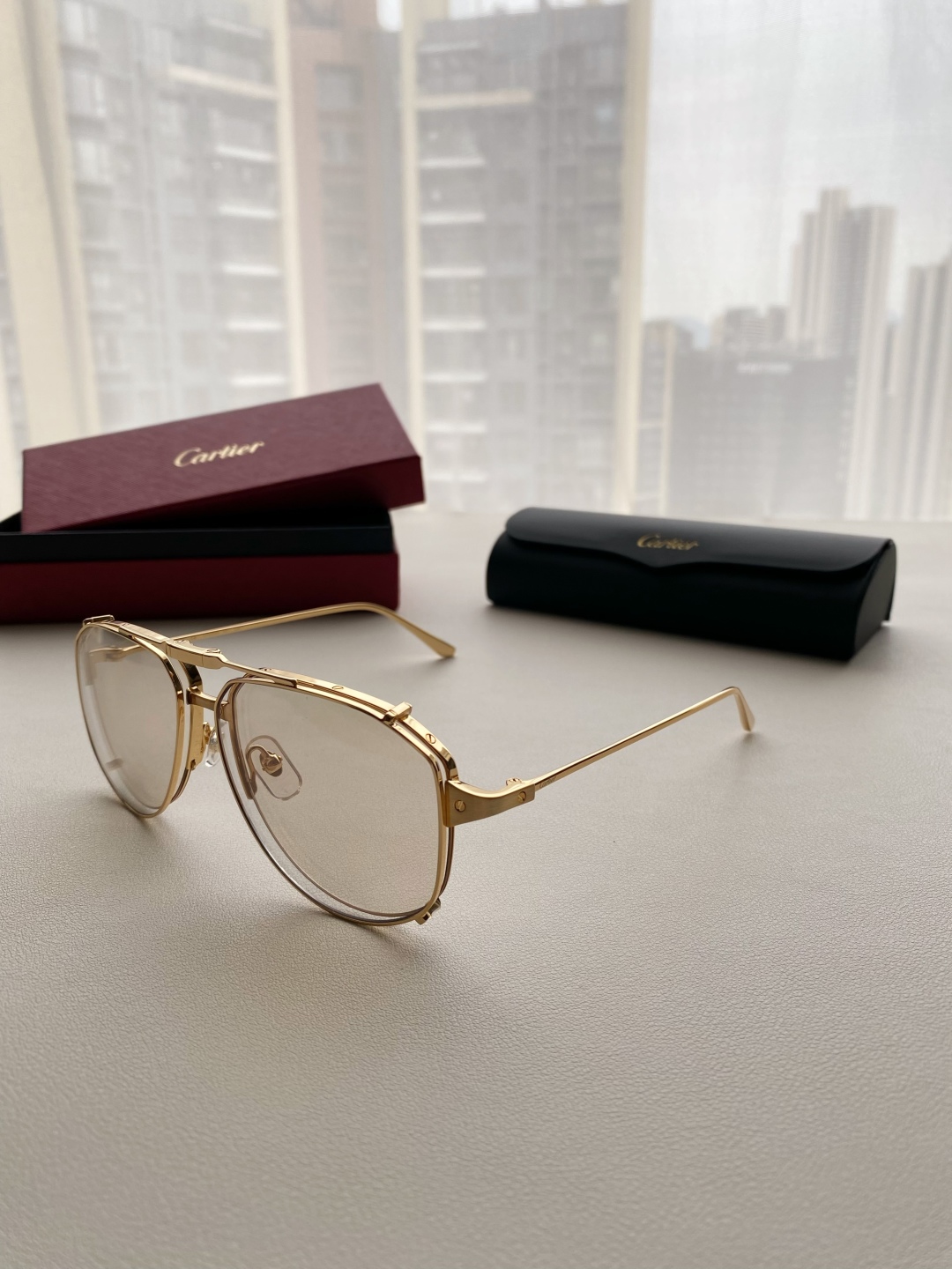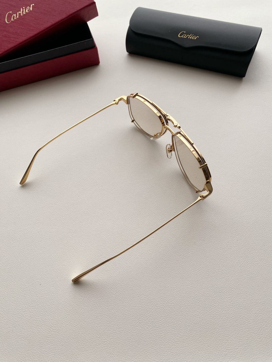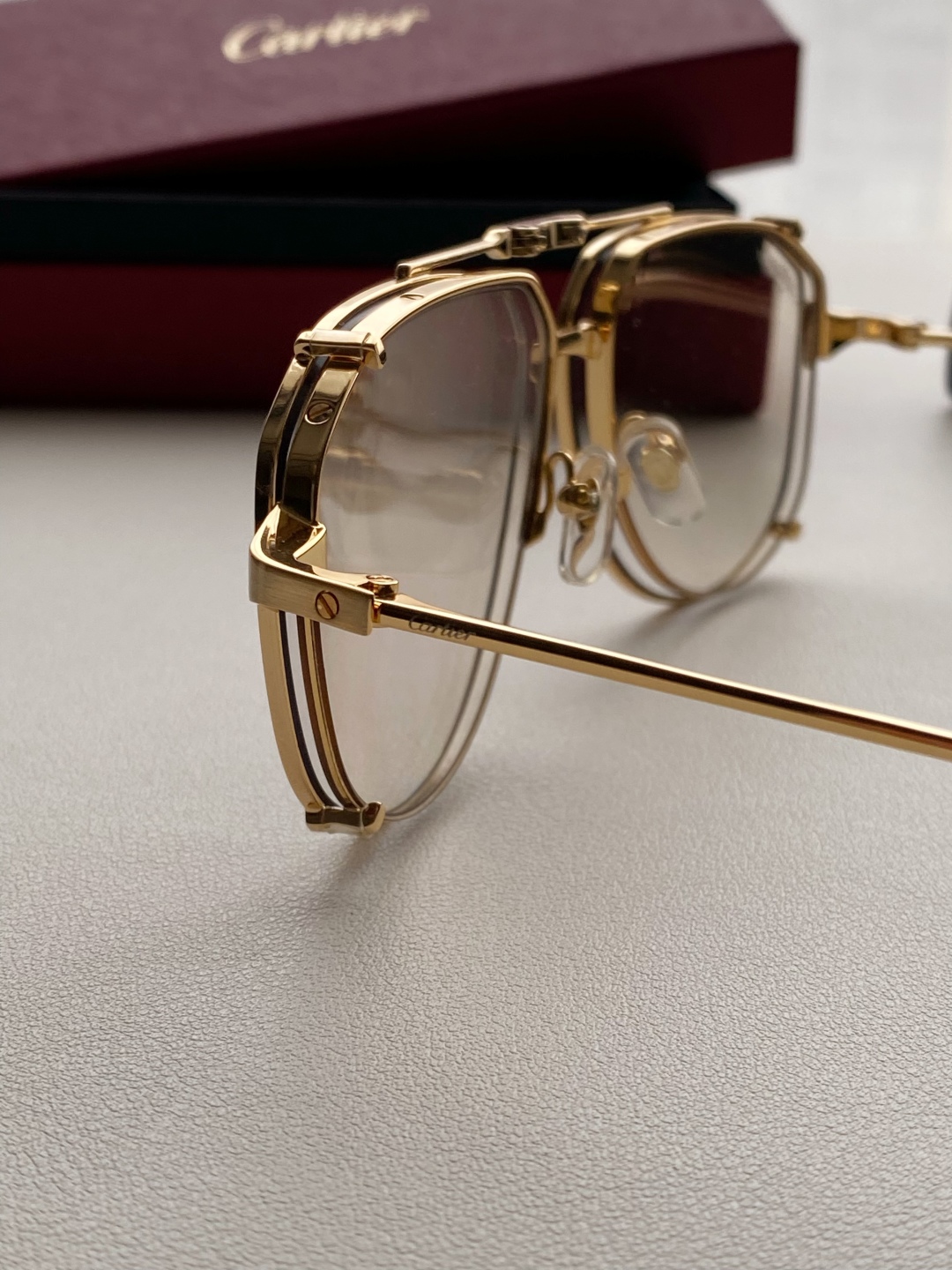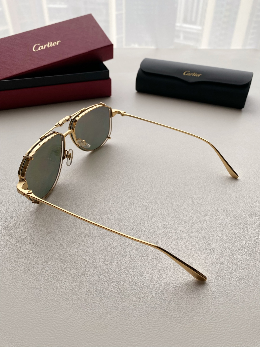 鏡框:採用高強度鍍金金屬框,質感細膩、抗氧化且輕盈耐用,配戴穩定不壓鼻樑。