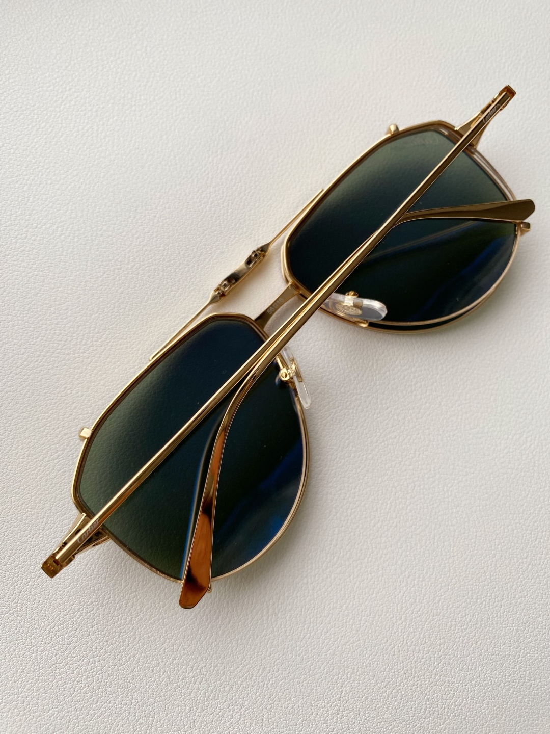 採用飛行員造型搭配金屬質感框架,整體線條簡潔俐落,沒有過多裝飾,單靠流線幾何輪廓與金色鏡框,就足以讓人一眼認出。