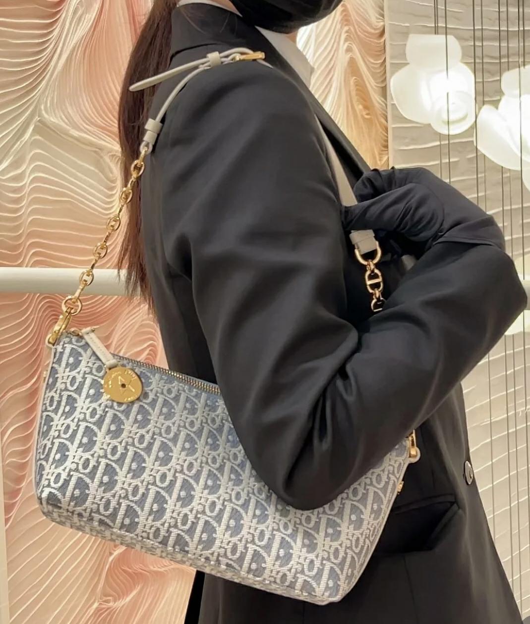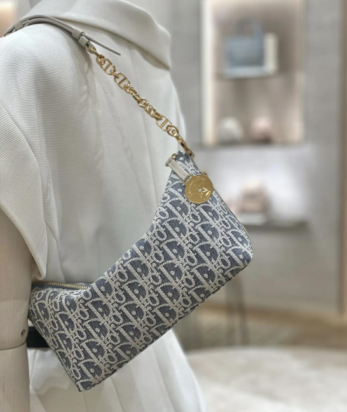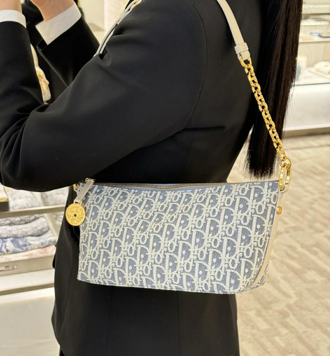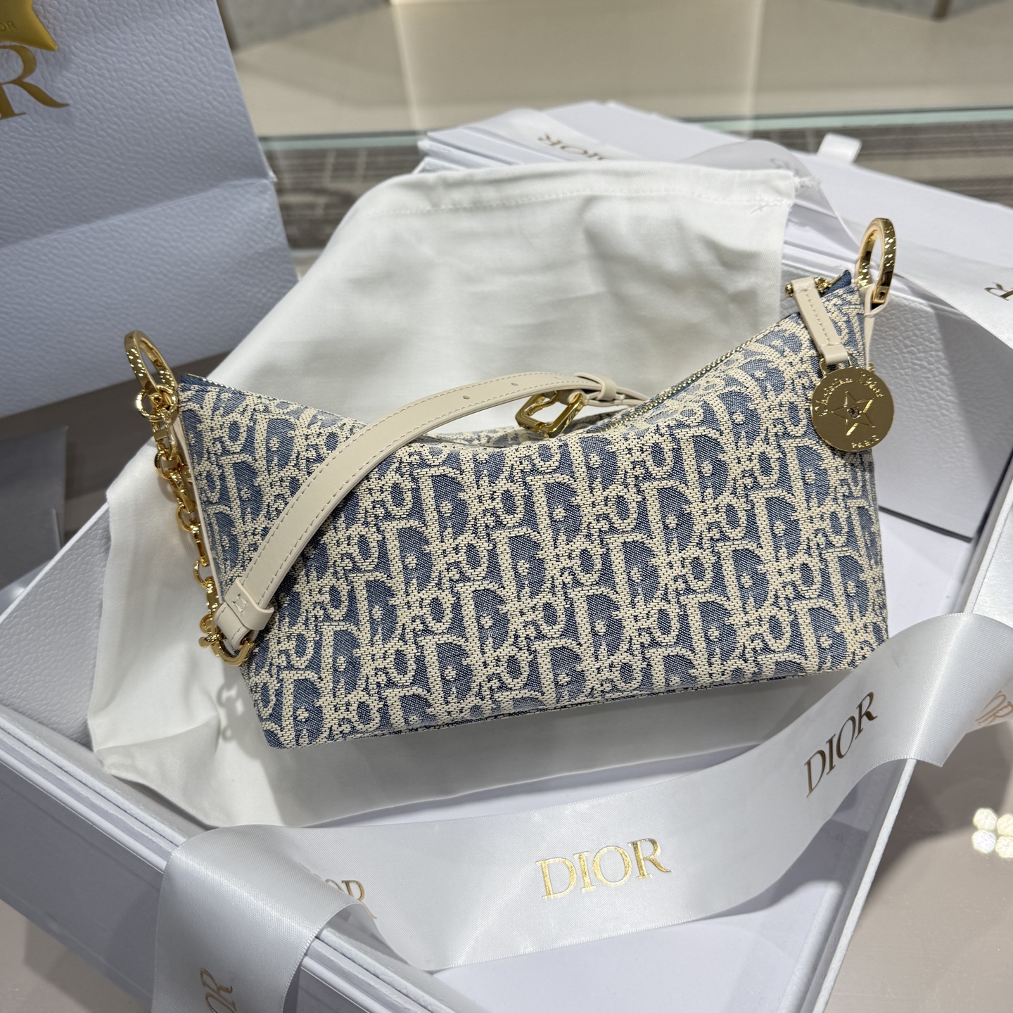 2025早春新品 D家 𝑯𝒐𝒃𝒐幸運星腋下包|藍白酒椰草格紋・香草系列