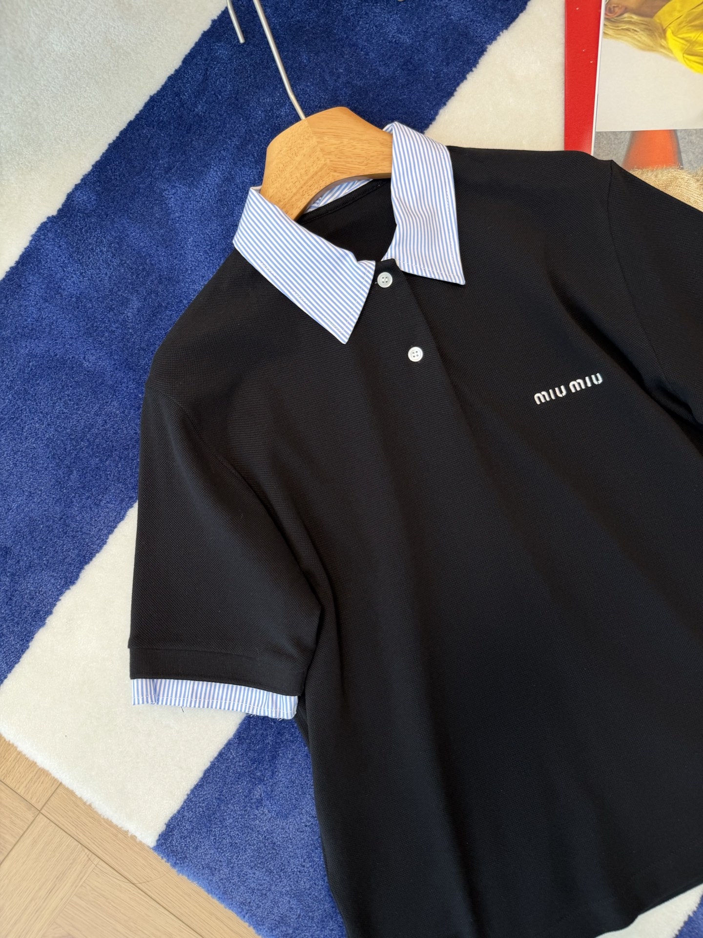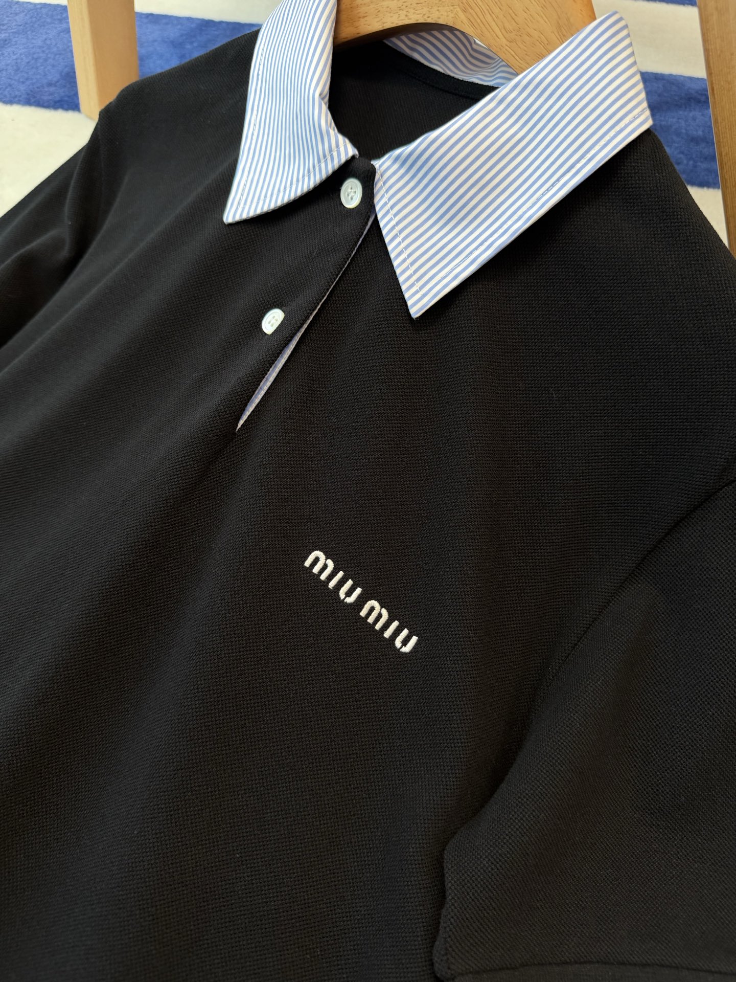 2026春夏新品 Miu家 拼接條紋翻領Polo衫