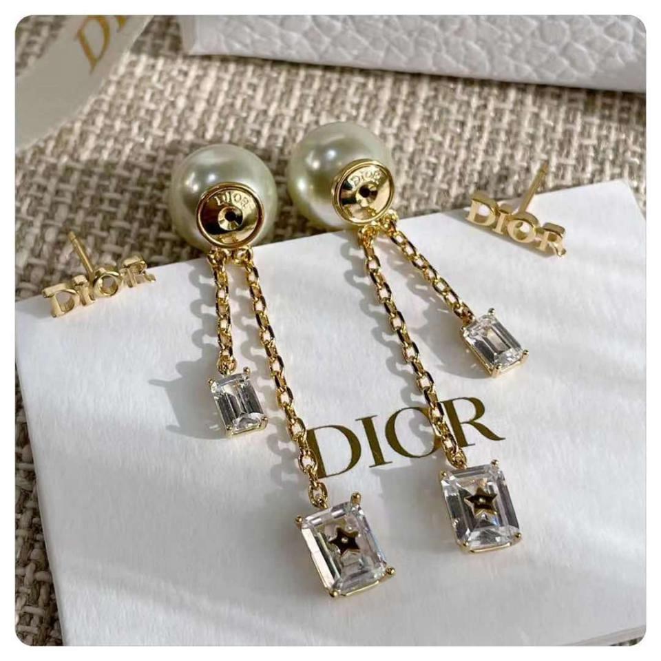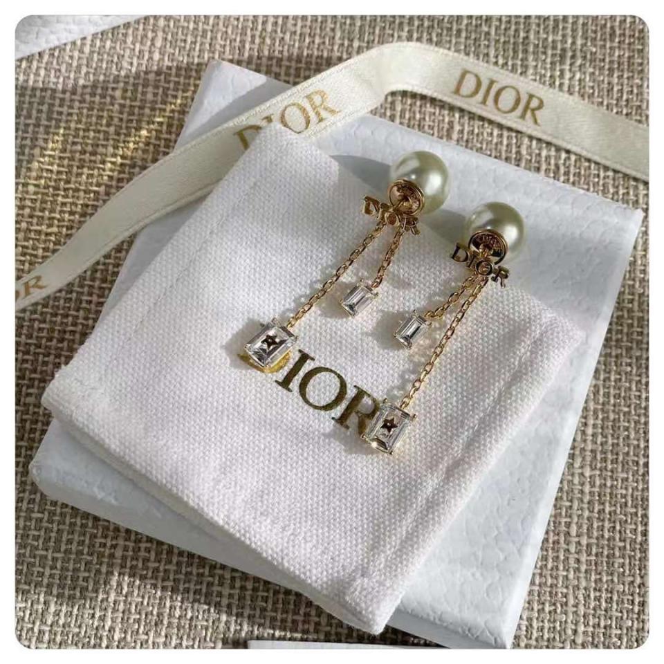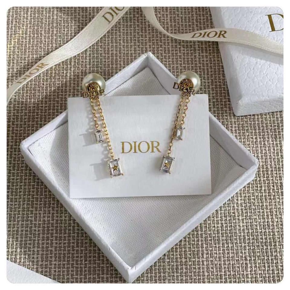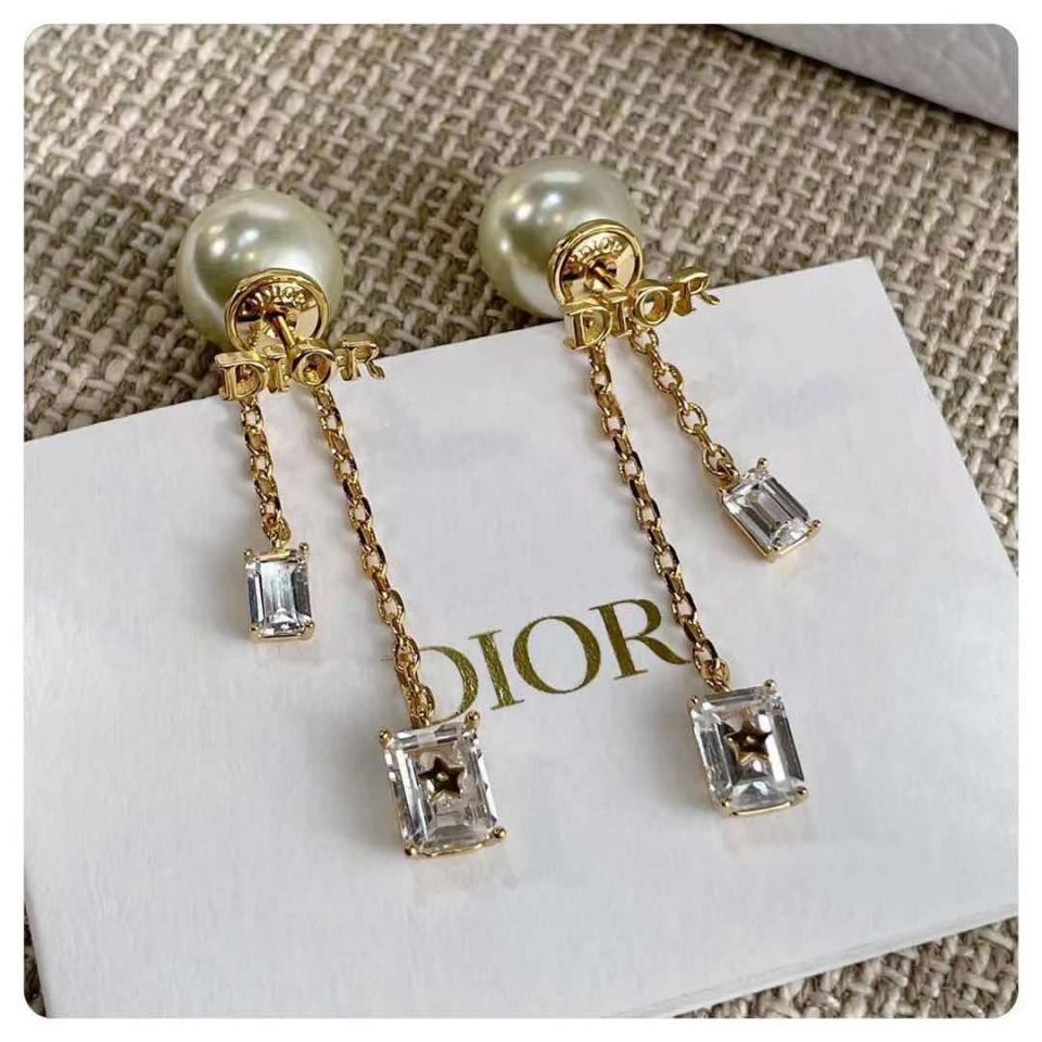 2021早秋 D家字母方形小水晶珍珠耳環