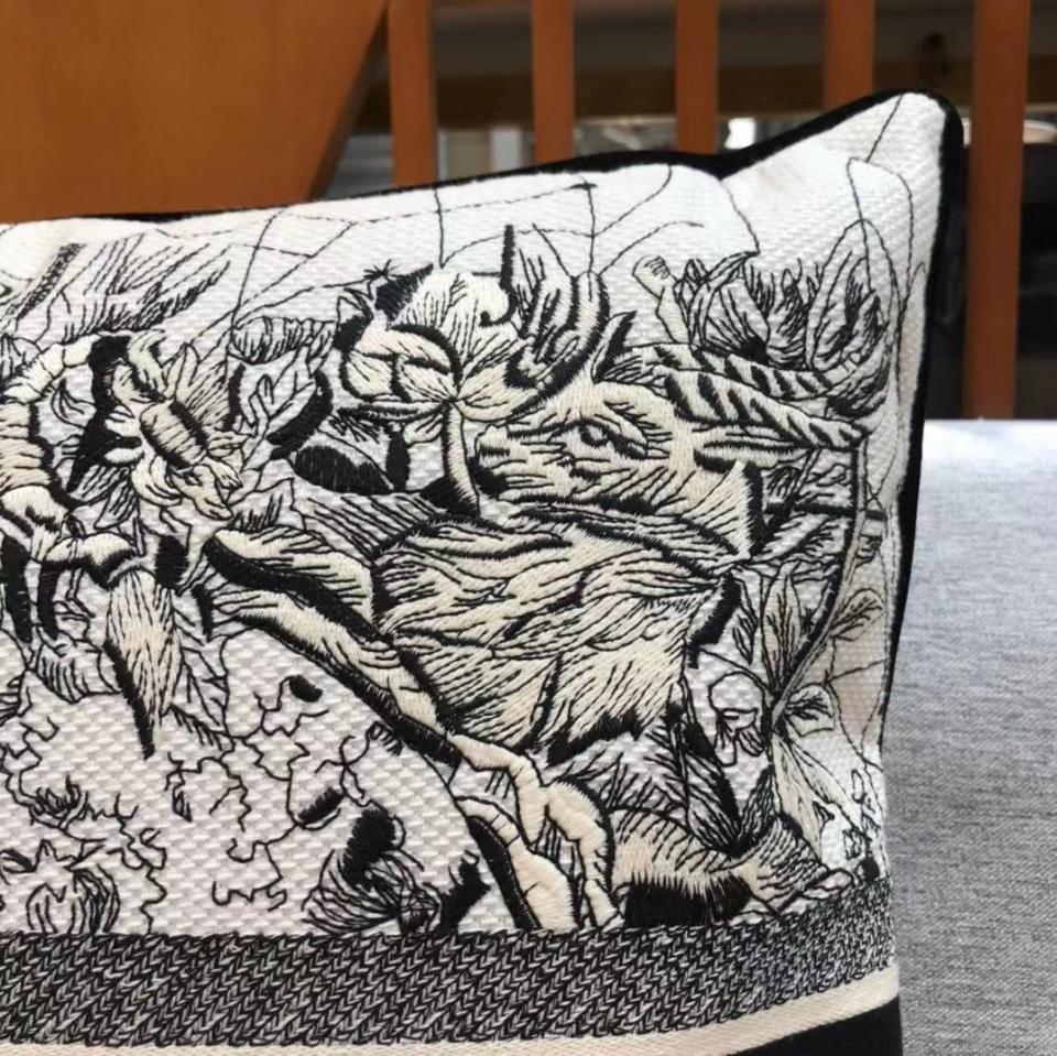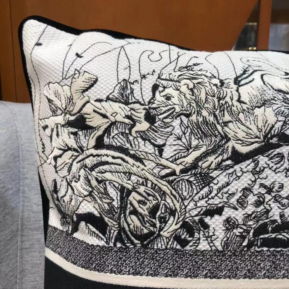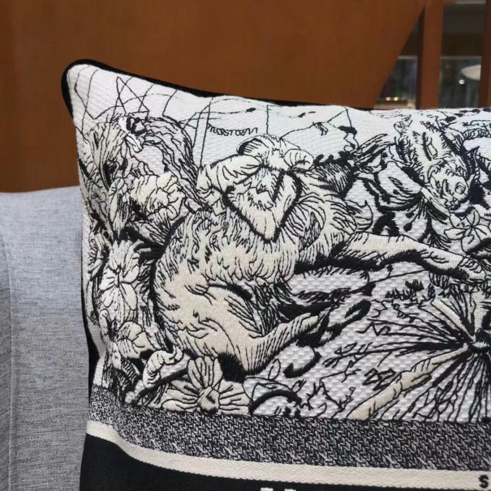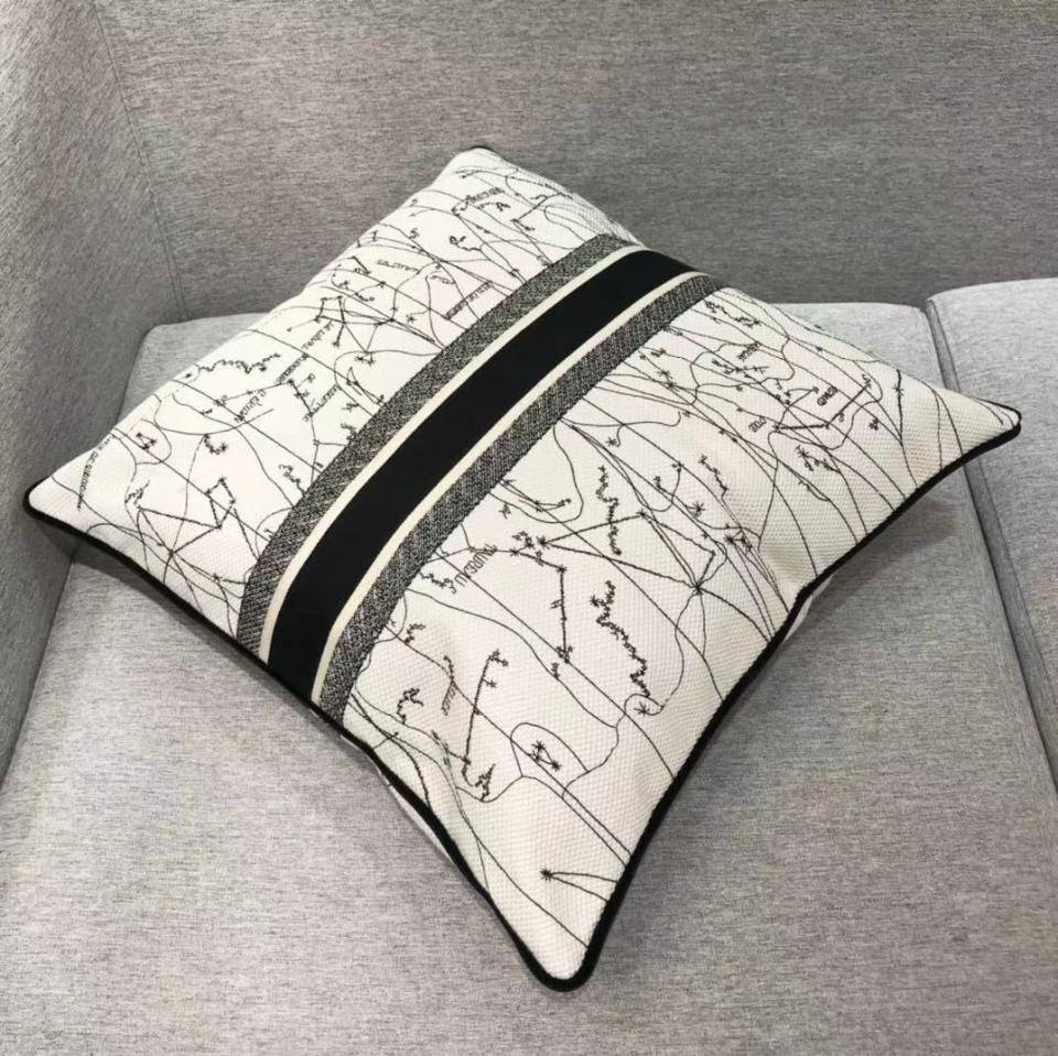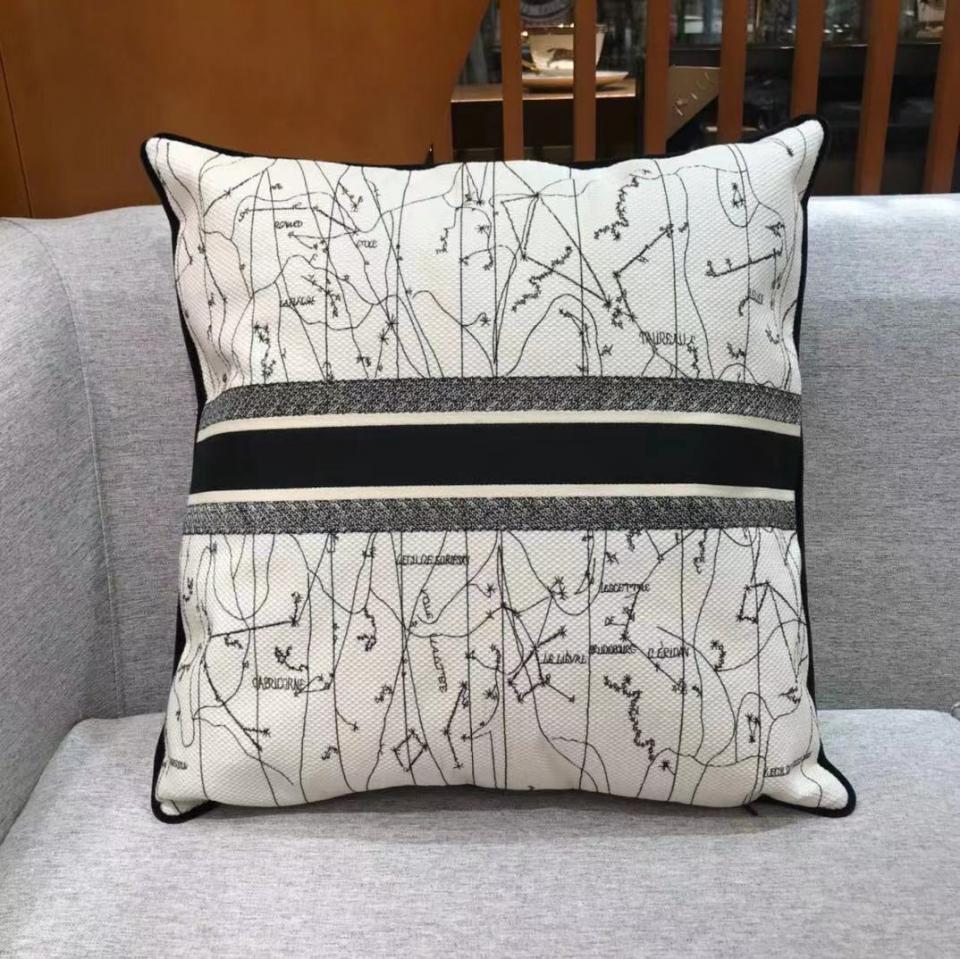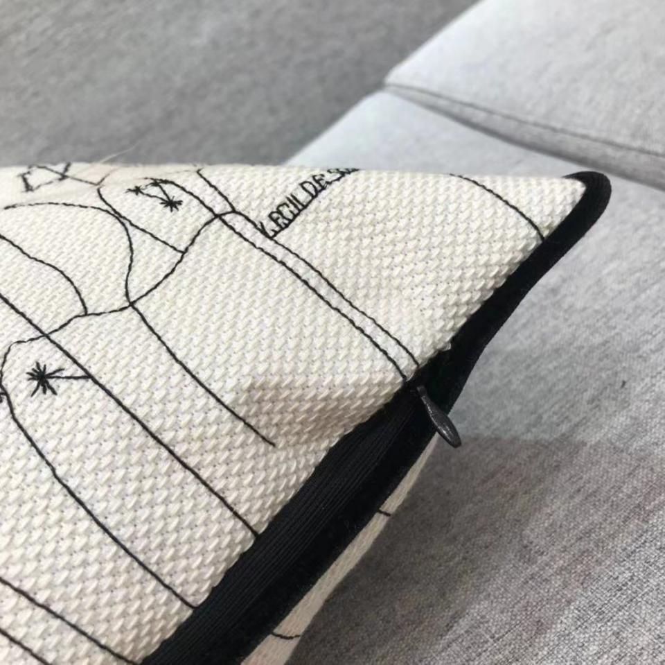 星座系列以魅力黑色和白色圖案演繹,由瑪利亞·嘉茜婭·蔻麗與意大利藝術家彼得羅·魯福打造。這款靠墊飾有精美刺繡。