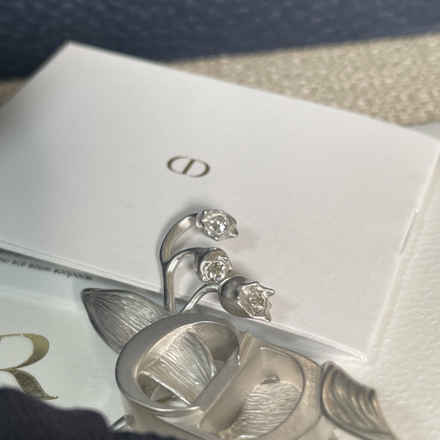 霧面磨砂的哑光金屬質地,溫潤內斂,不會過於浮誇,但又藏著無比細膩的設計語彙。立體花瓣栩栩如生,每一朵鈴蘭花蕊上還鑲嵌了施華洛世奇水鑽Silver Shadow,微光閃爍,不動聲色地提升整體質感與精緻度。