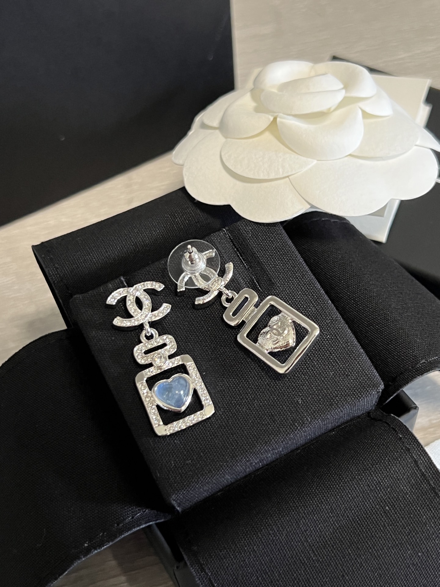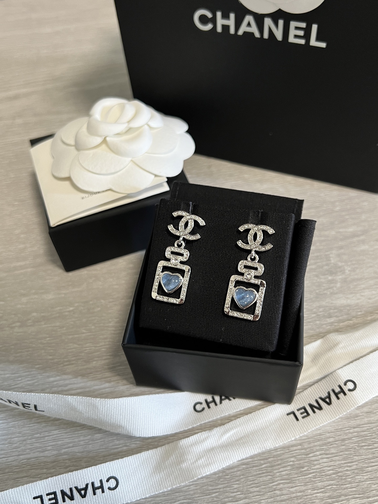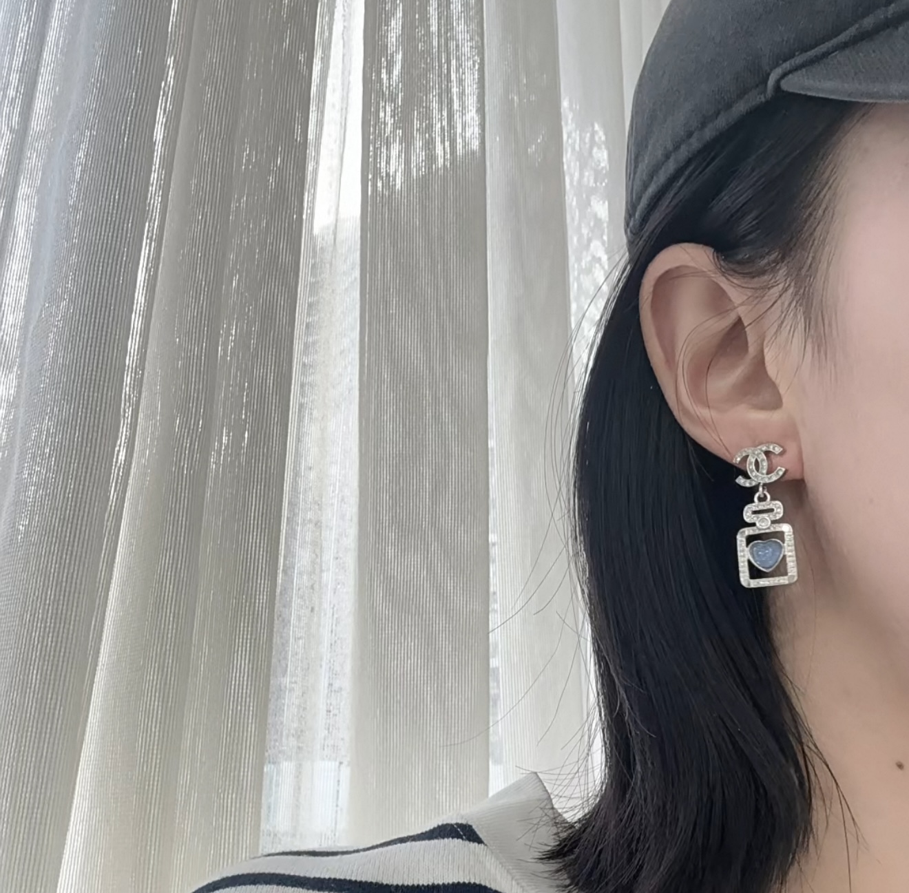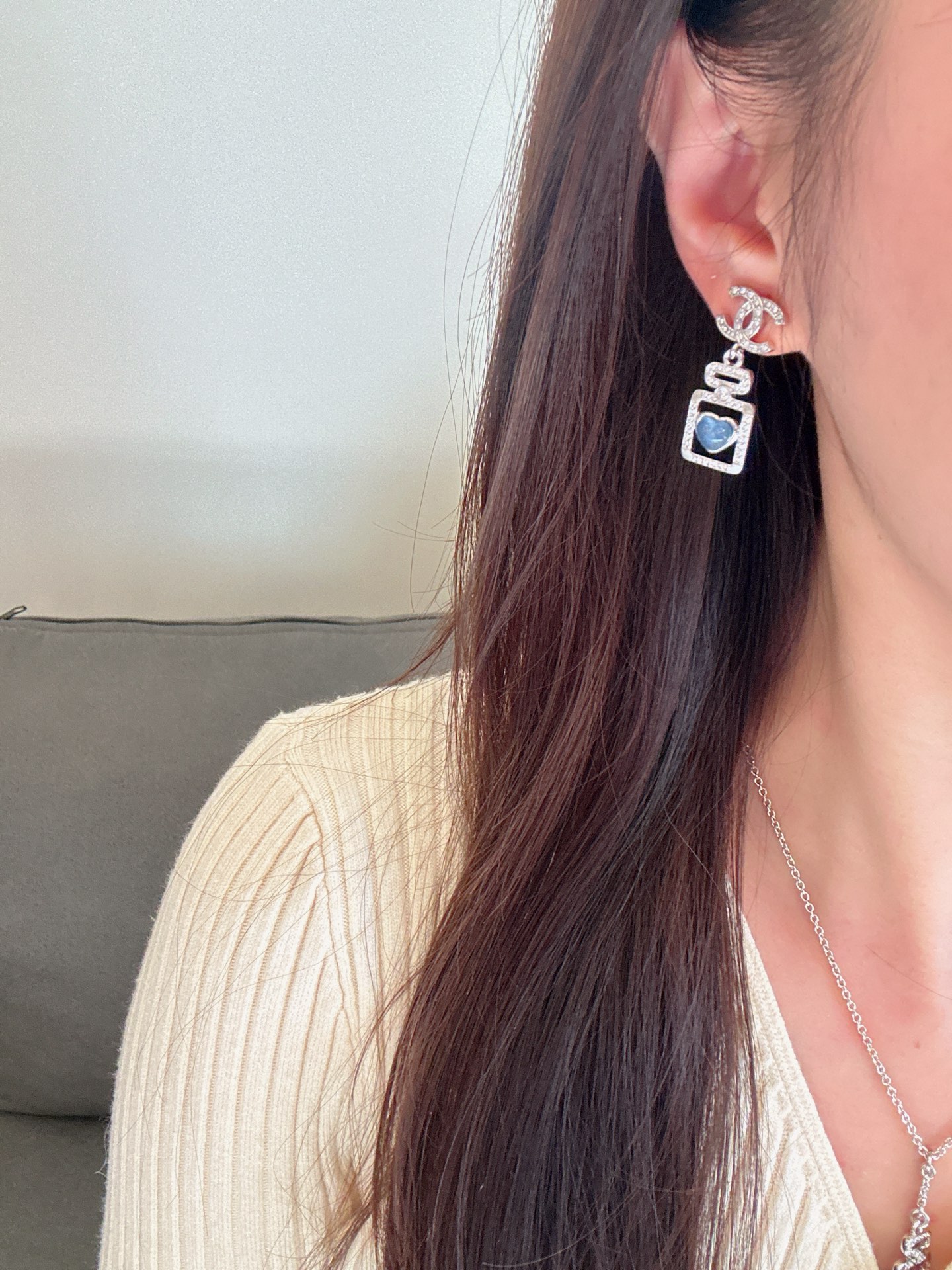 2025早春新品 C家 雙C吊藍心香水耳環,夏日清新感滿分