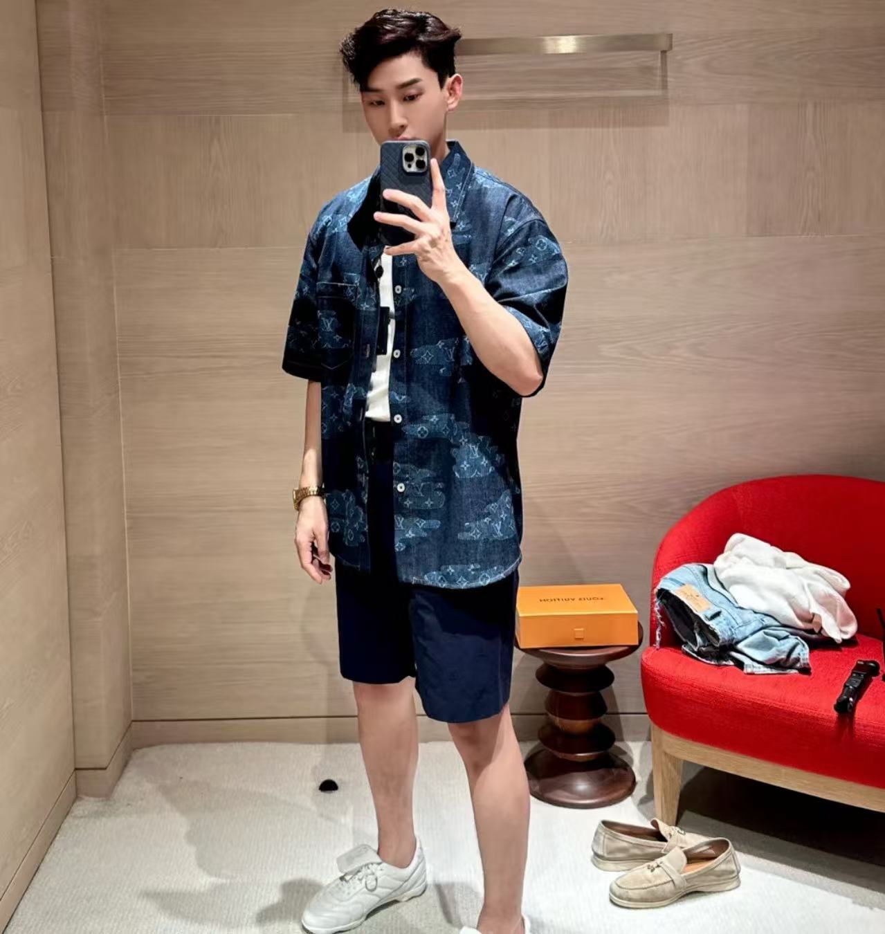 2025早秋新品 L家 X Nigo聯名系列雲朵牛仔短袖襯衫
