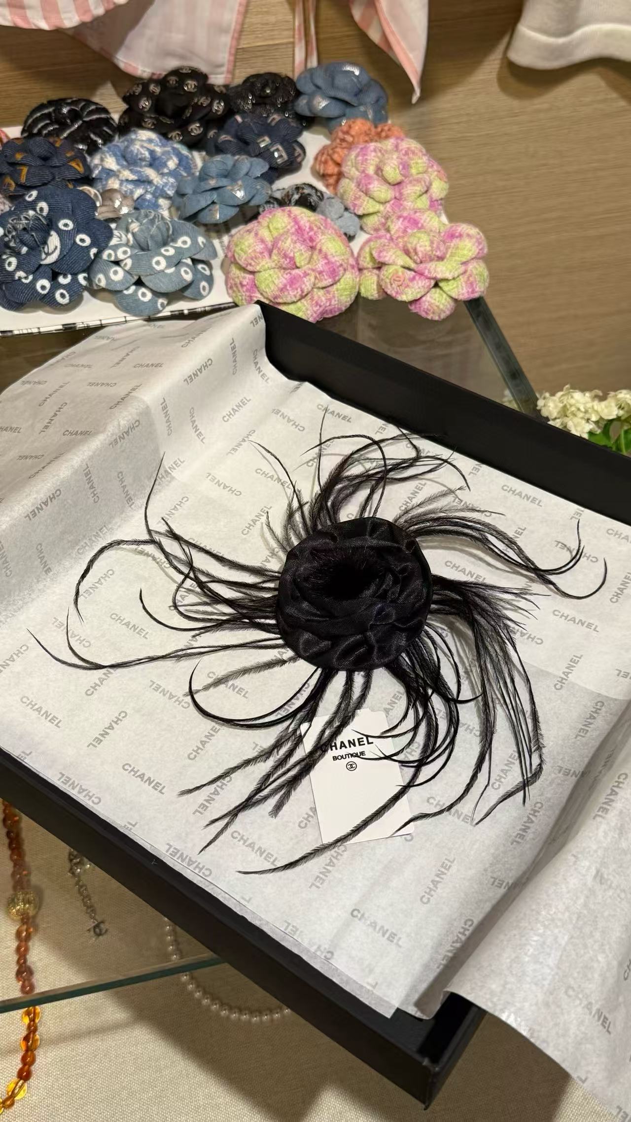 2025早秋 C家 羽毛缎面山茶花胸针