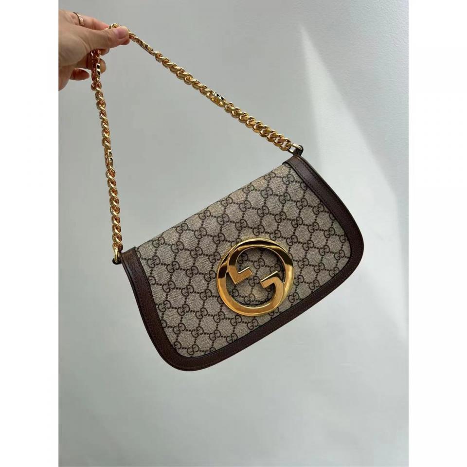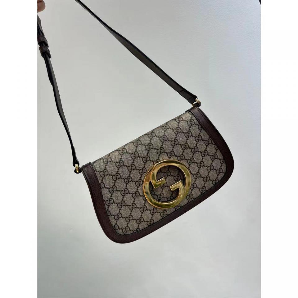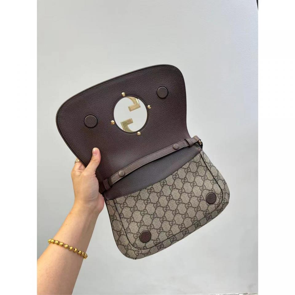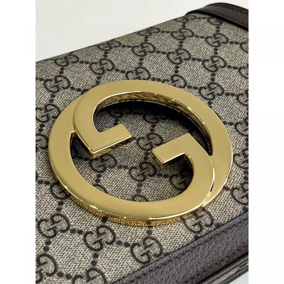 G家Blondie系列圓形互扣式雙G大logo雙肩帶腋下包(老花款)