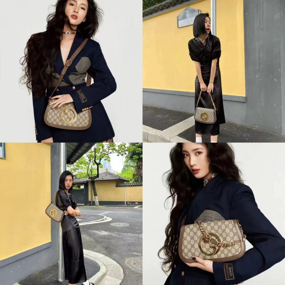 2022春夏新品 Blondie系列圓形互扣式雙G大logo雙肩帶腋下包(老花款)