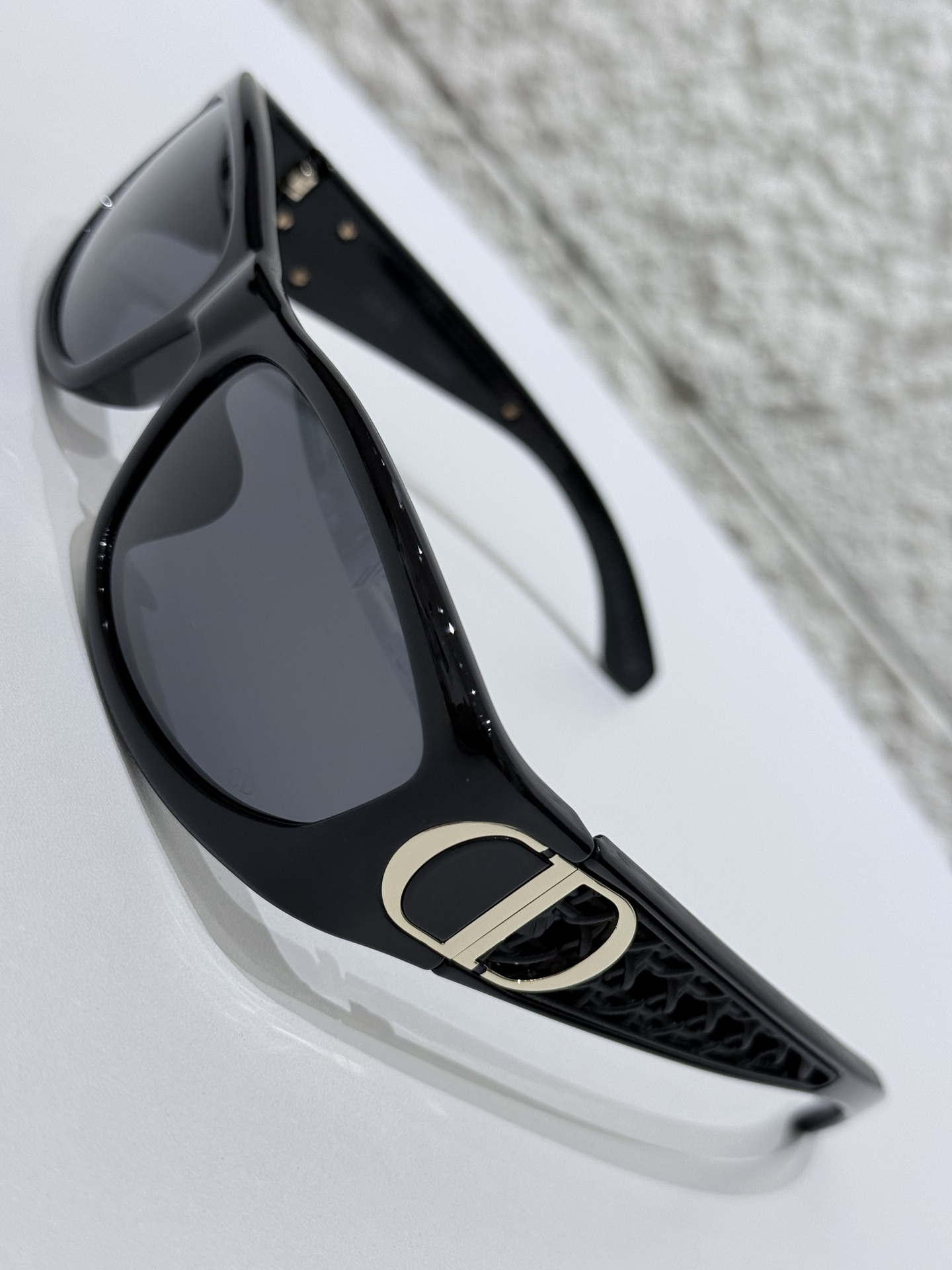 鏡臂:金屬精密鍛造,結合經典 Dior 標誌與扭索雕紋,細節層次豐富,金屬與醋酸纖維的材質對比,讓整體更顯高級。