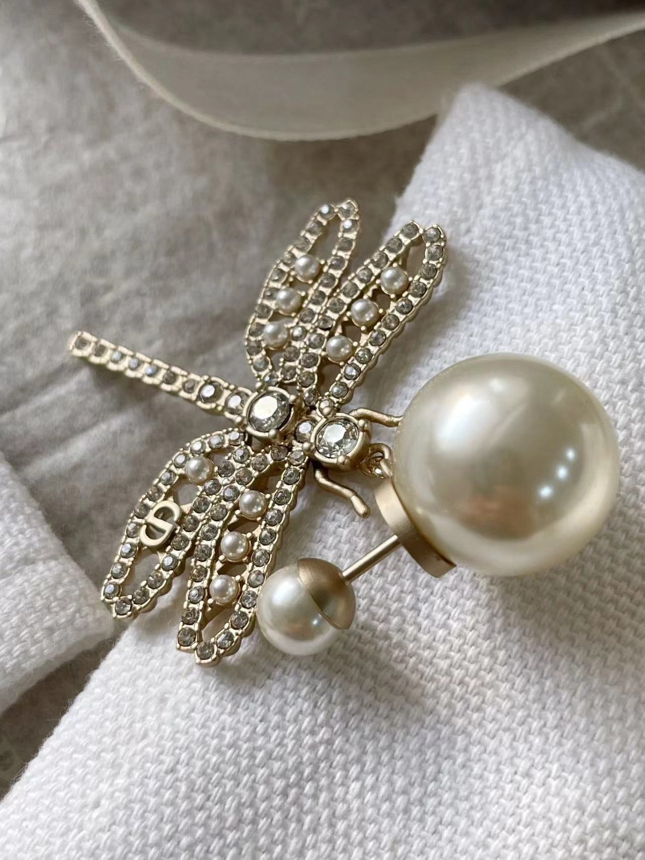 鏤空珍珠水鑽蜻蜓設計 溫柔氣質