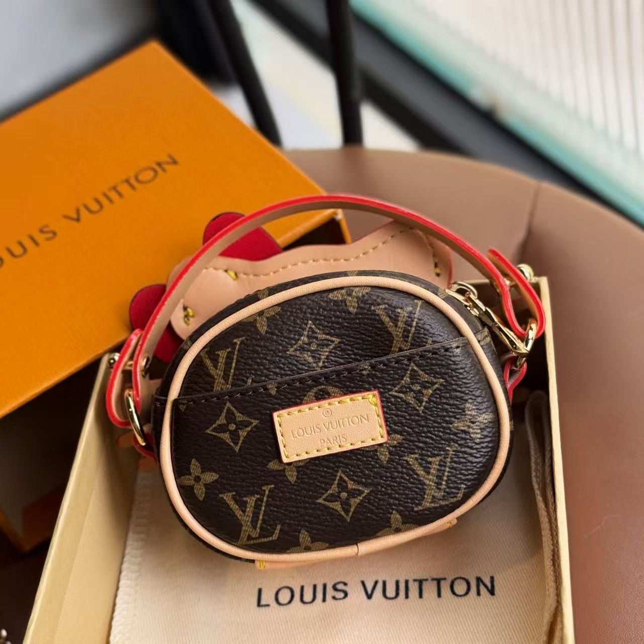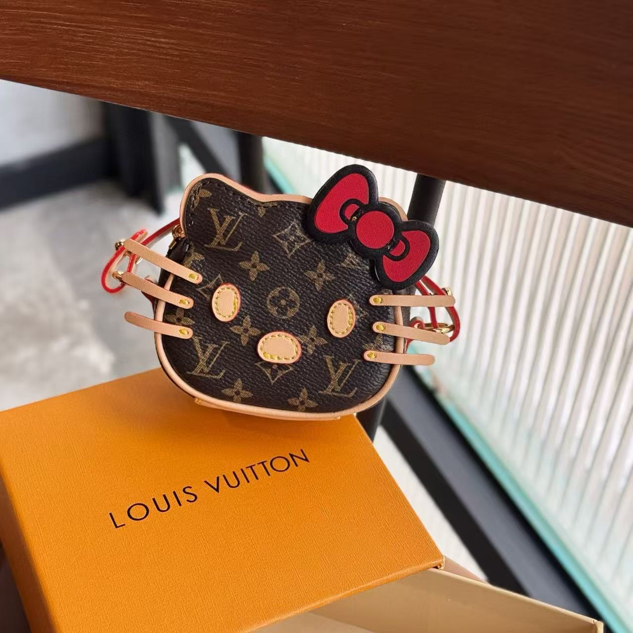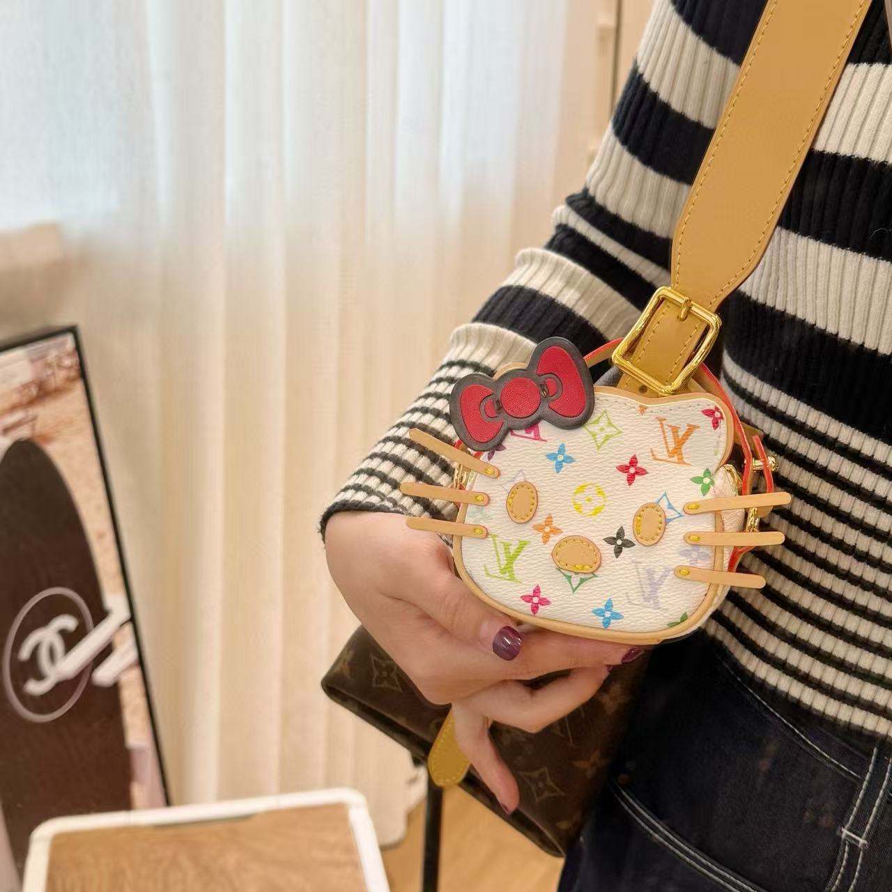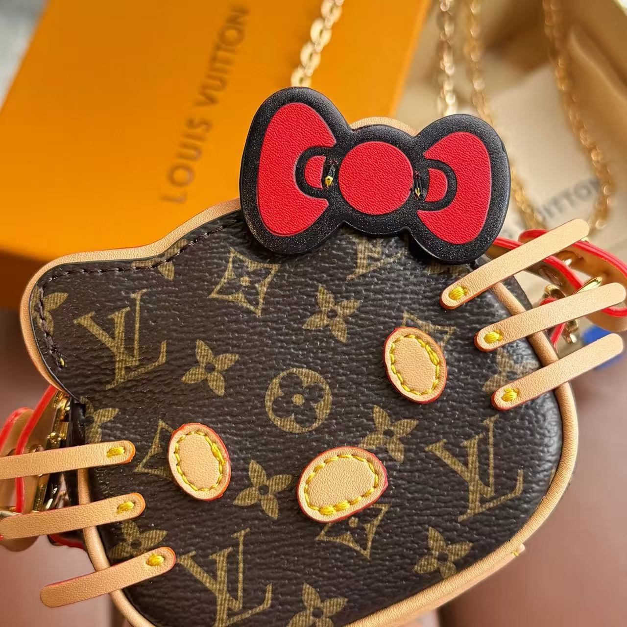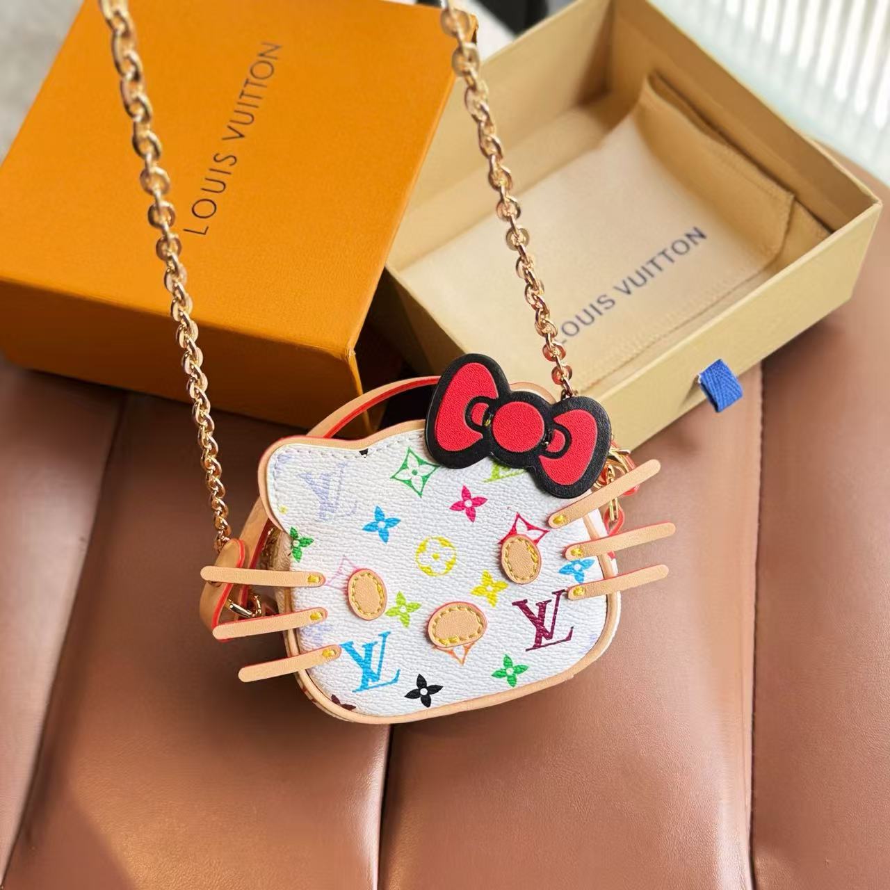 這款迷你包掛以 Hello Kitty 為主角,搭配 Monogram 帆布元素,呈現出復古可愛的碰撞美學。
