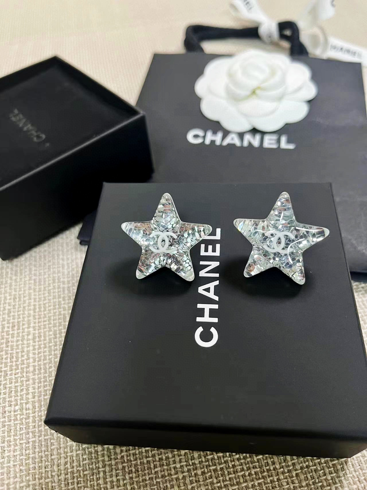 2025早春新品 C家星星亮片壓克力耳環