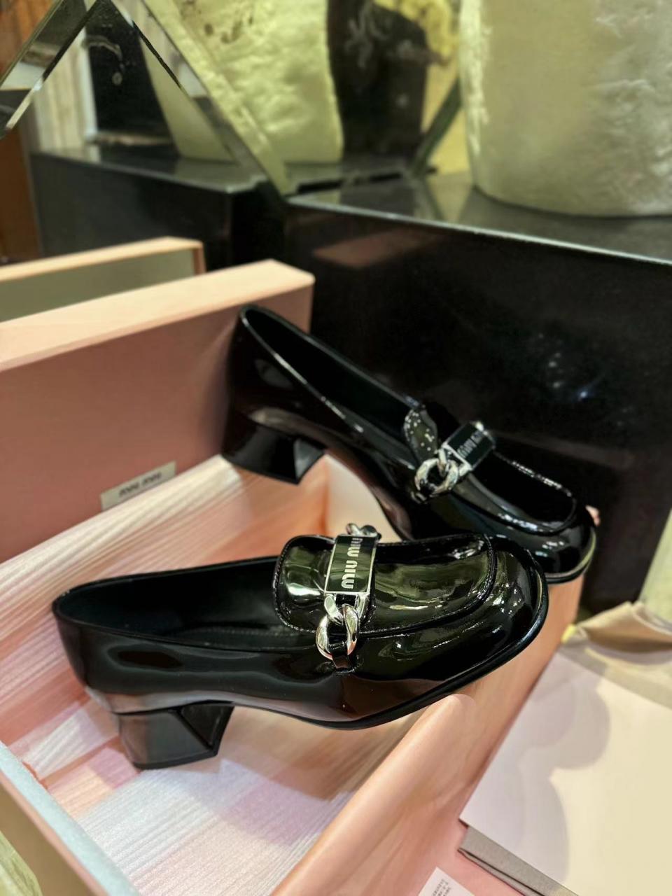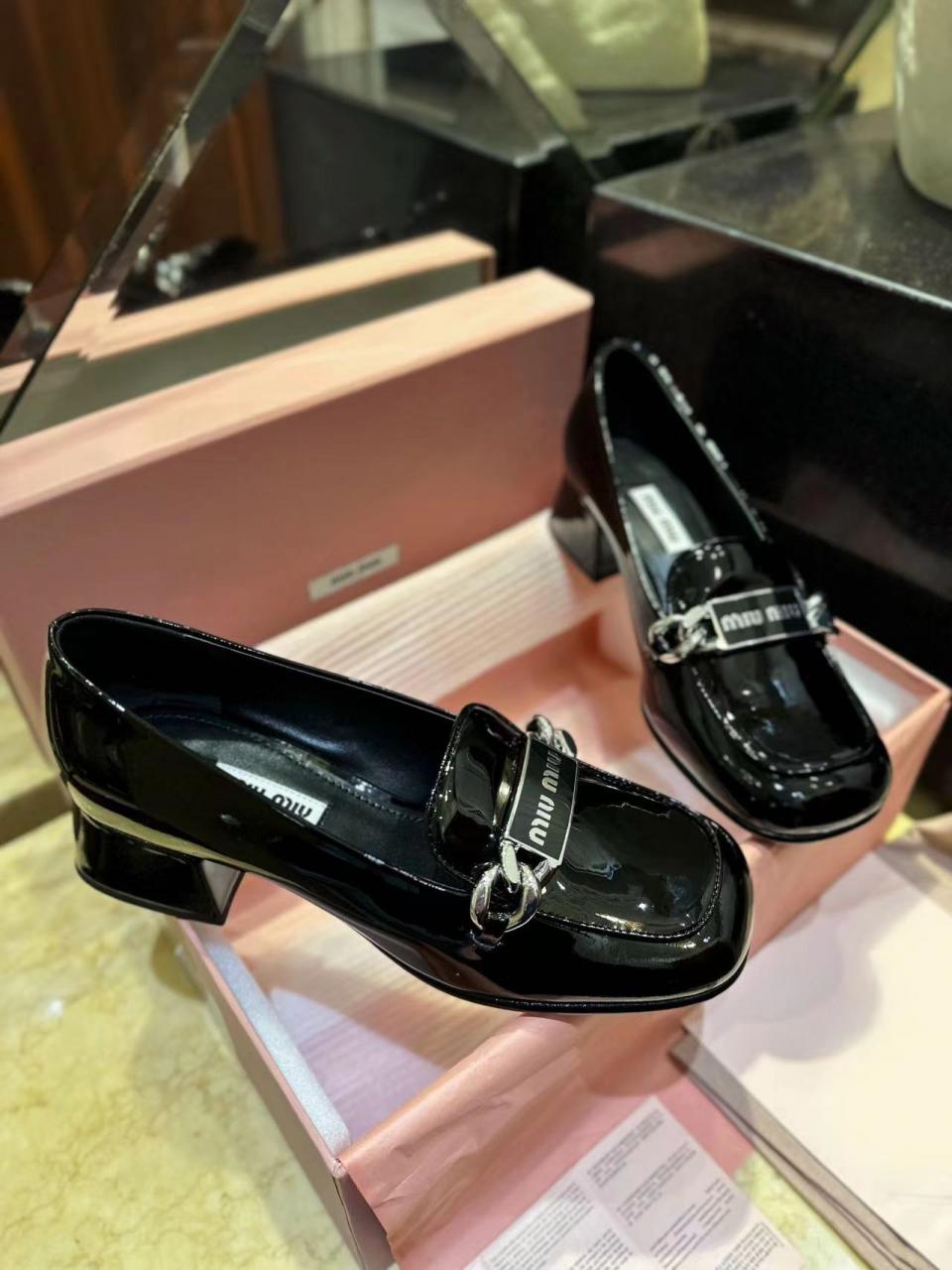 2023早秋經典款 Miu家亮皮牌扣瑪麗珍樂福鞋 最舒適的中跟設計